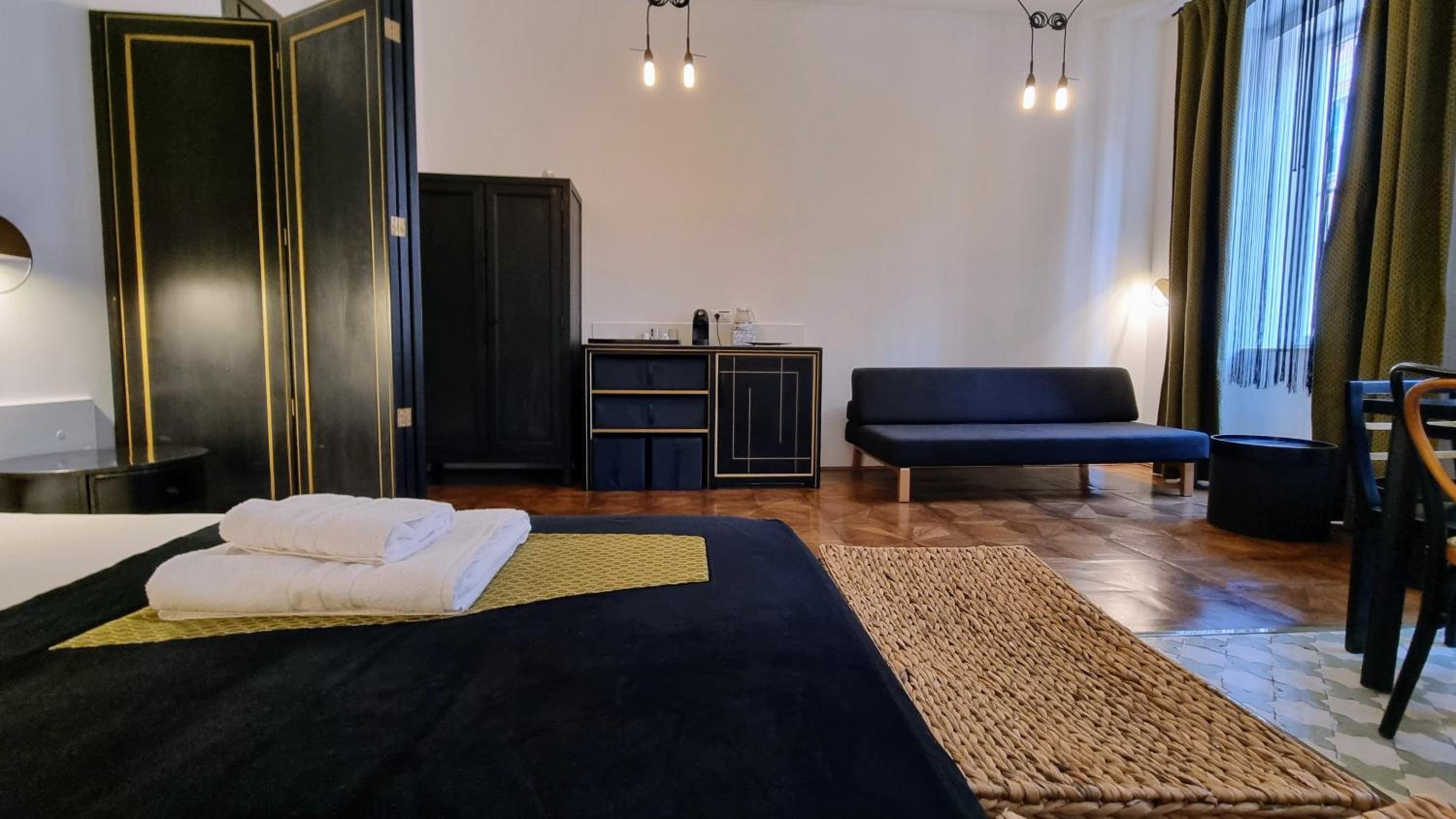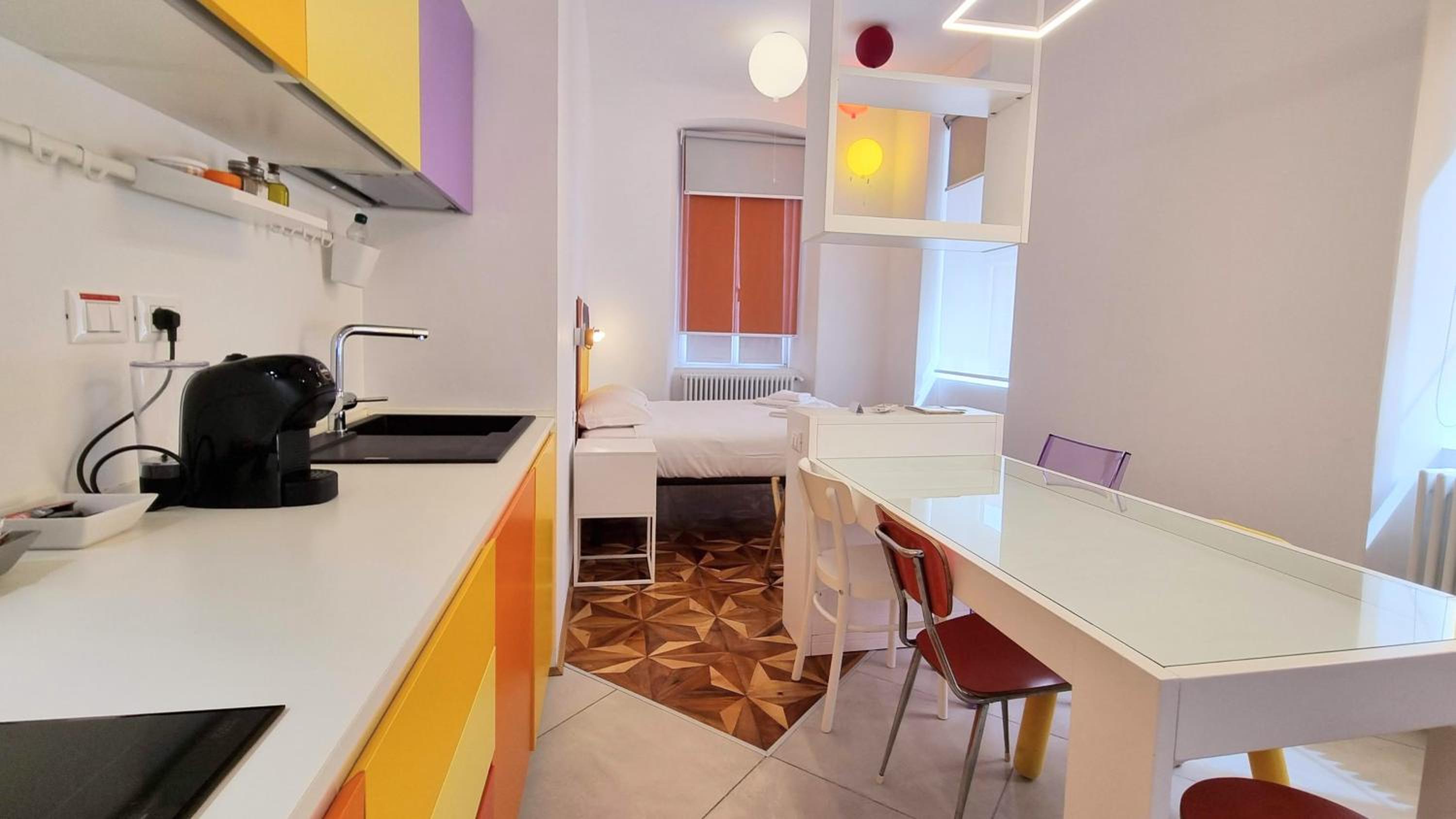 Ampio monolocale, pulitissimo, arredato in modo essenziale ma con gusto, ideale per una coppia. Cucina completa del necessario, compreso macchina del caffè espresso e moka. Molto gradita la presenza di prodotti di consumo (acqua, capsule caffè, bustine di te e di camomilla, sale zucchero, ecc.). Bagno fornito di wc, bidet ed elegante doccia. Staff gentilissimo si trova in un ufficio proprio di fronte alla struttura e risponde a ogni esigenza anche tramite whatsapp. Per un soggiorno a Trieste è una soluzione assolutamente consigliata.
