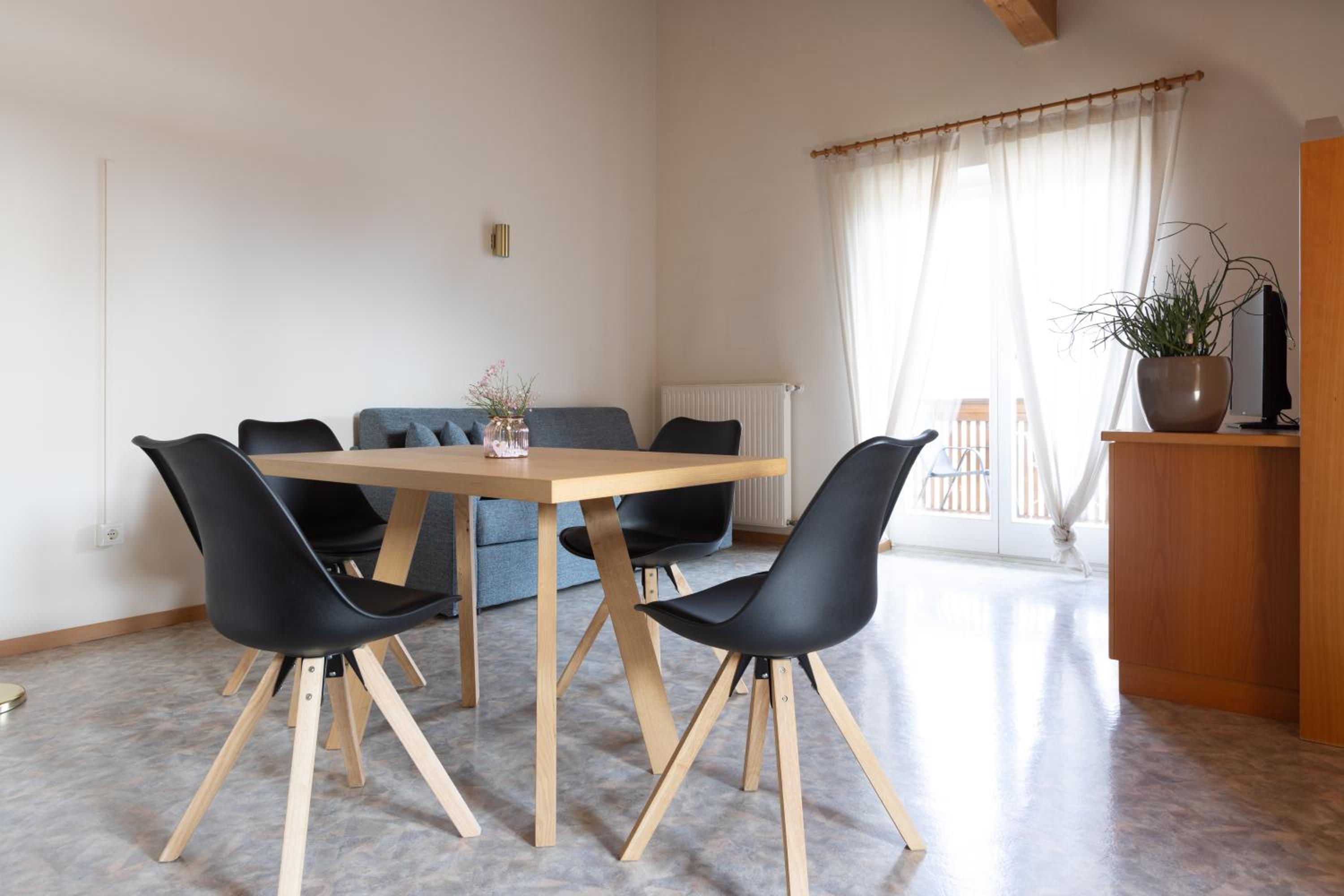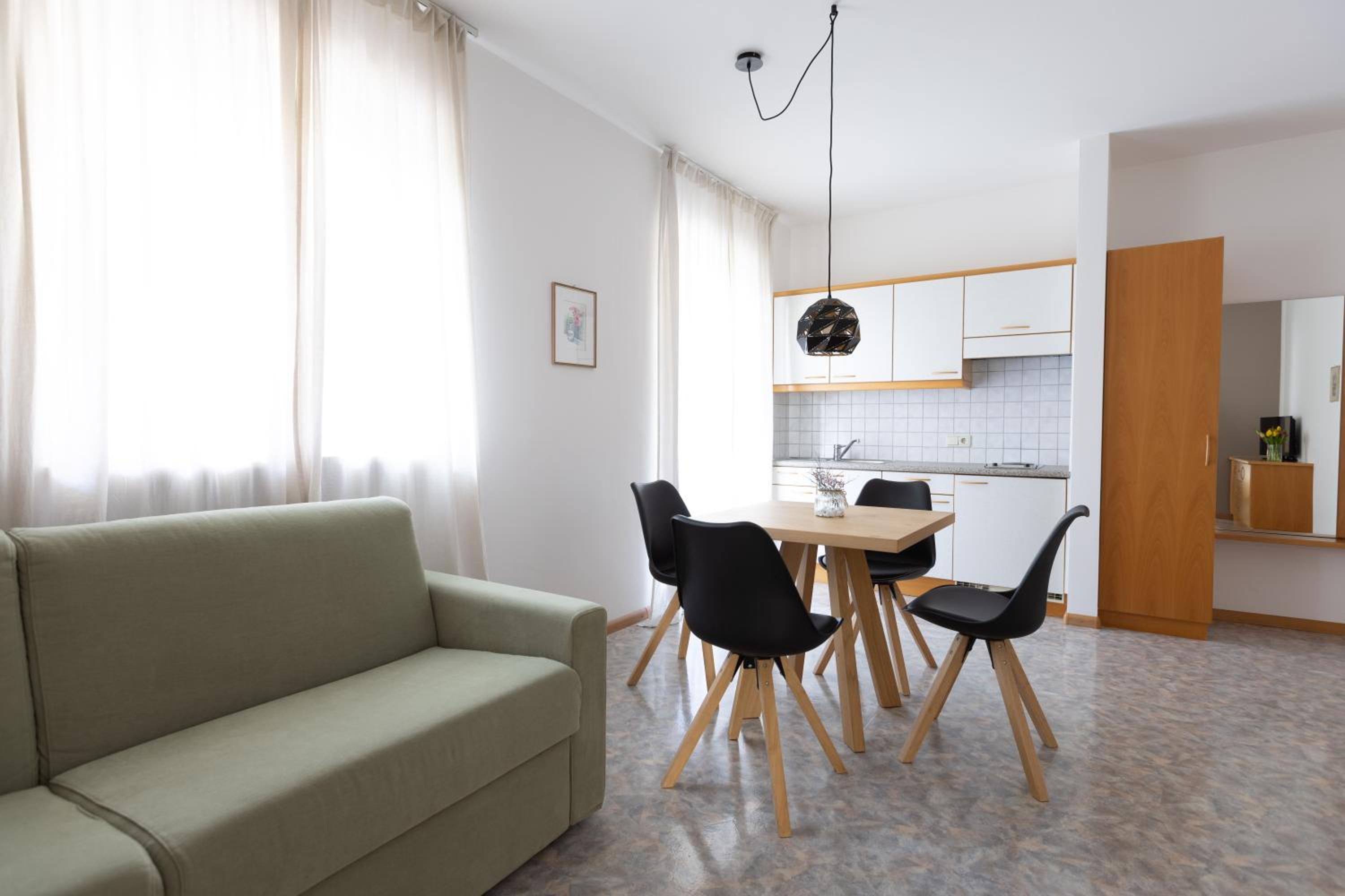 Residence Magreth was everything we expected and a bit more. The rooms are clean and airy with large balconies facing a beautiful mountain view. The kitchenette is well equiped and up do date, overall the whole facility is just very well taken care of. We rented a car for a couple of days but the rest of our stay we used the bus which runs every 15 minuters and is easy accessible with the Meran card that you get at check in(!). The owner is very nice and really made us feel welcome. Plus for the dog friendliness, our little doggo had the time of her life, and also for the bread service every morning. We definitely recomend this place and hope to come back!