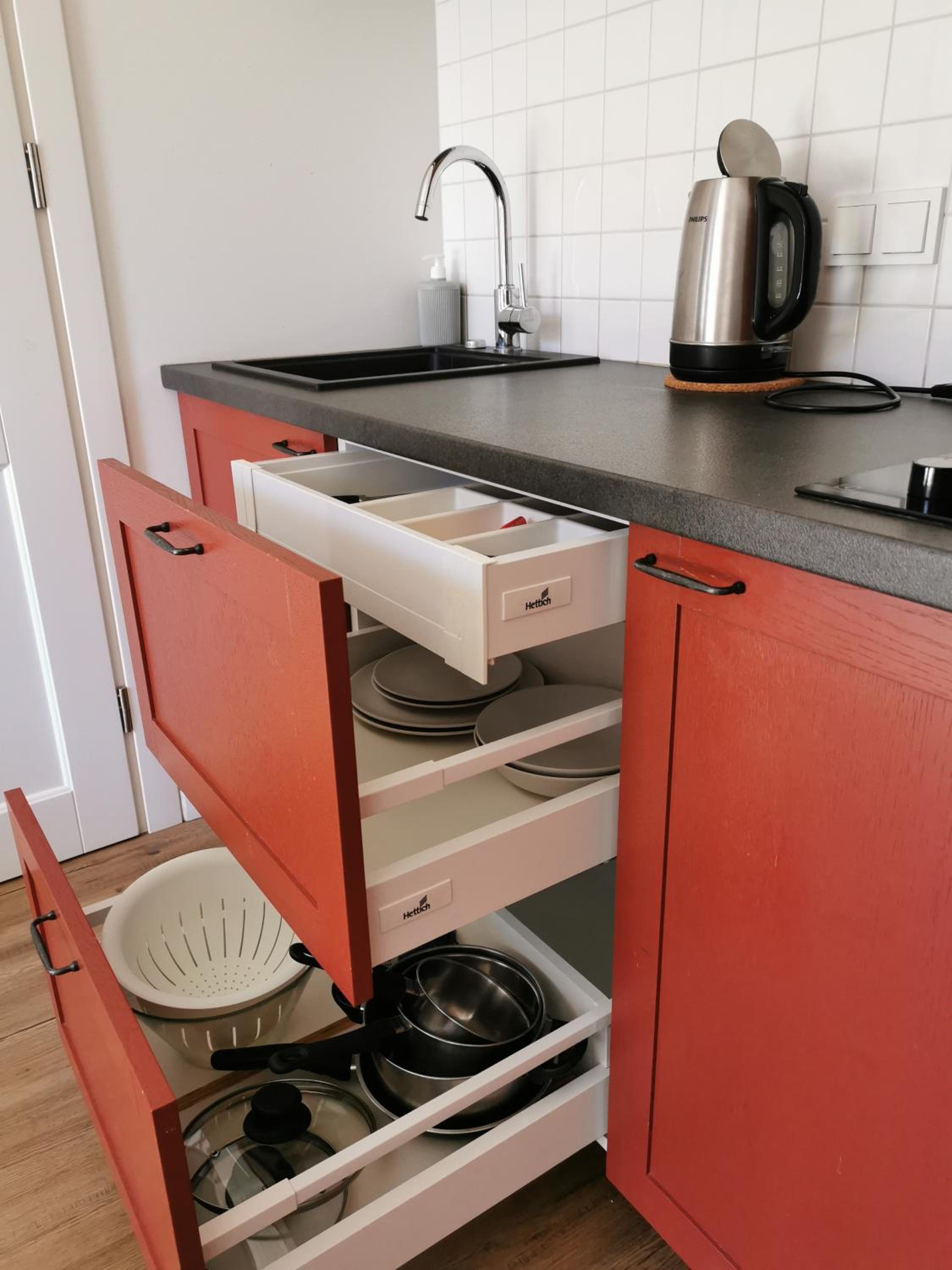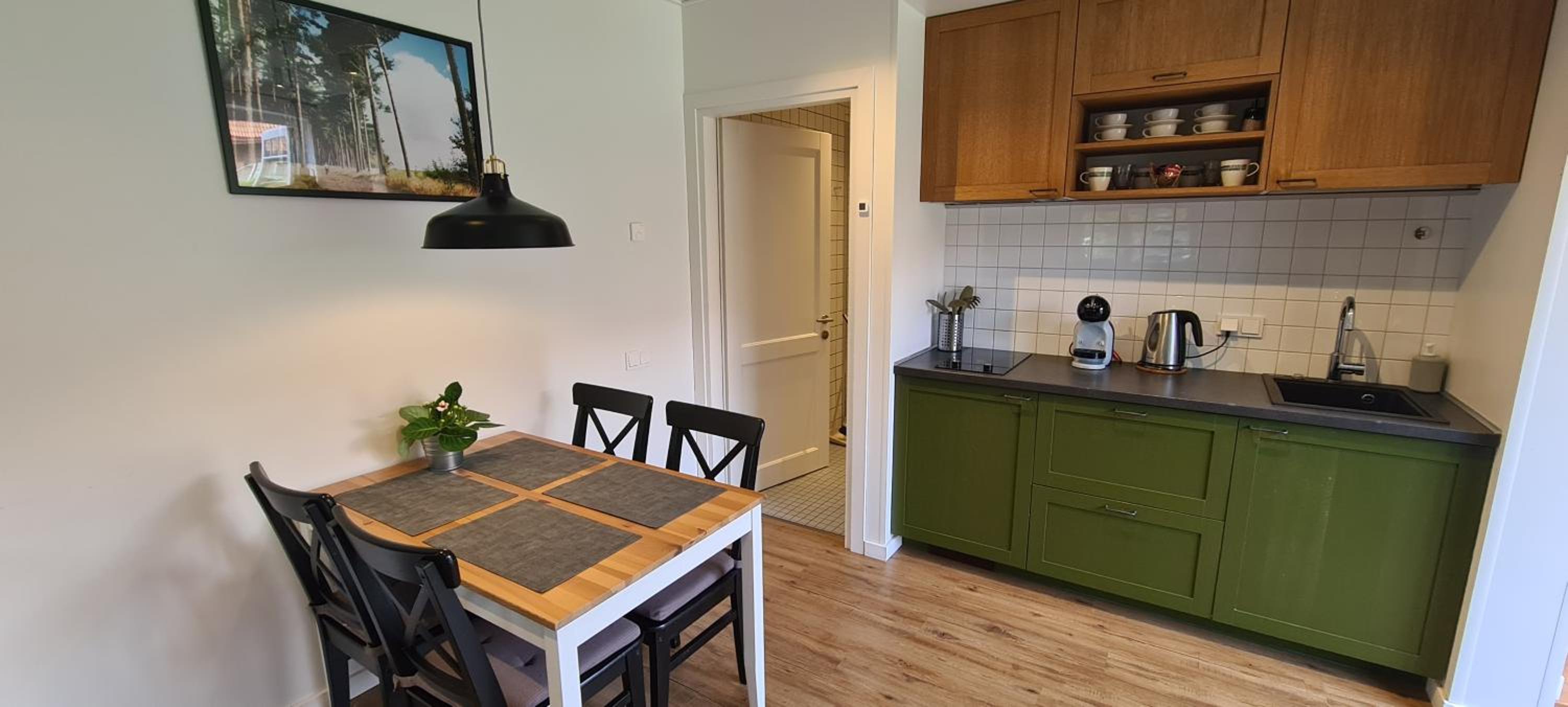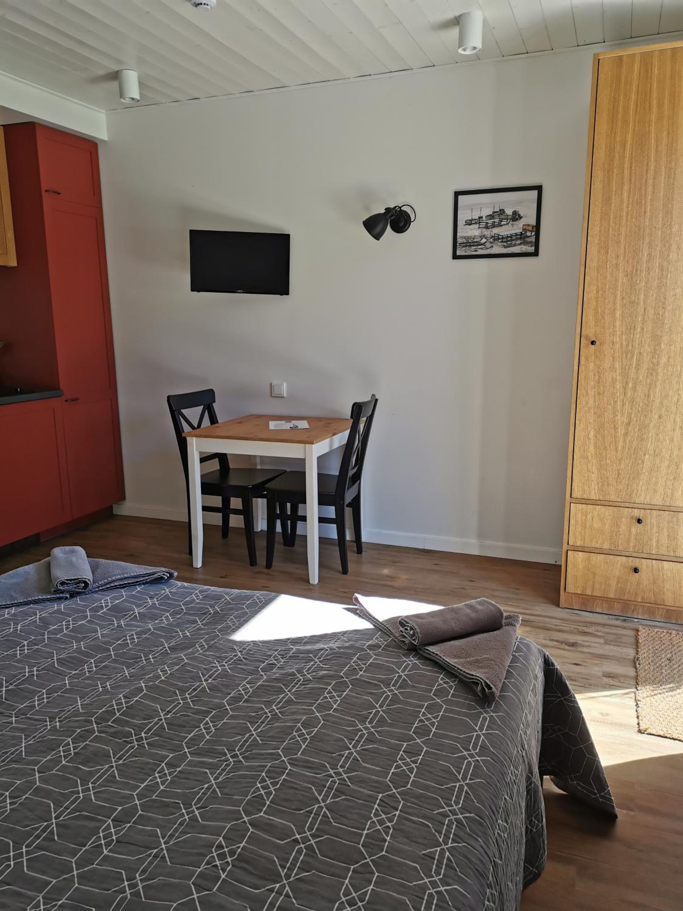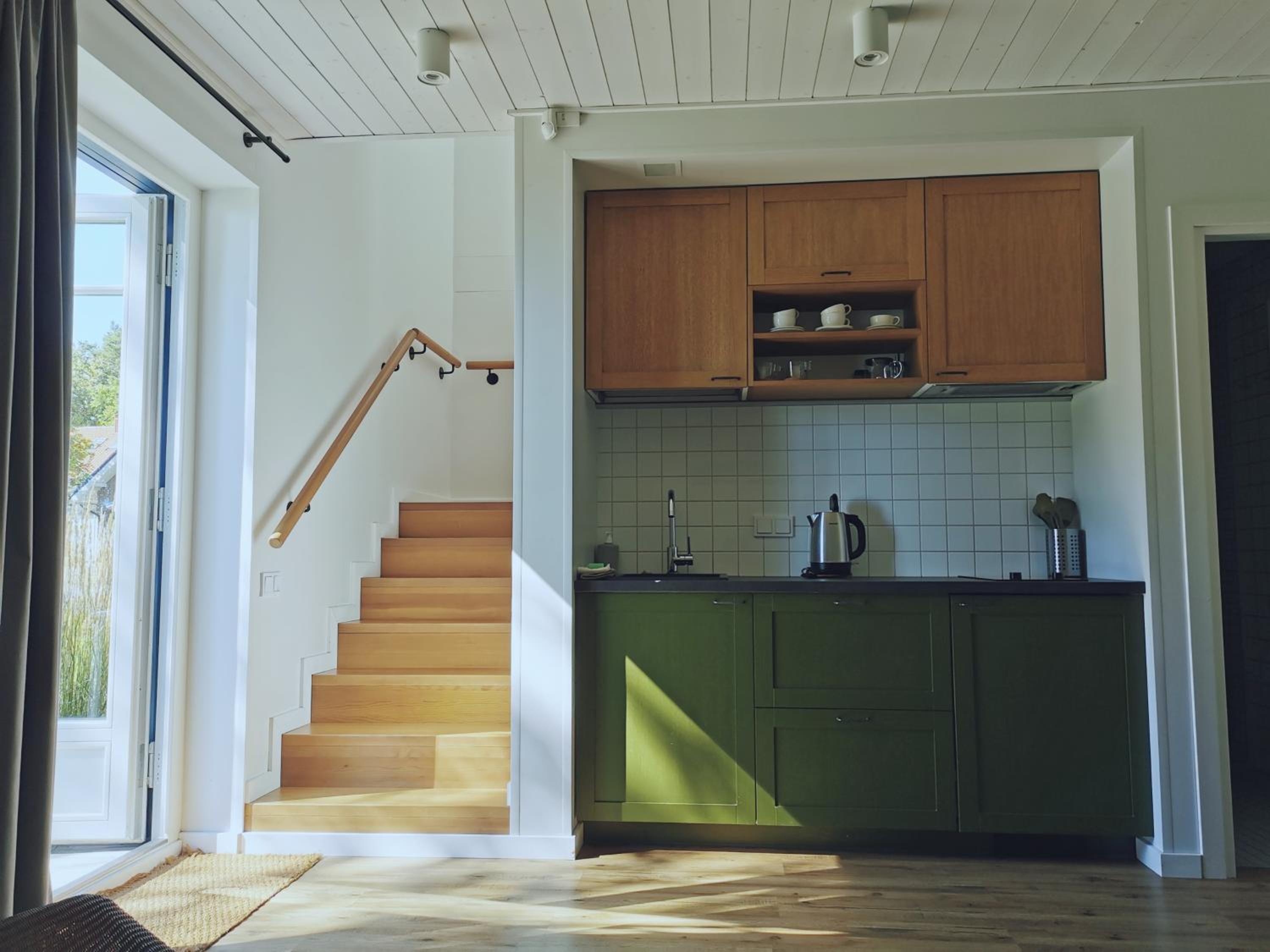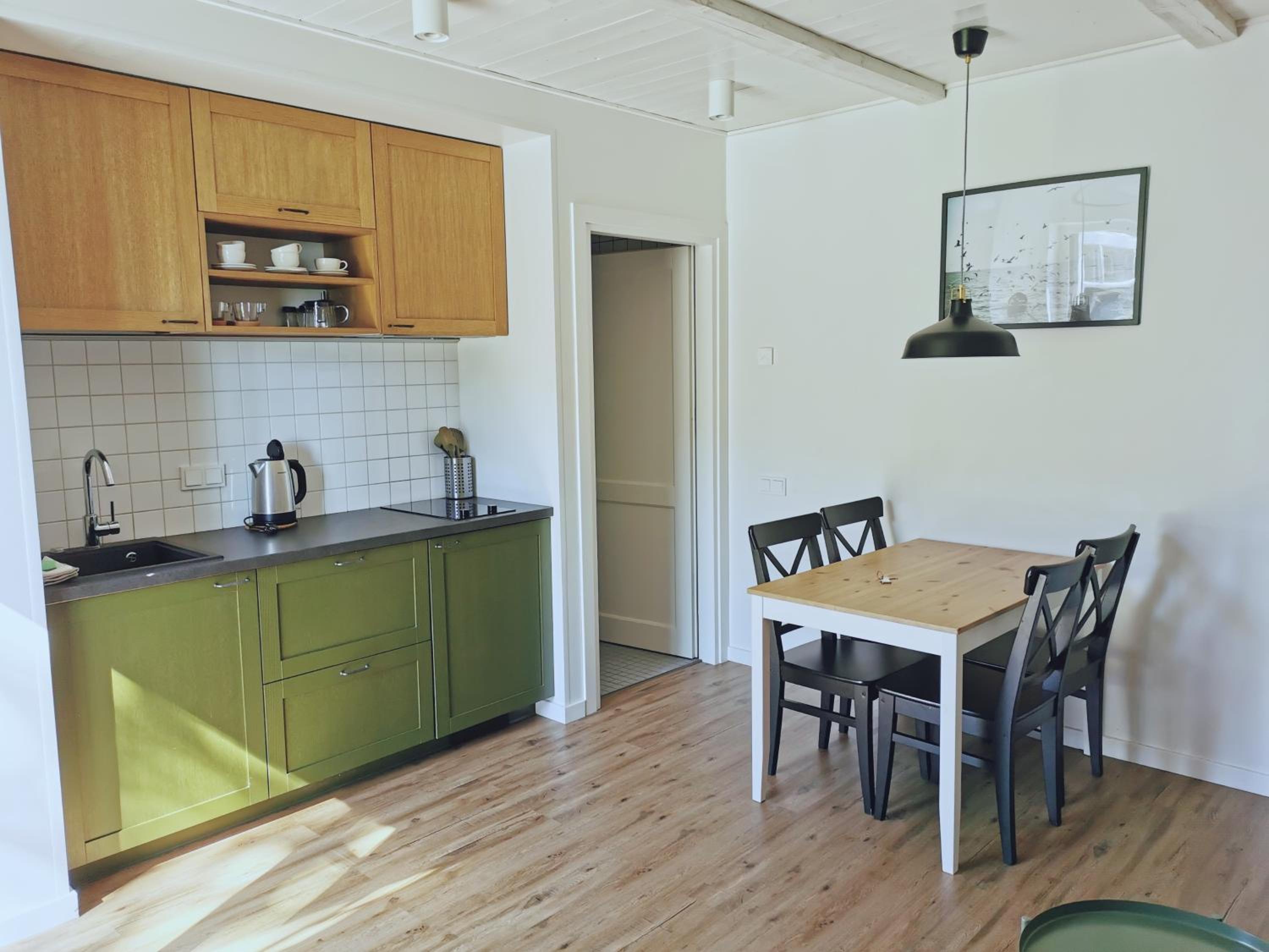 Patiko vieta - girdisi marių bangų ošimas. Kambaryje yra viskas, ko reikia maisto paruošimui.