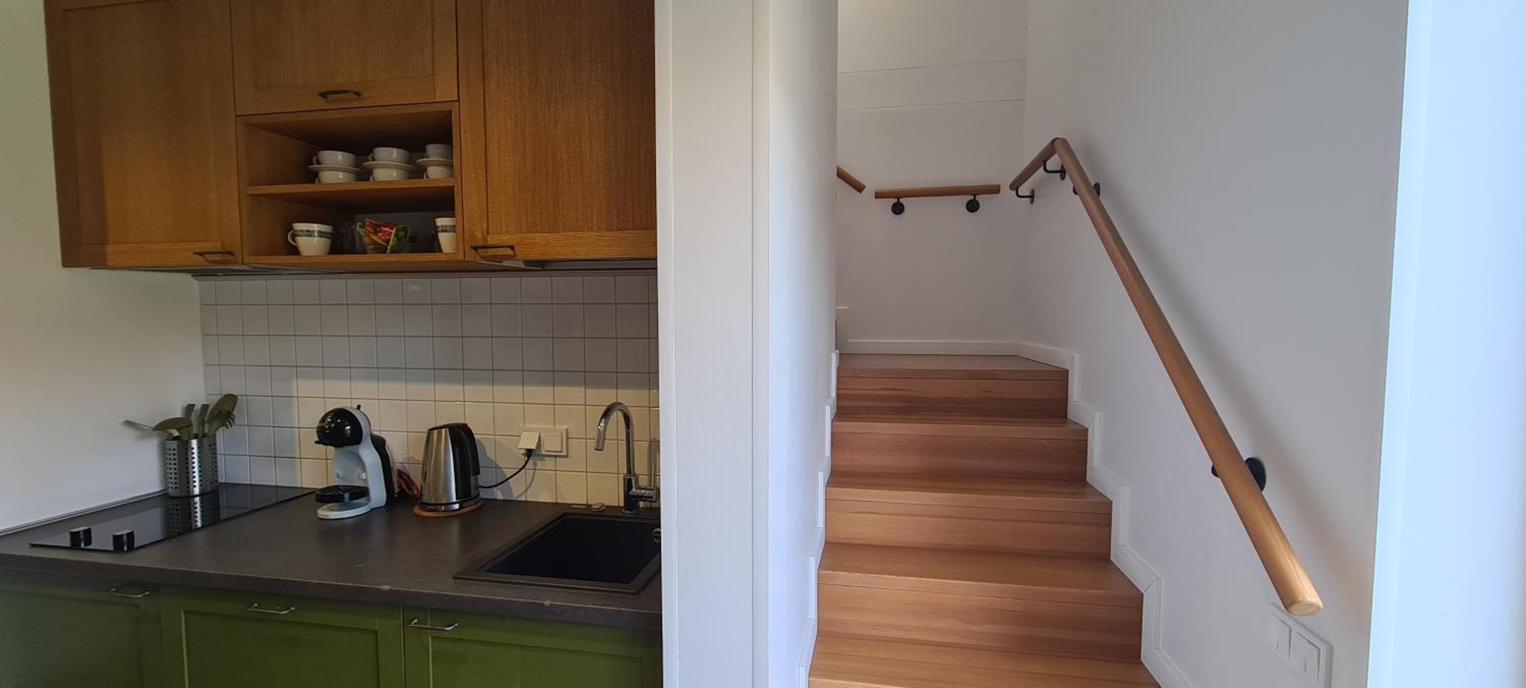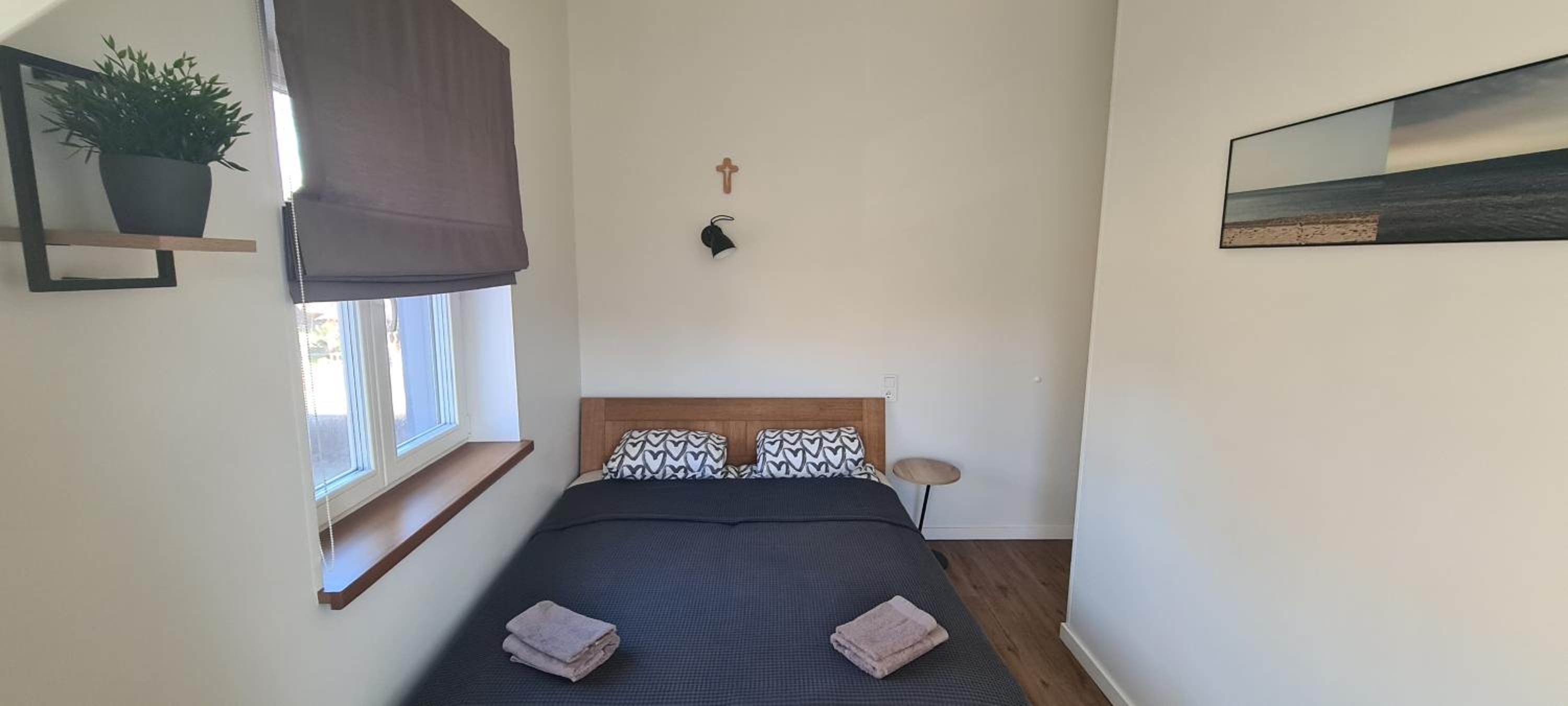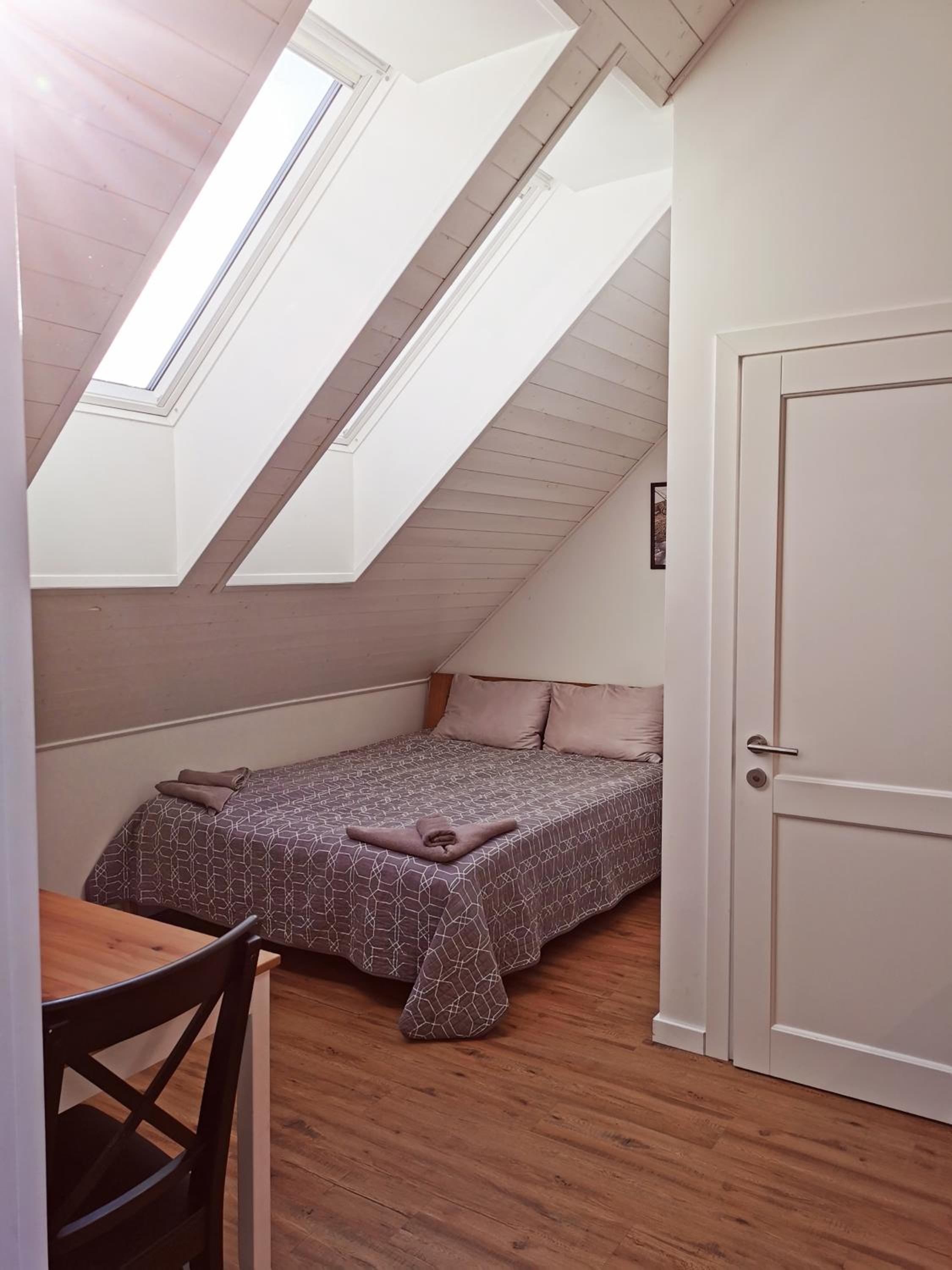 The location is excellent, very close to the water, surrounded by trees. The room is well-designed, and equipped with everything you need for a comfortable stay. Parking on site.