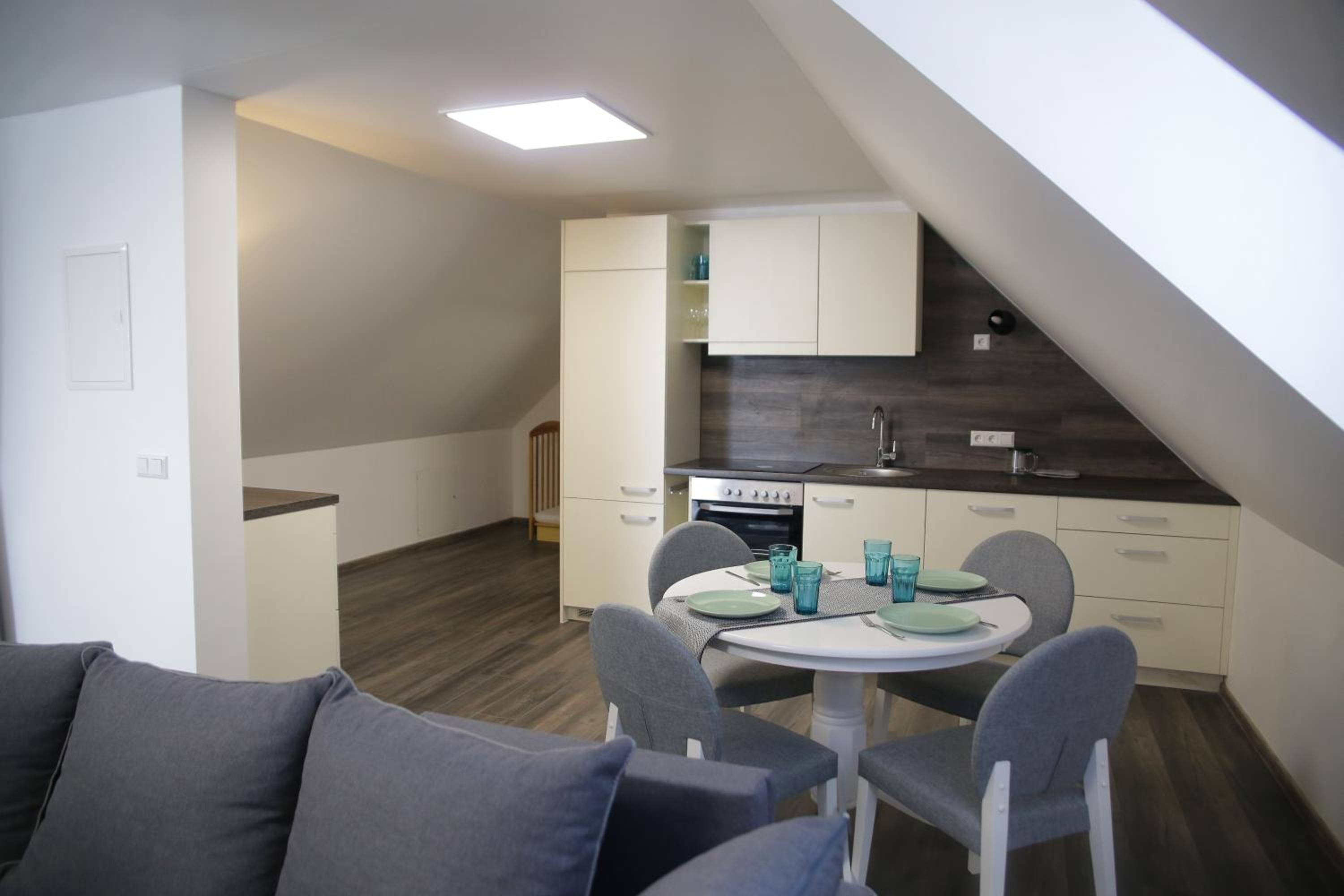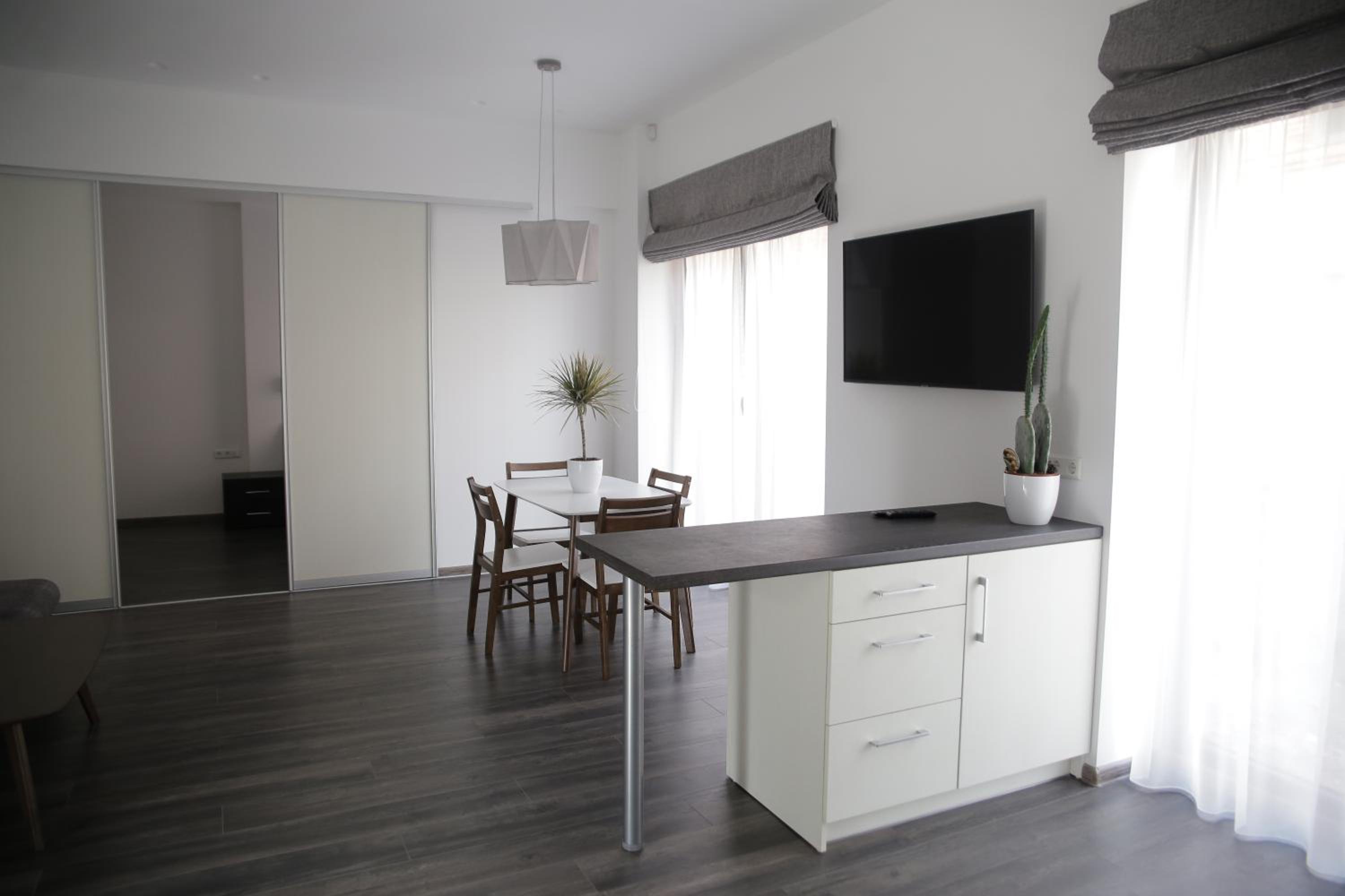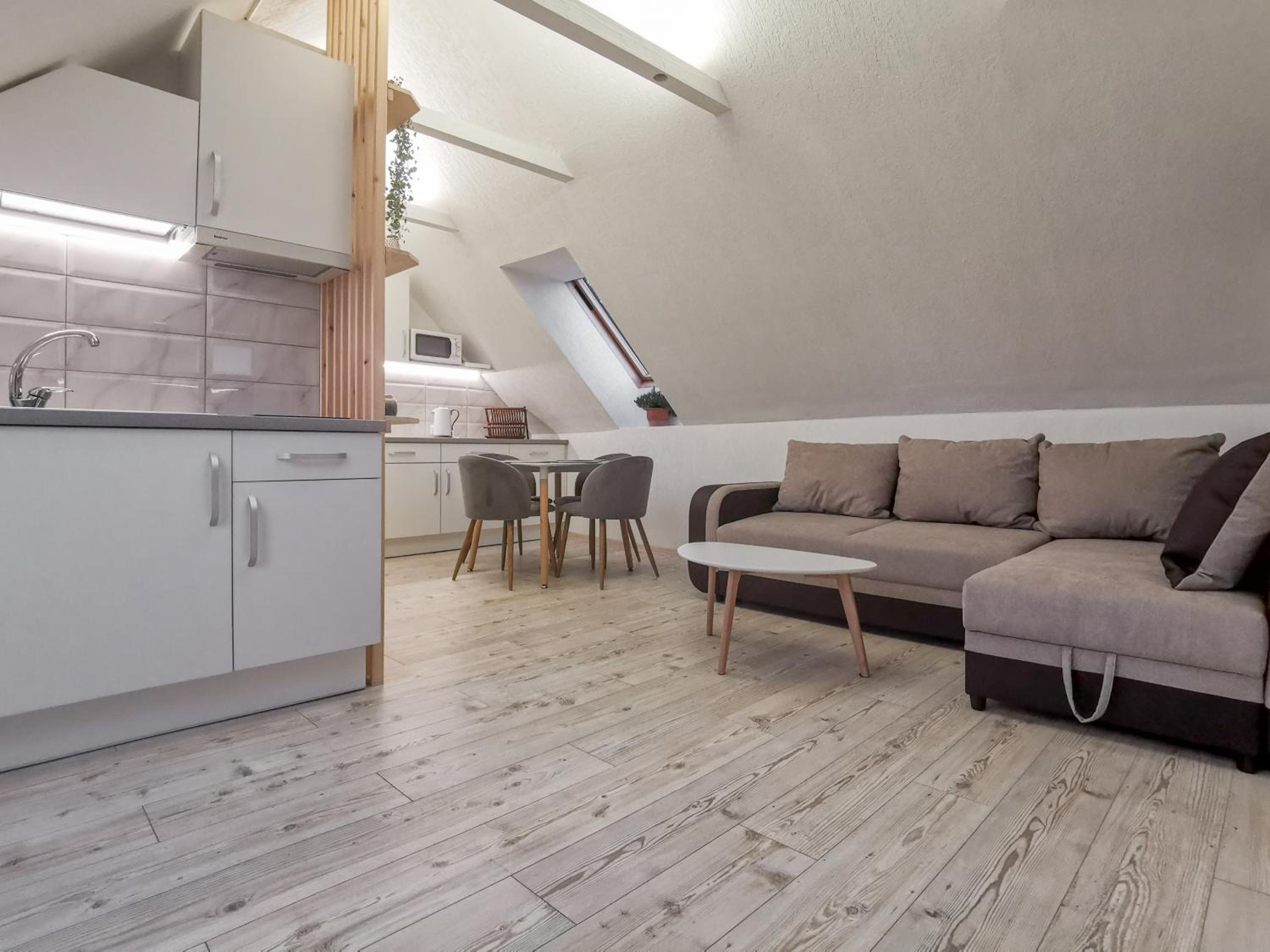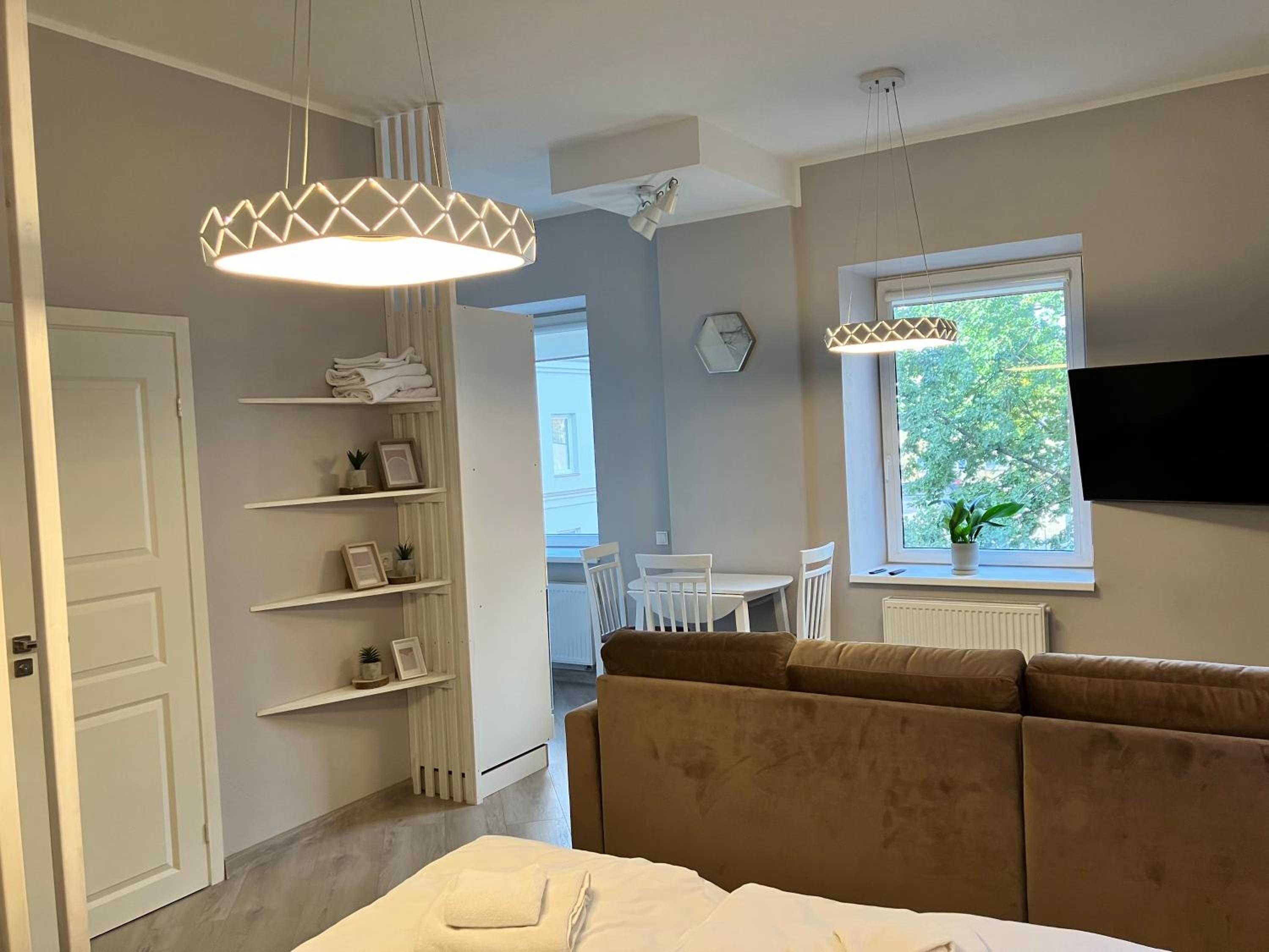 The apartments are large, cozy, and tidy. Great place to stay.
