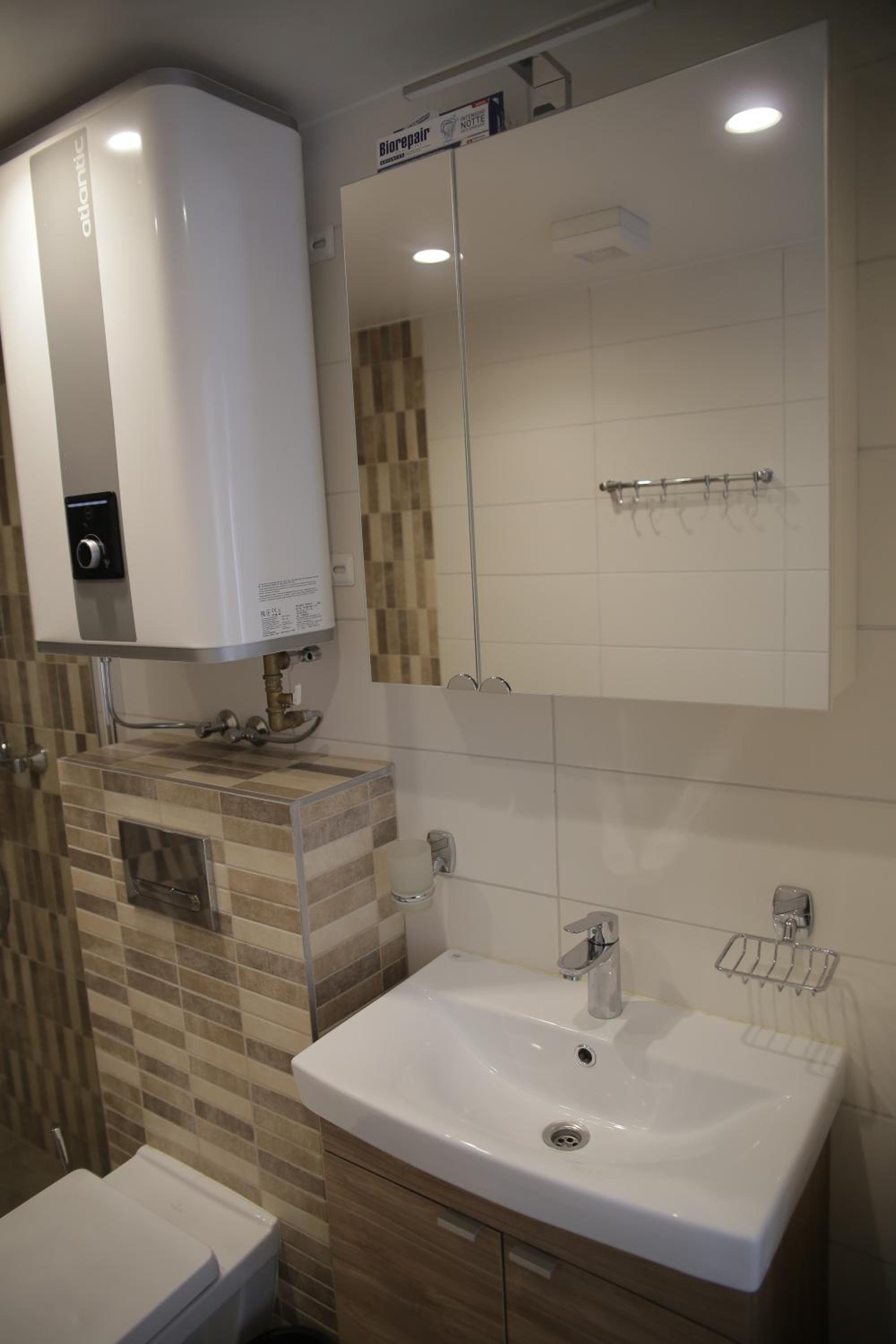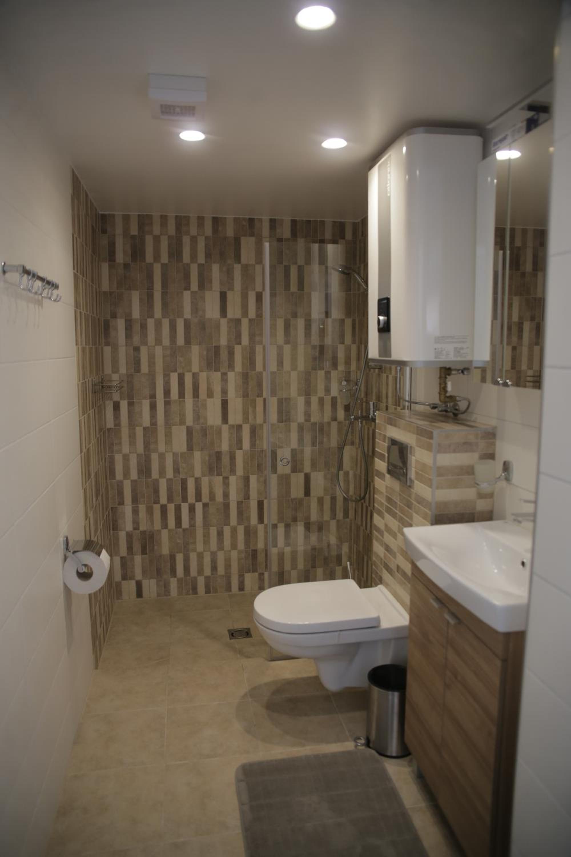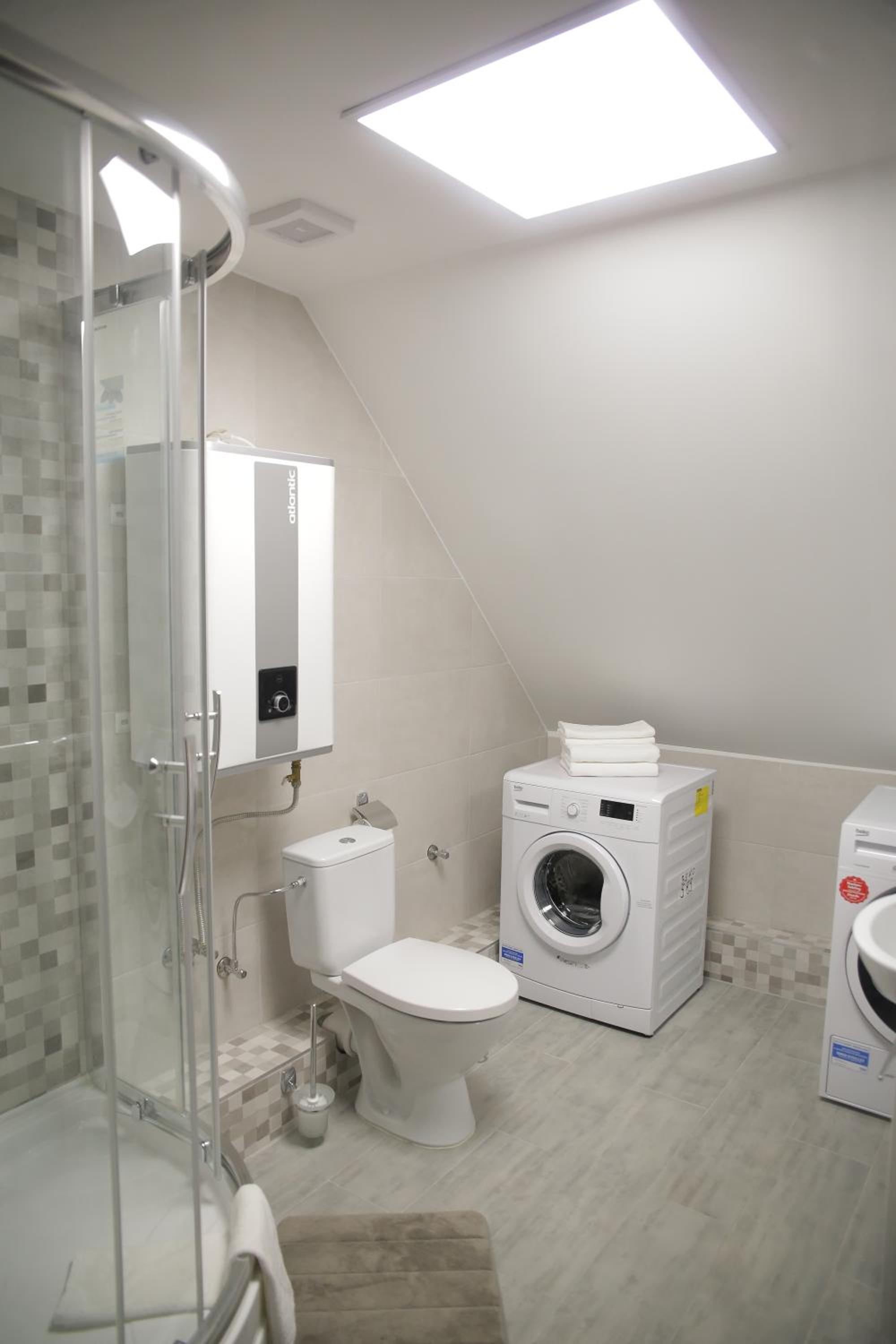 The place seemed a little quickly-built. Not very comfortable with little children. The bathroom door had no lock. There was not enough forks in the kitchen, the essentials were run out. The bakery downstairs was closed.
