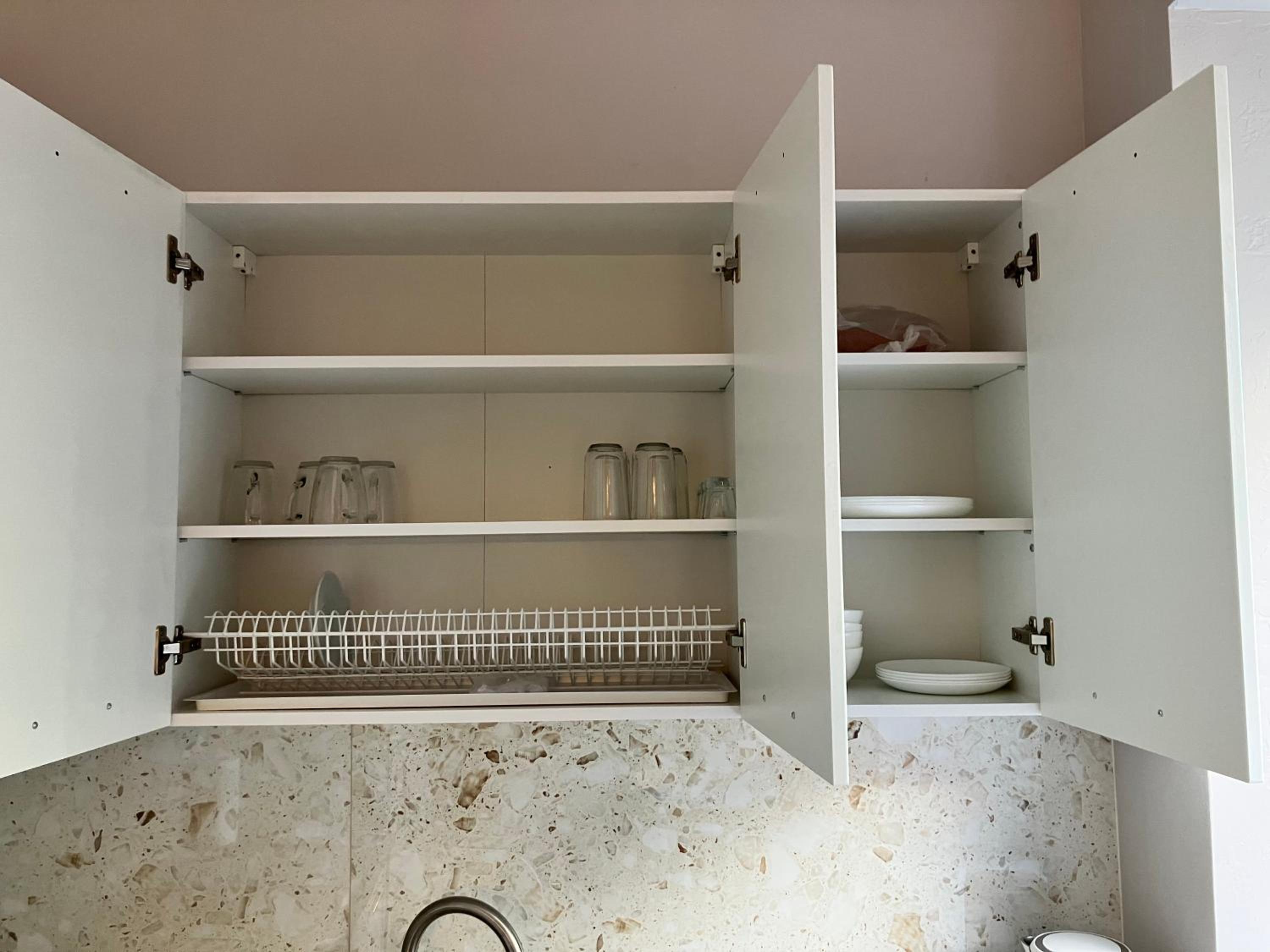 The fridge door is not closing. It would have been nice to have some coffee and tea in the kitchen.