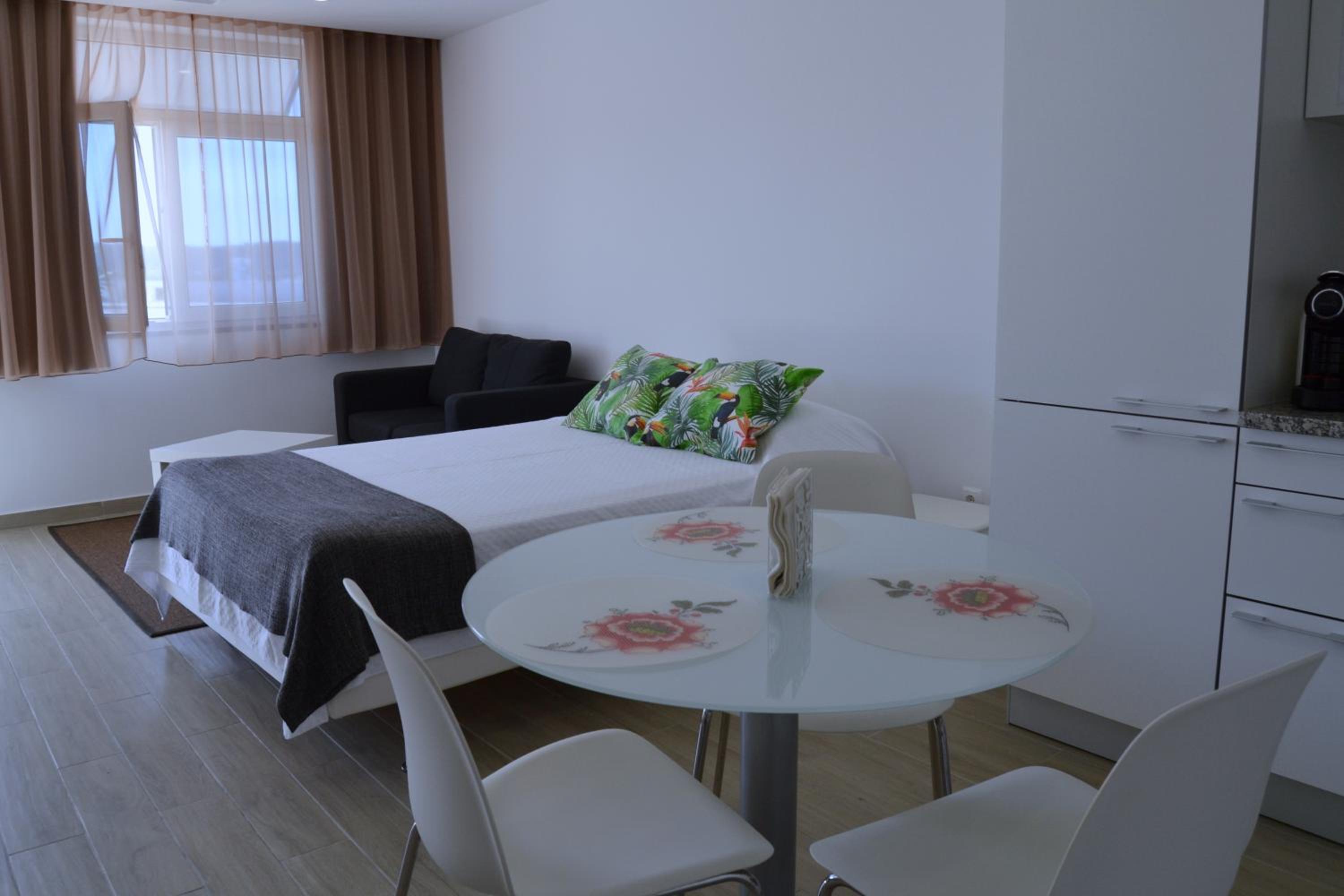 Emplacement idéal face à la principale plage de Vila Nova. Vaste parking souterrain (40 places) sous la résidence. Très belle vue (nous étions à l'étage supérieur) sur la rivière et sur les plages. La chambre et la salle de bains étaient très spacieuses. Présence d'un ascenseur très pratique pour passer du parking souterrain jusqu'aux étages. La piscine peut être couverte donc utilisable même en dehors de la saison d'été. Literie confortable et personnel de ménage très accueillant. Cuisine très bien équipée (grand réfrigérateur, lave-linge, nombreux accessoires, ...)