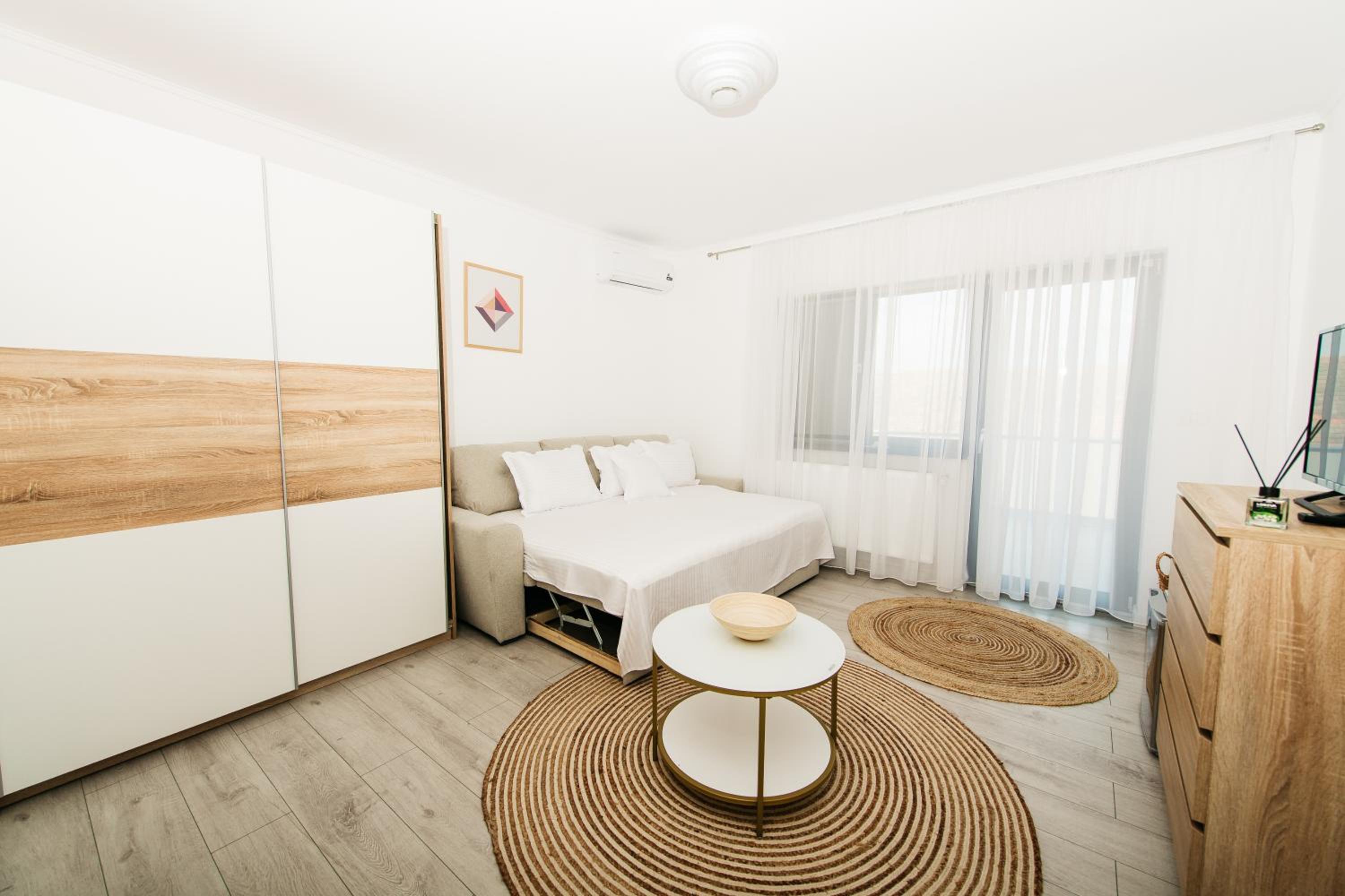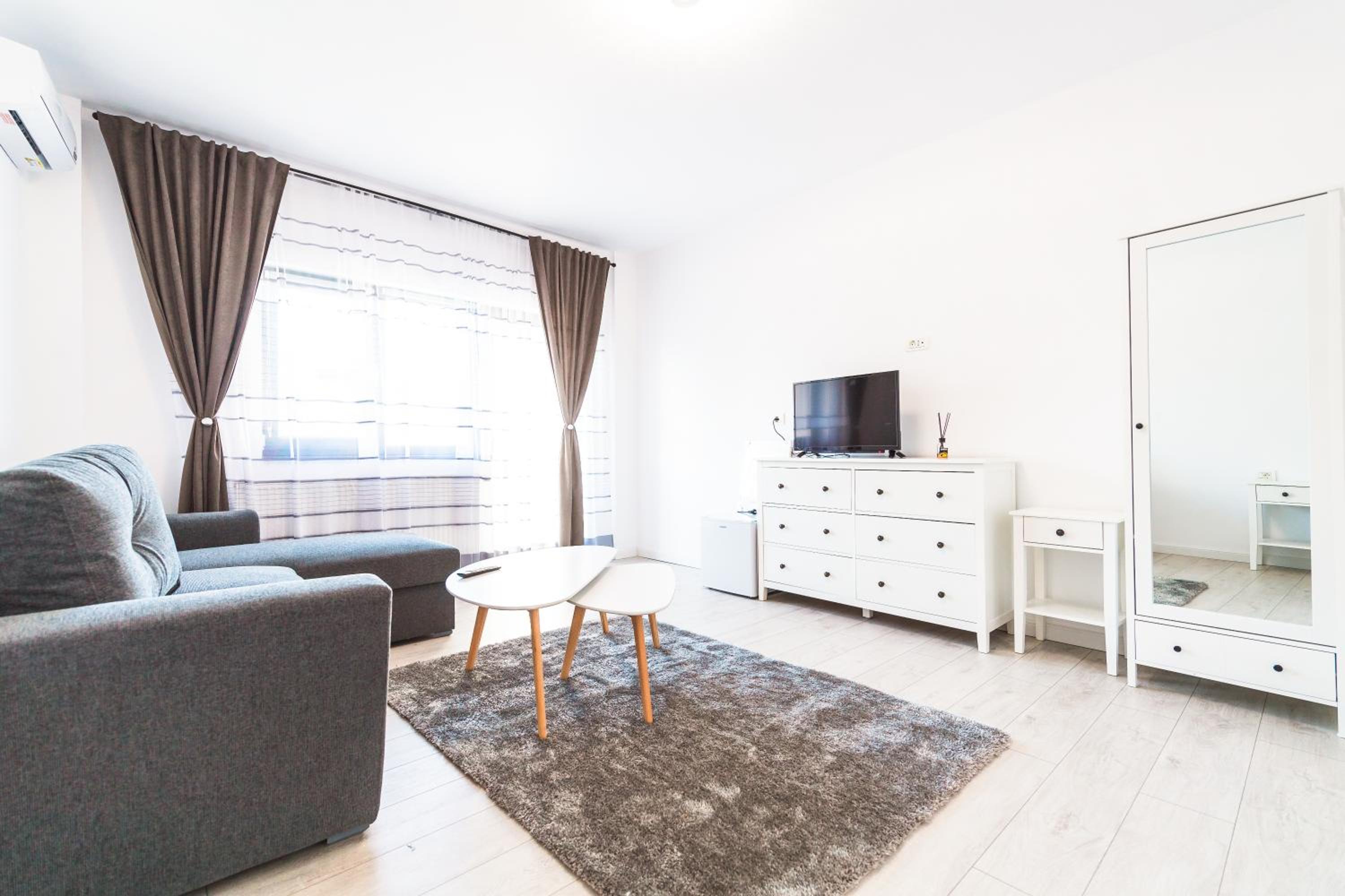 Experience the perfect blend of comfort and convenience at EVRA APARTMENTS. Located near major attractions like Banat Village Museum and Theresia Bastion, our sustainable aparthotel offers spacious rooms with air conditioning, flat-screen TVs, and free WiFi. Relax in our cozy seating areas or enjoy the fresh air on the terrace in select rooms. Plus, with a minimarket on-site and thoughtful services like bed linen provided, we ensure a hassle-free stay. Explore nearby landmarks like Huniade Castle and Timișoara Orthodox Cathedral before returning to the tranquility of our modern accommodations. Book now for an unforgettable experience in Recaş!