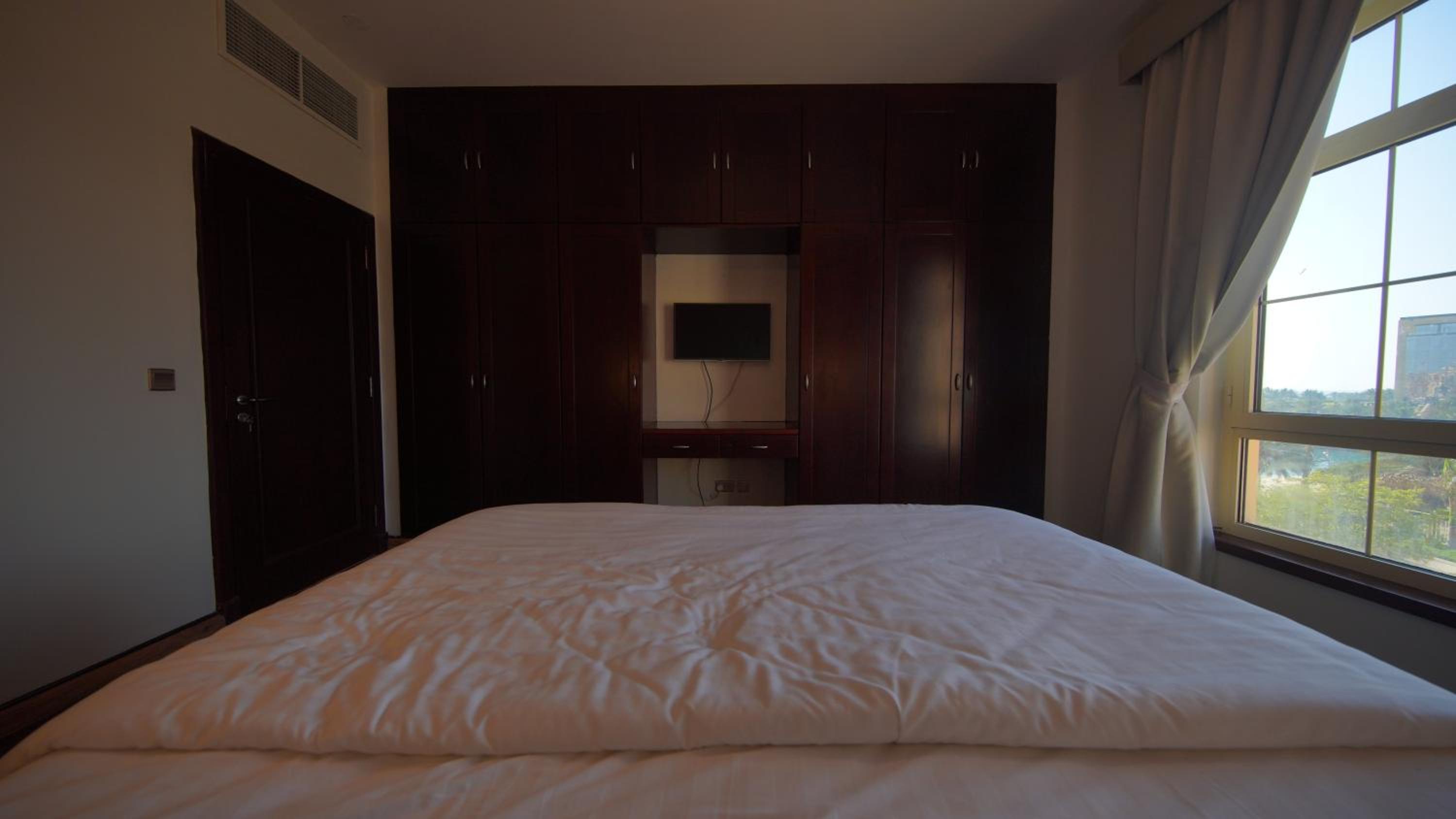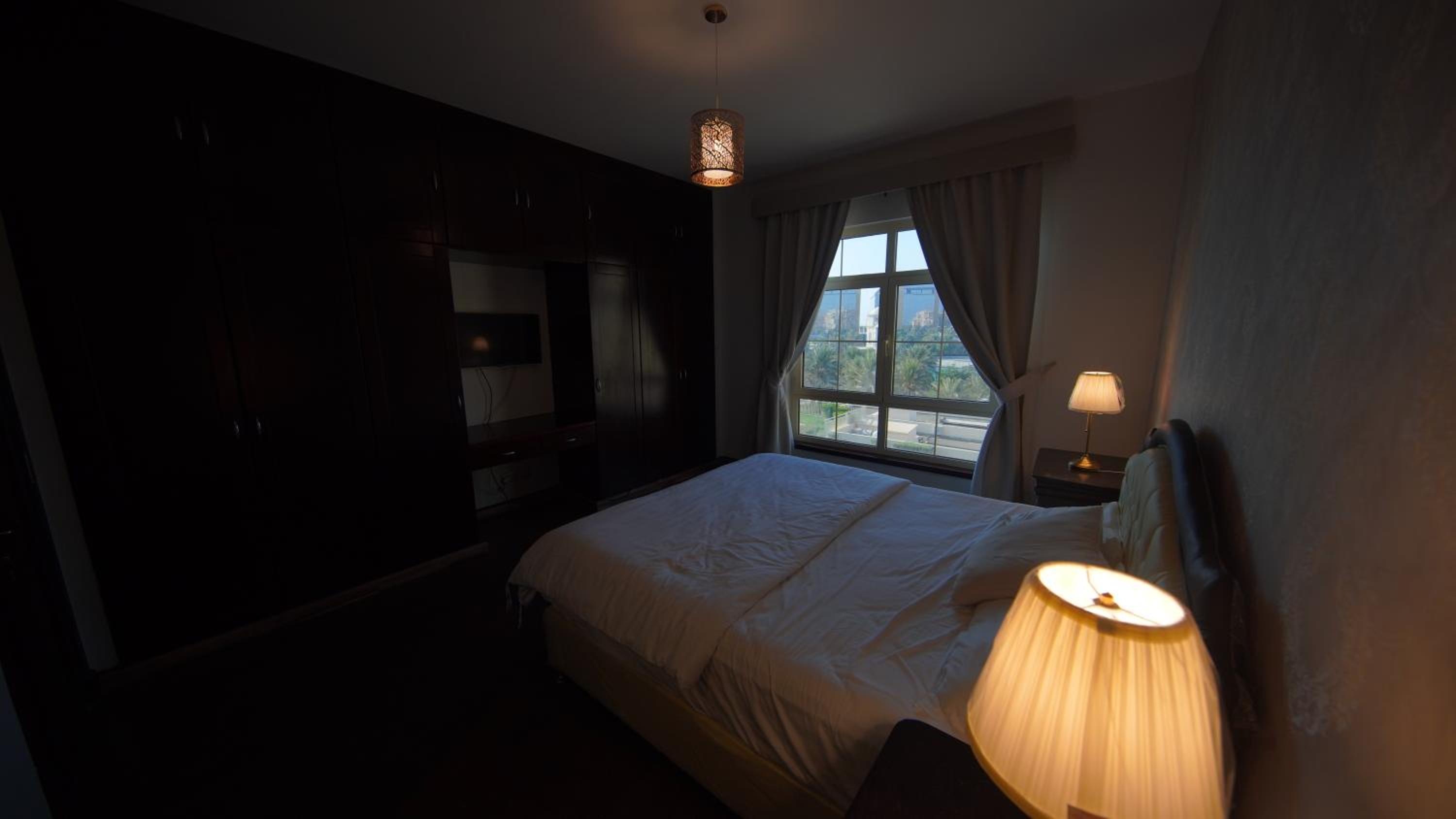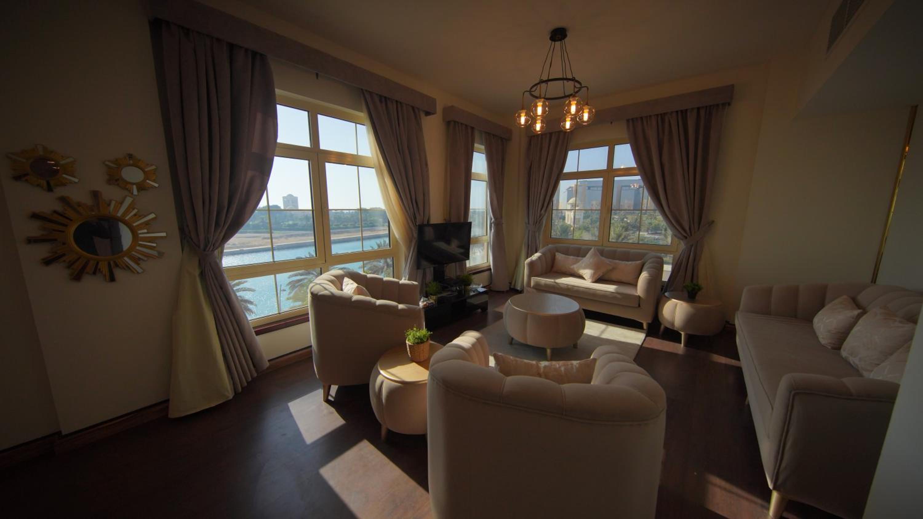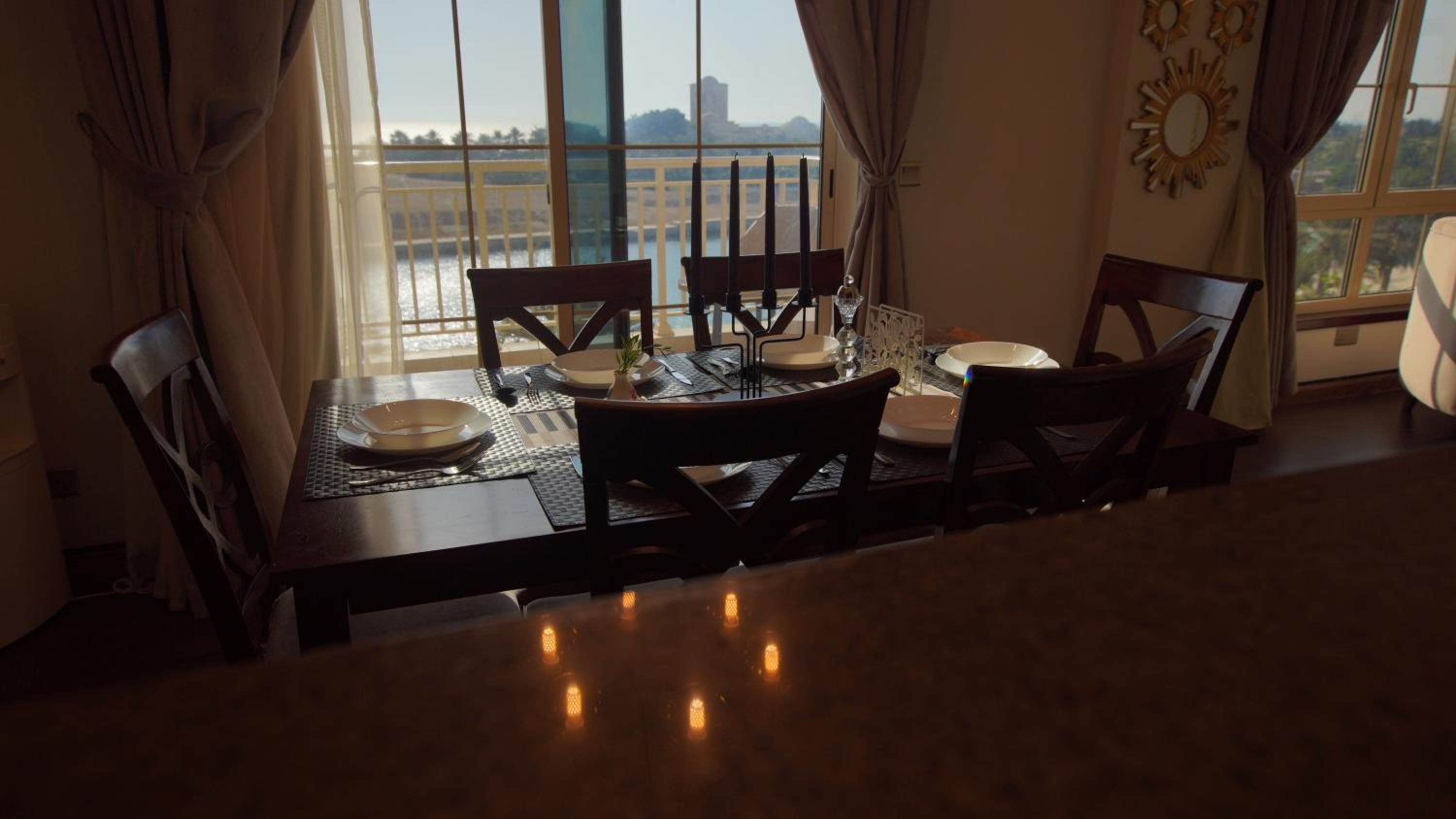 الاطلالة جميلة على الرغم ان بعض الشبابيك وسخة وما تشوف زين من خلالها، الشقة ككل ما تستاهل سعرها غير نظيفة وغير مهيئة من ناحية الصيانة