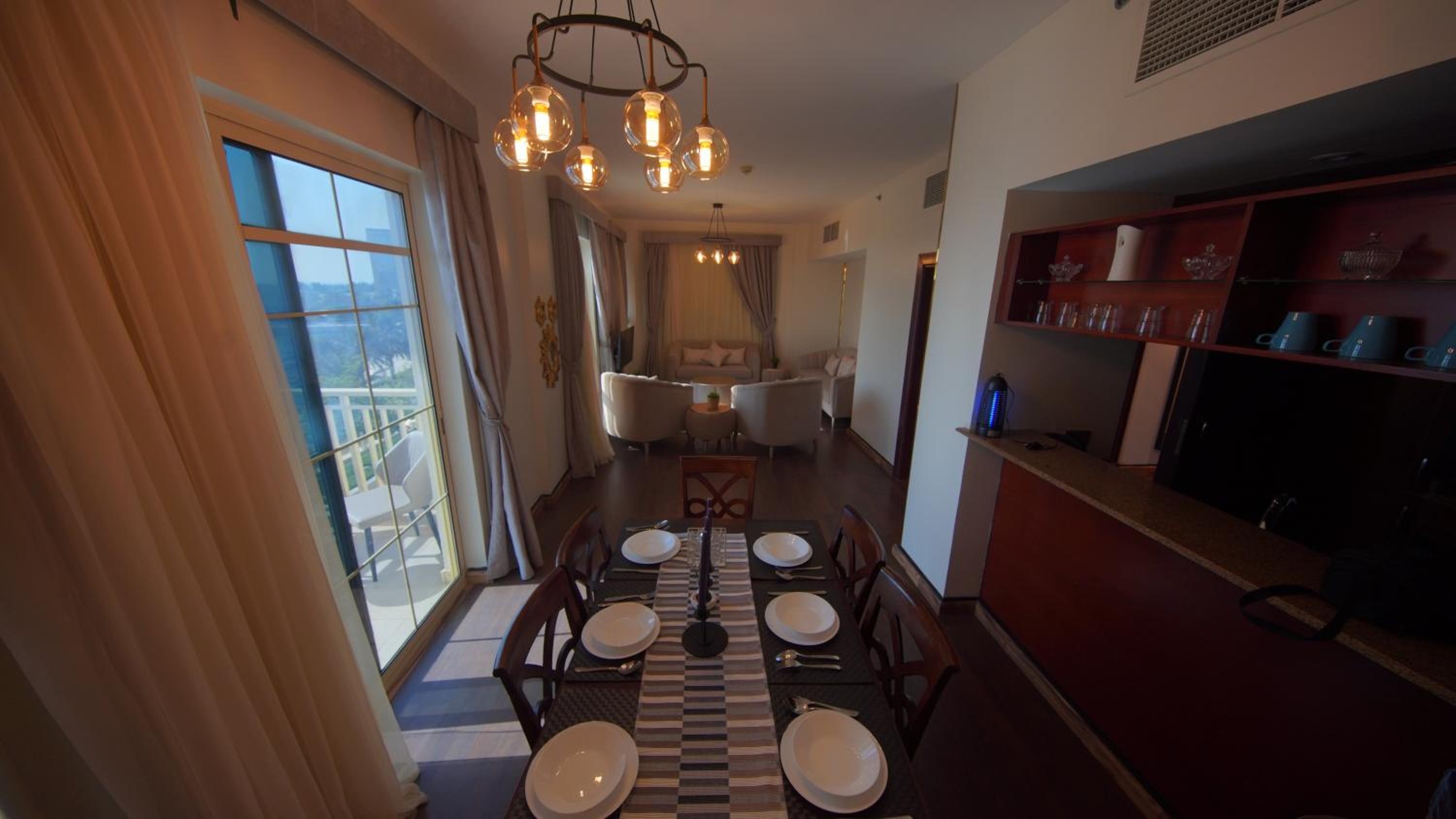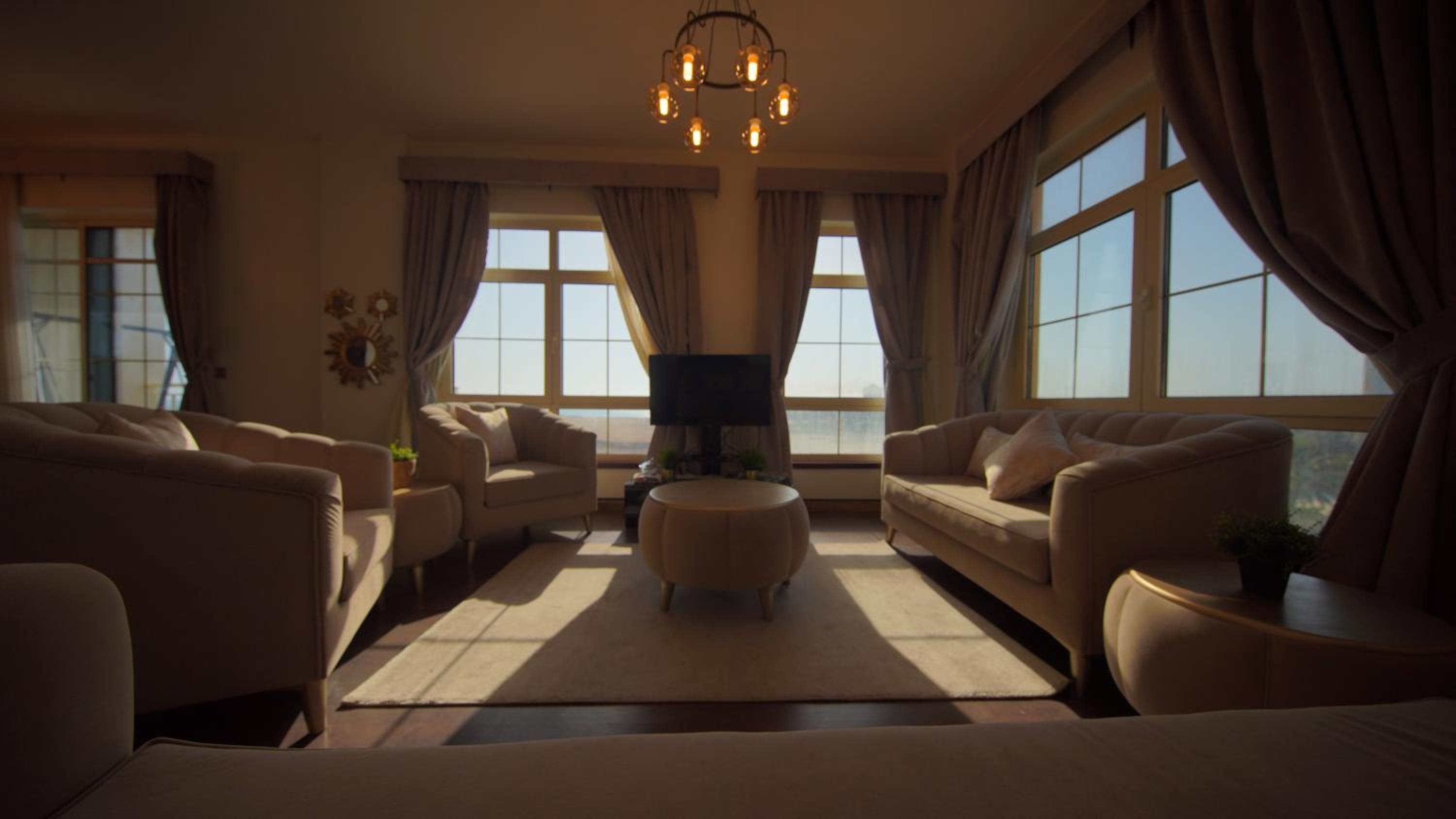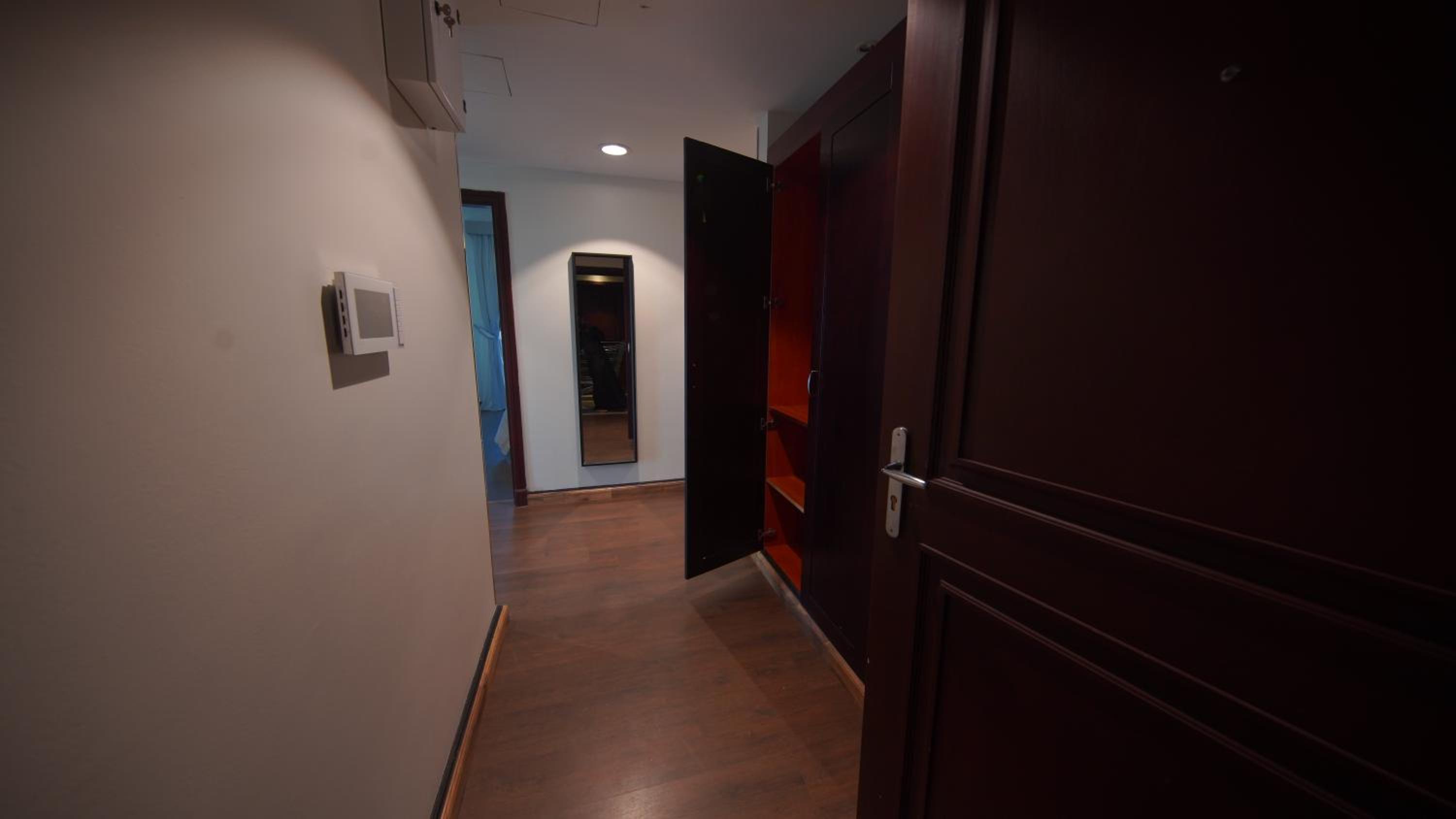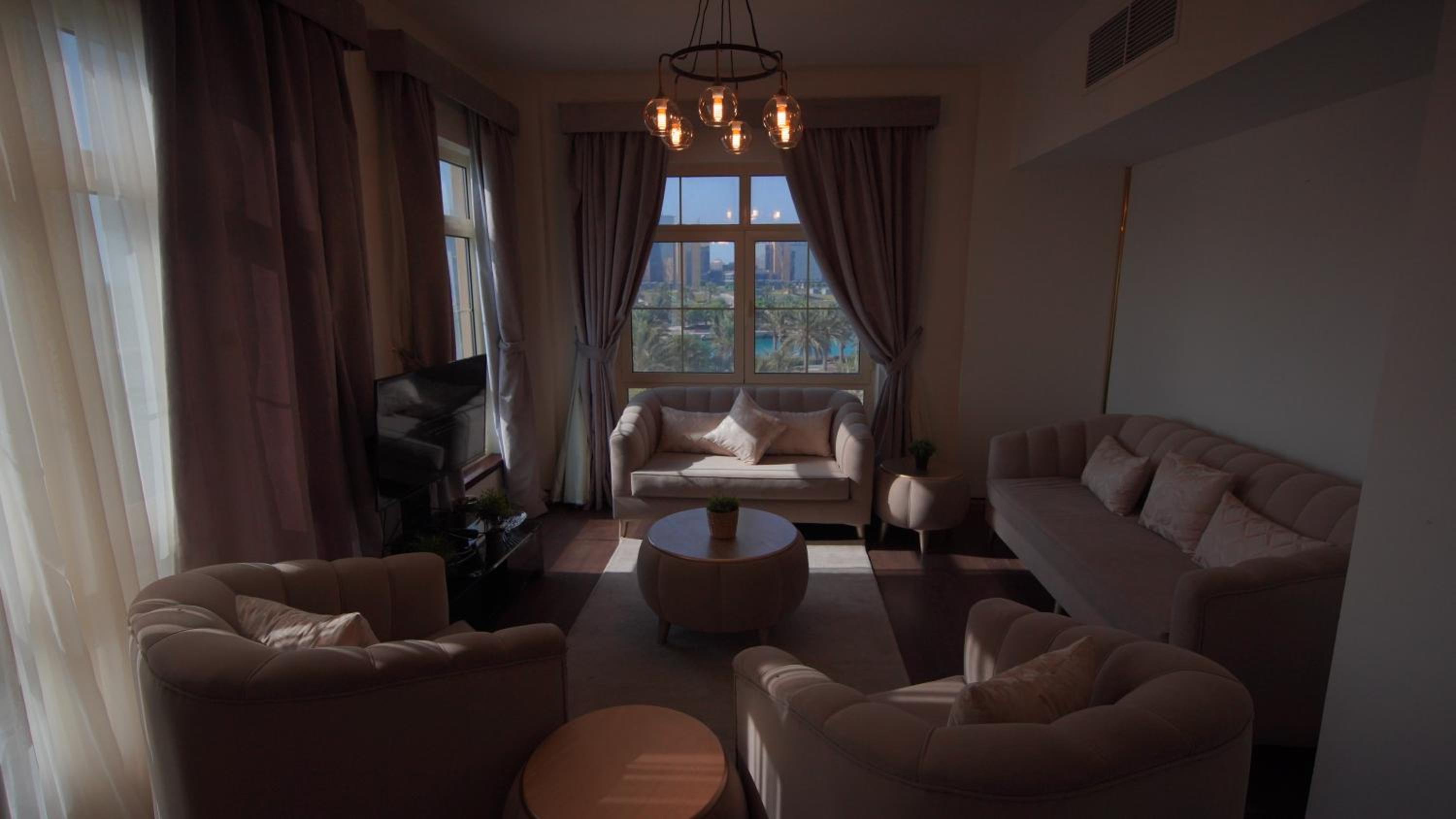الاطلالة جميلة على الرغم ان بعض الشبابيك وسخة وما تشوف زين من خلالها، الشقة ككل ما تستاهل سعرها غير نظيفة وغير مهيئة من ناحية الصيانة