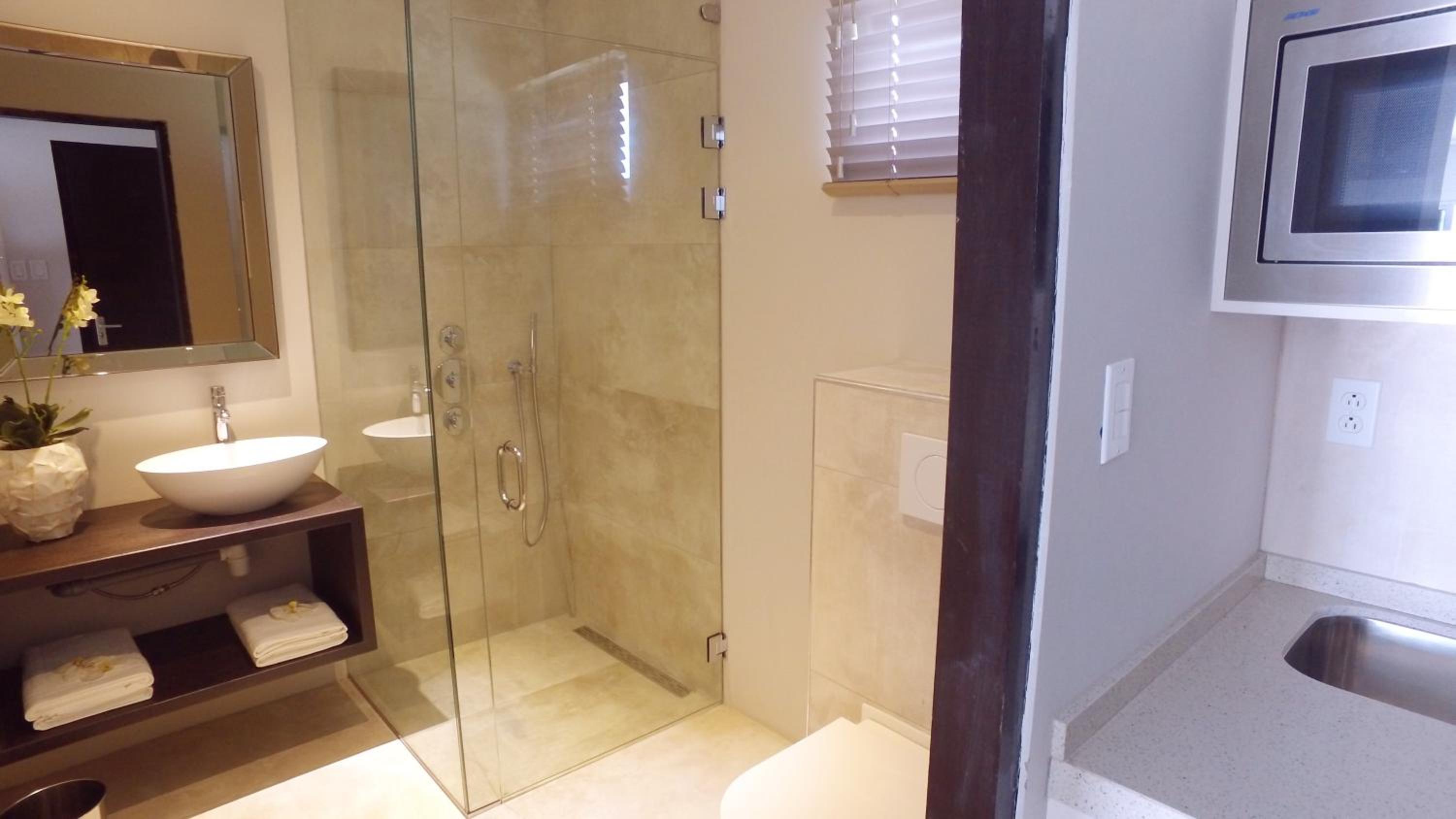 - Bathroom is also nice, with bathrobes and more than enough towels. Might be a little small for some but it was perfect for our group.