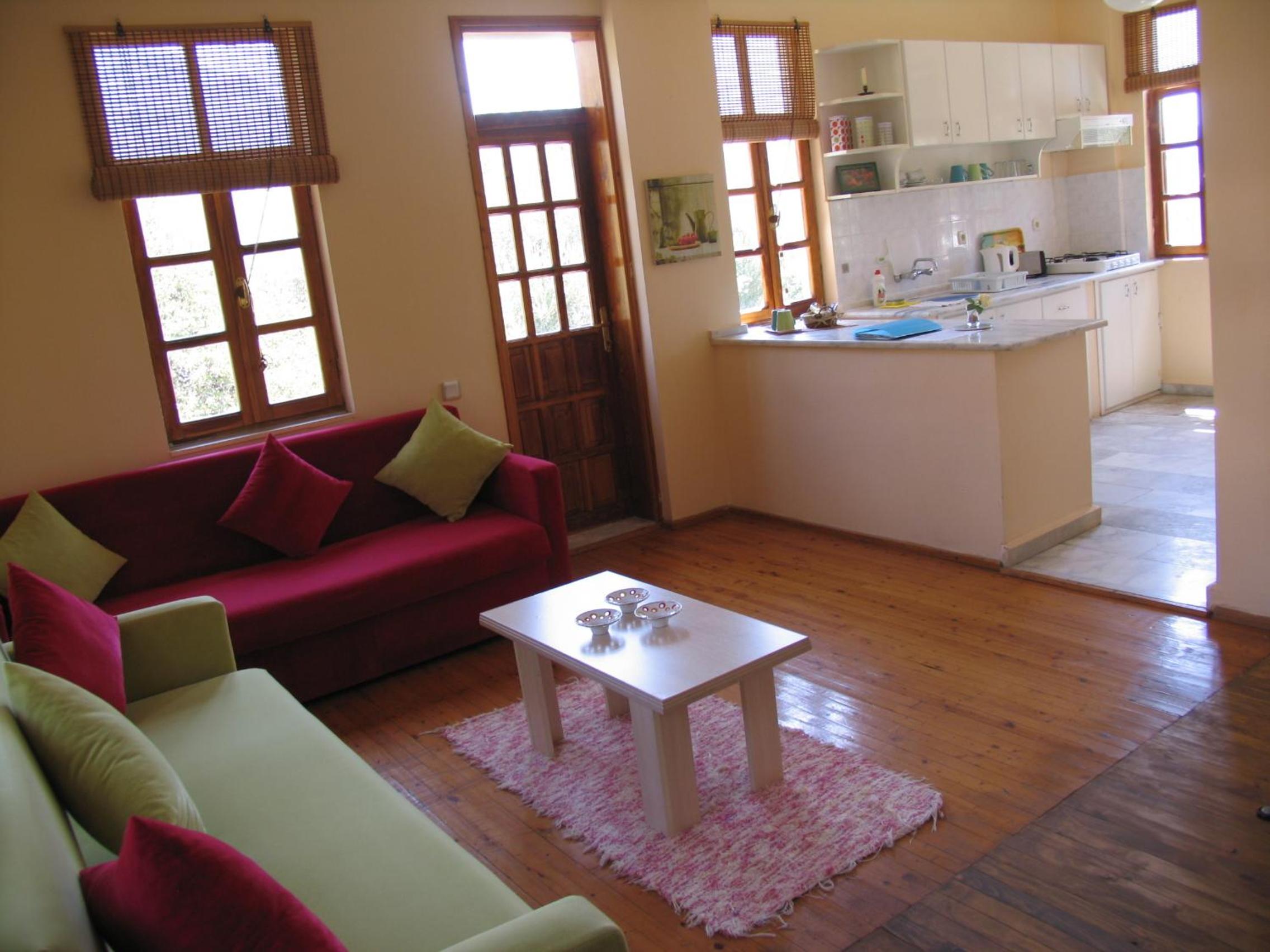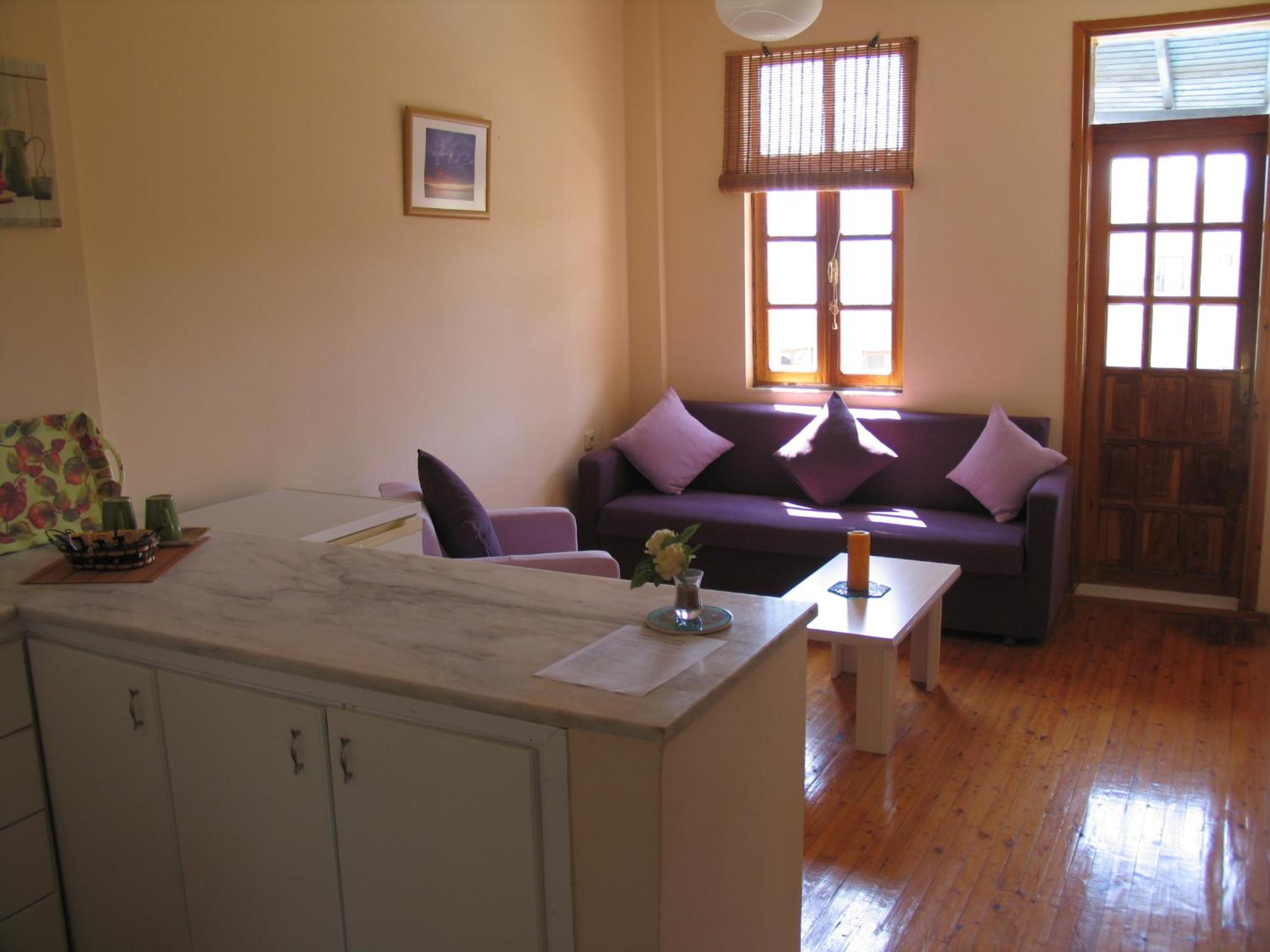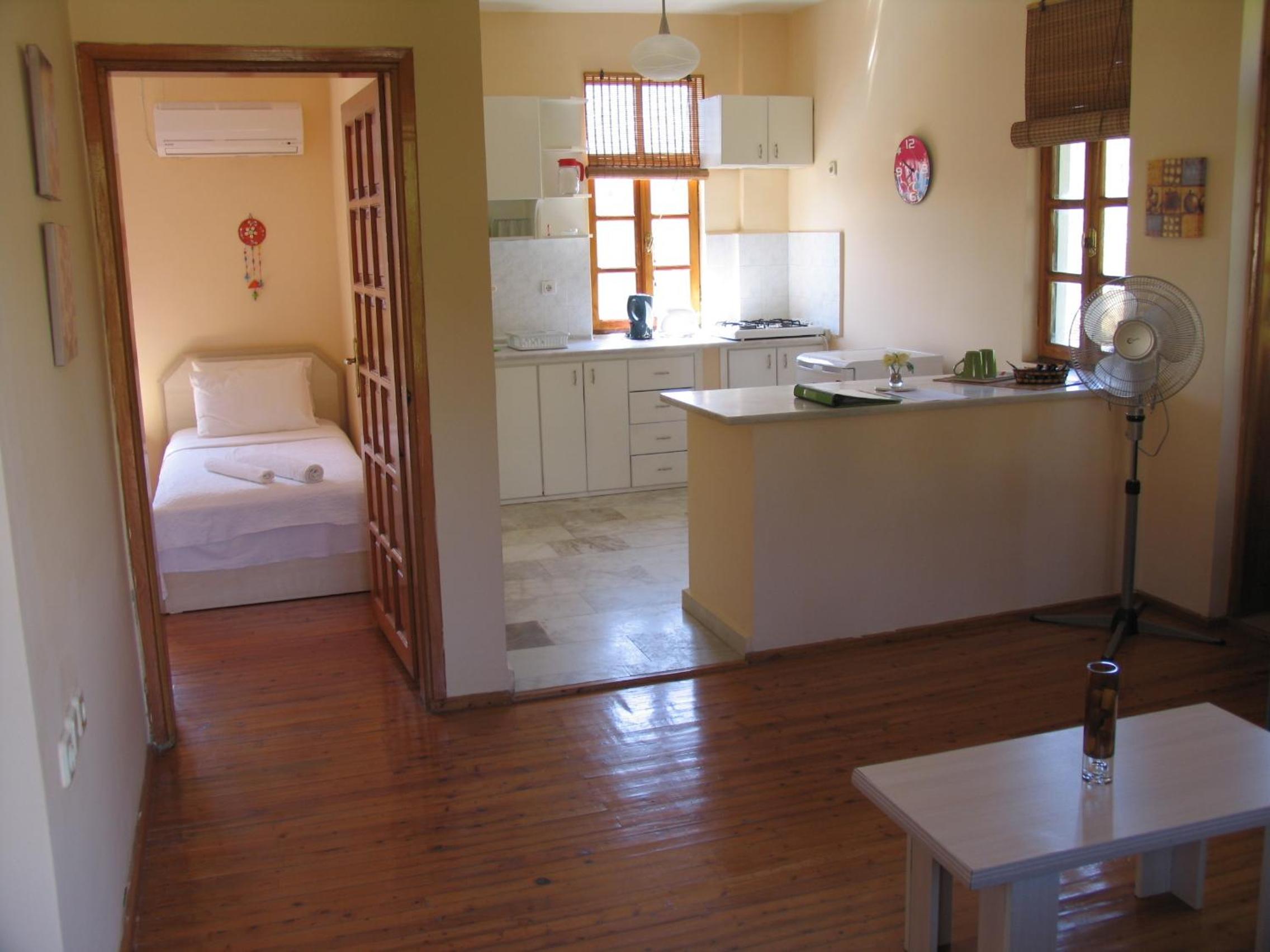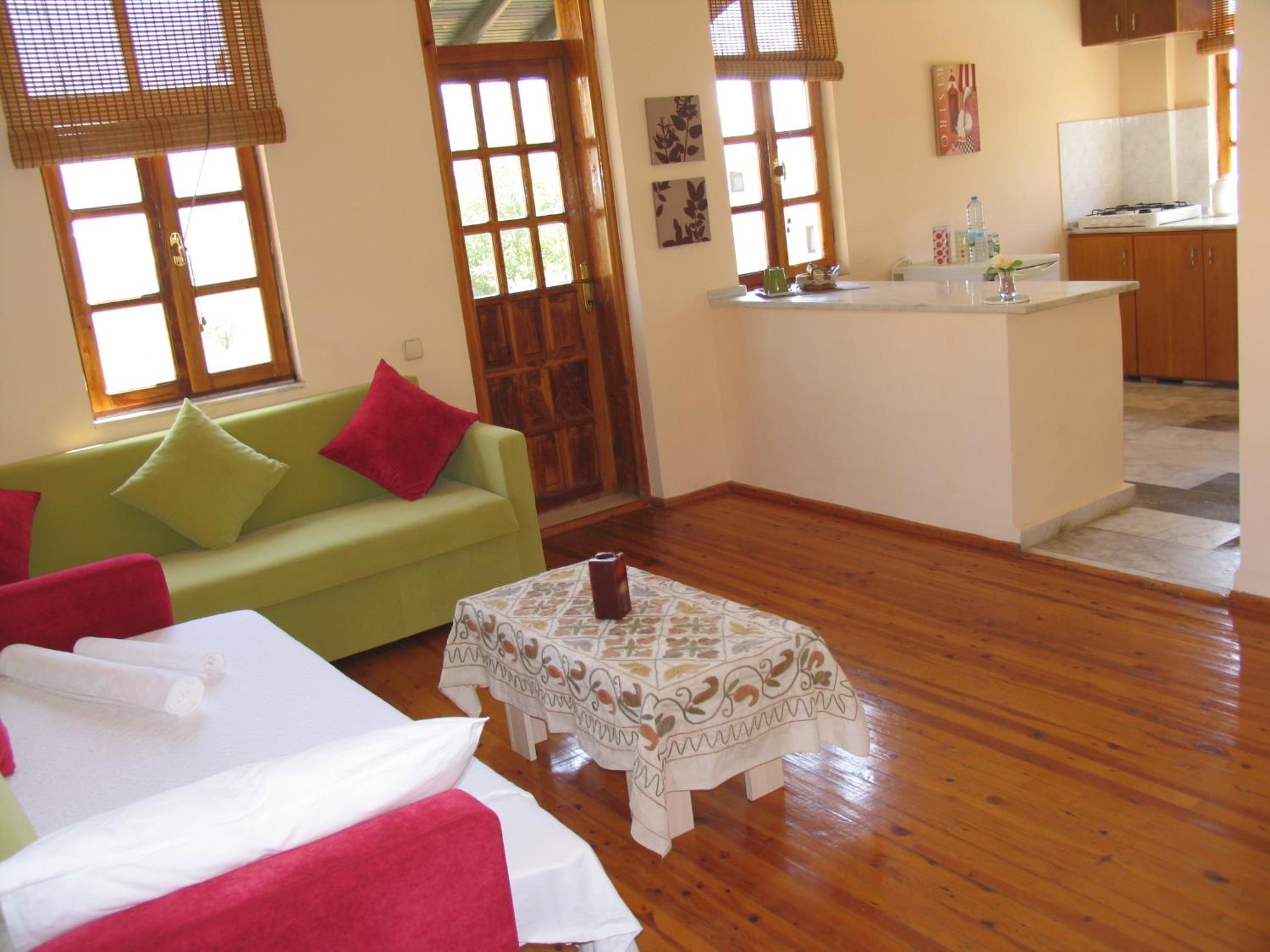 Home Away from Home: The bright apartments feature air conditioning, a kitchenette, and comfortable seating, providing a cozy atmosphere for a self-catered experience.