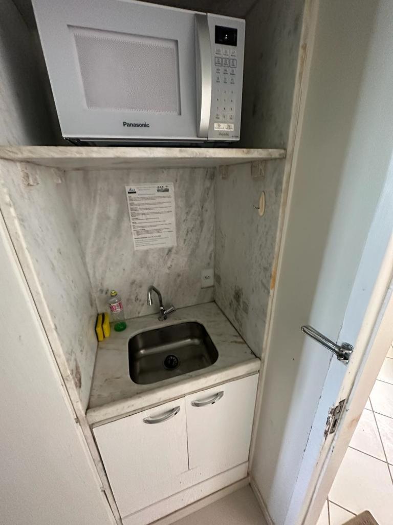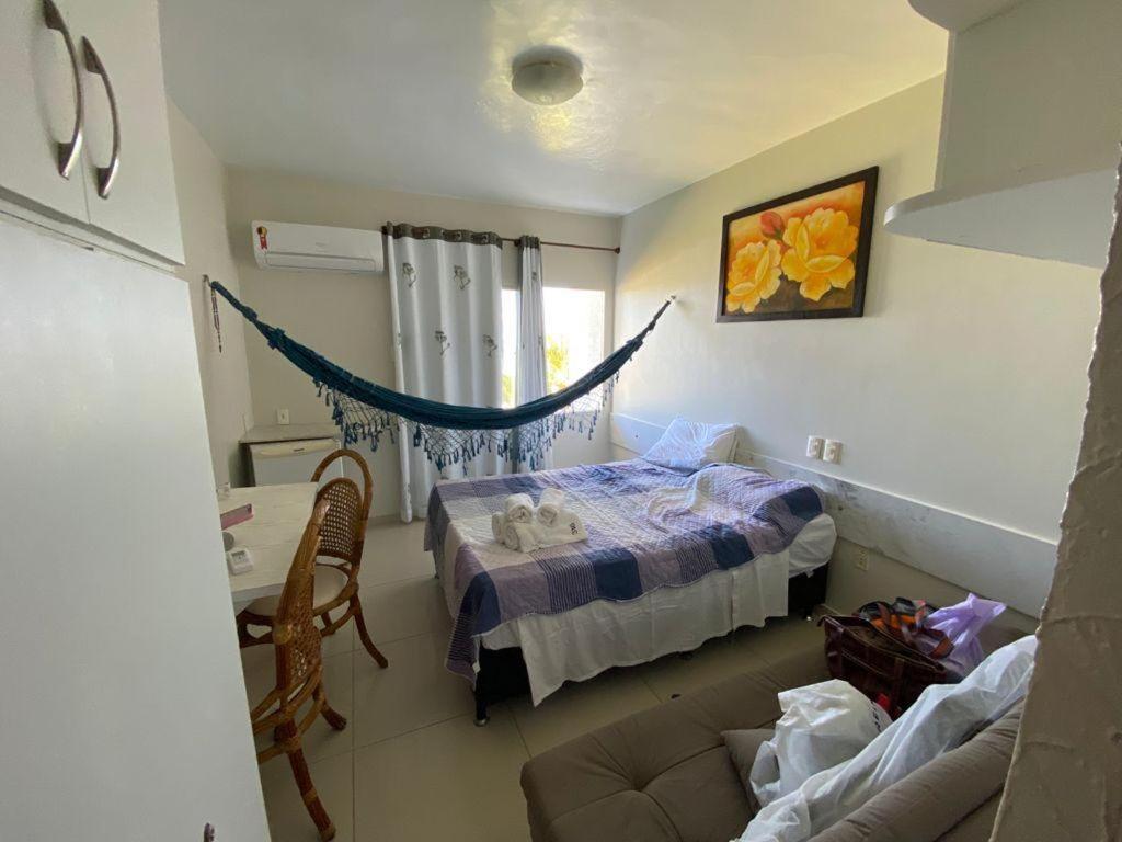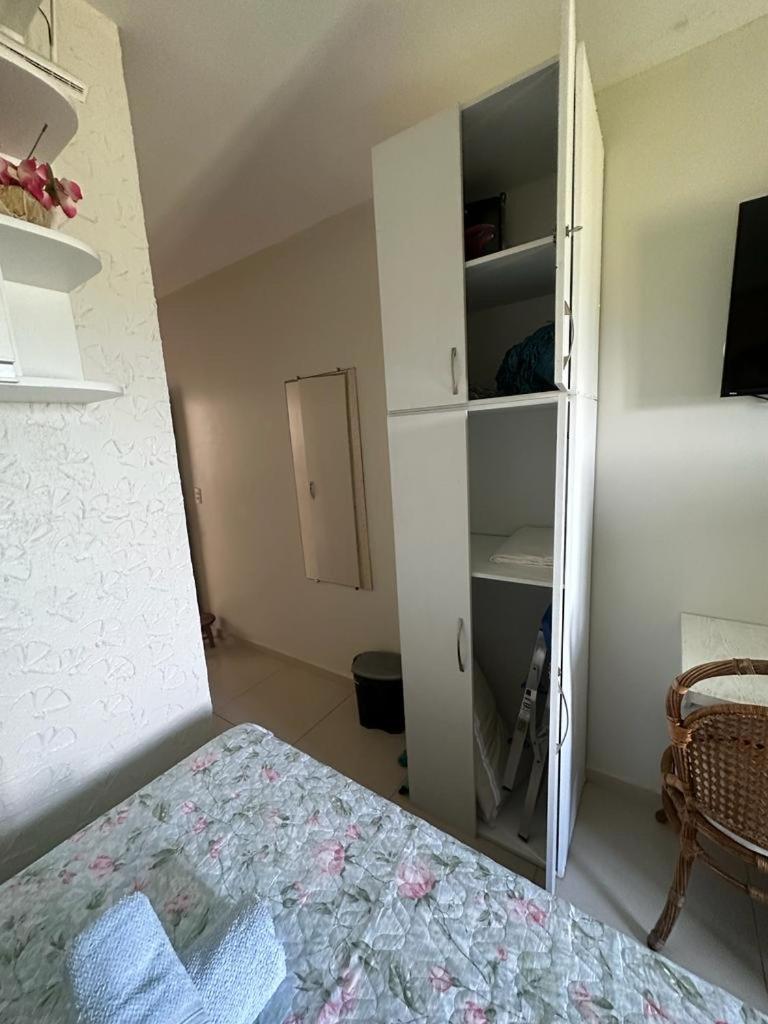 Flat Simples, mas muito aconchegante! Cama confortável, mesinha para refeições. Tem utensílios de cozinha, geladeira, tv, panela de arroz, cafeteira. Chuveiro bom, um espelho grande, maravilhoso. Sem falar na vista do quarto que é surreal de linda.