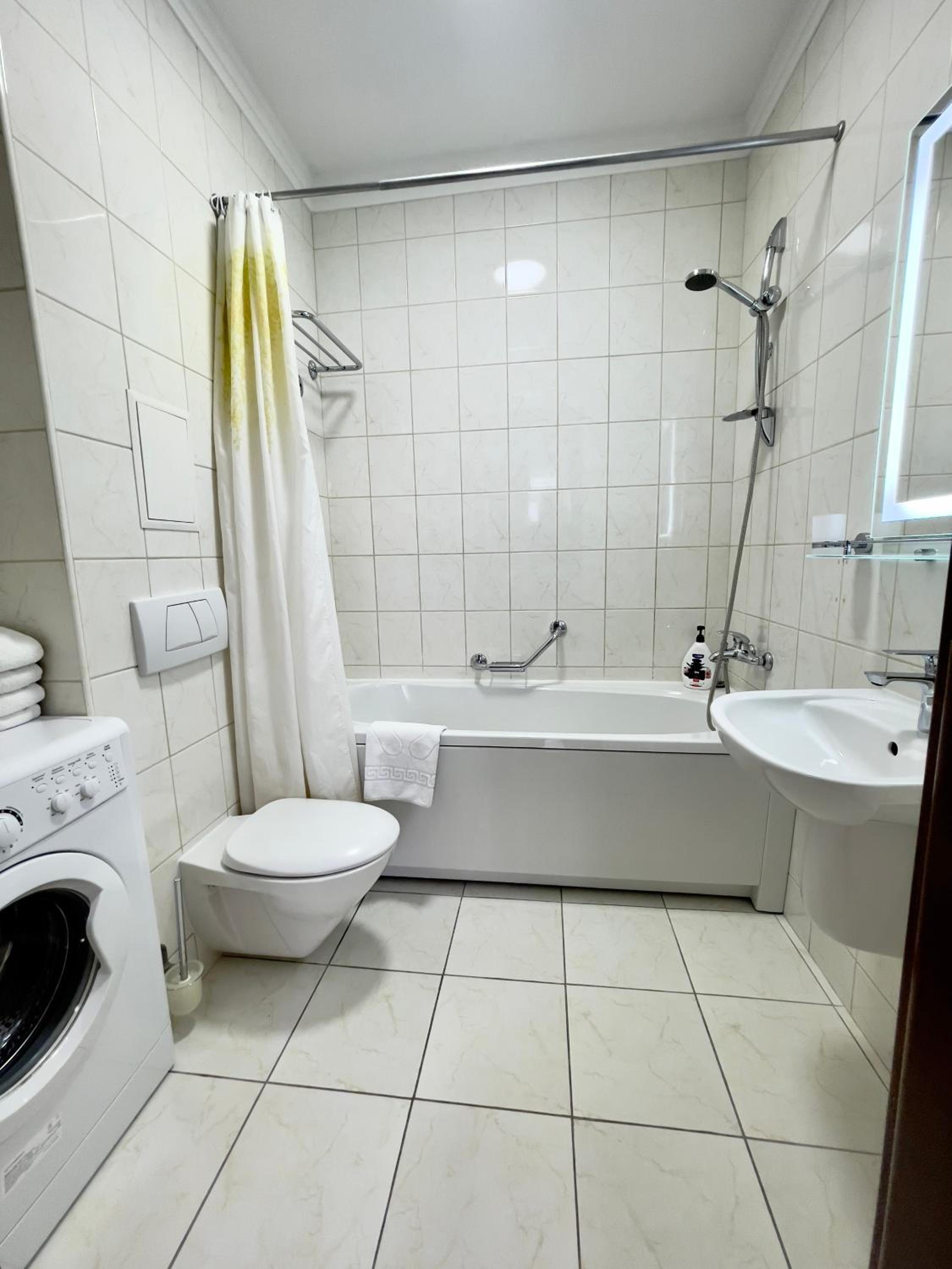 Сподобалося розташування апартаментів. Дуже затишне місце, тихе. Одразу спуск до моря, легкий, гарні пляжі, траса здоров'я. Ми були зі своїми велосипедами, було де їх залишити під наглядом. Також мали своє місце для паркування авто. В апартаментах достатньо простору, дві просторі кімнати і великий балкон з видом у двір і на басейн. Басейном можна було користвуватися. Кухня з усім обладнанням для приготування їжі, чаю чи кави. В номері була пральна машинка. Задоволені перебуванням тут. Зручно швидко спуститися до моря за 10 хвилин, щоб зустріти незабутній світанок. Рекомендую!