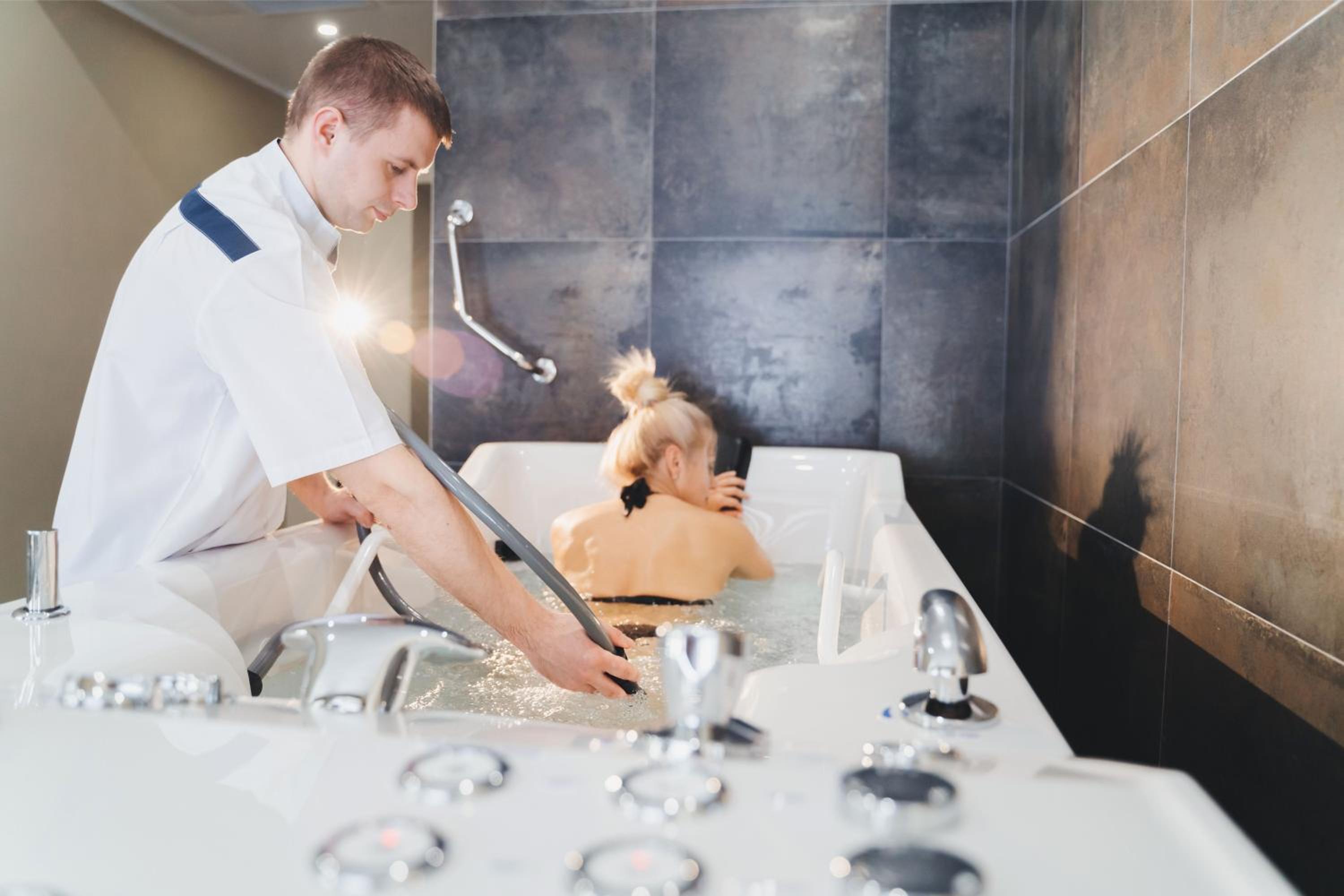 Luxurious Spa Experience: Indulge in relaxation at Sribny Termy spa center offering a range of amenities from a sauna to massage services.