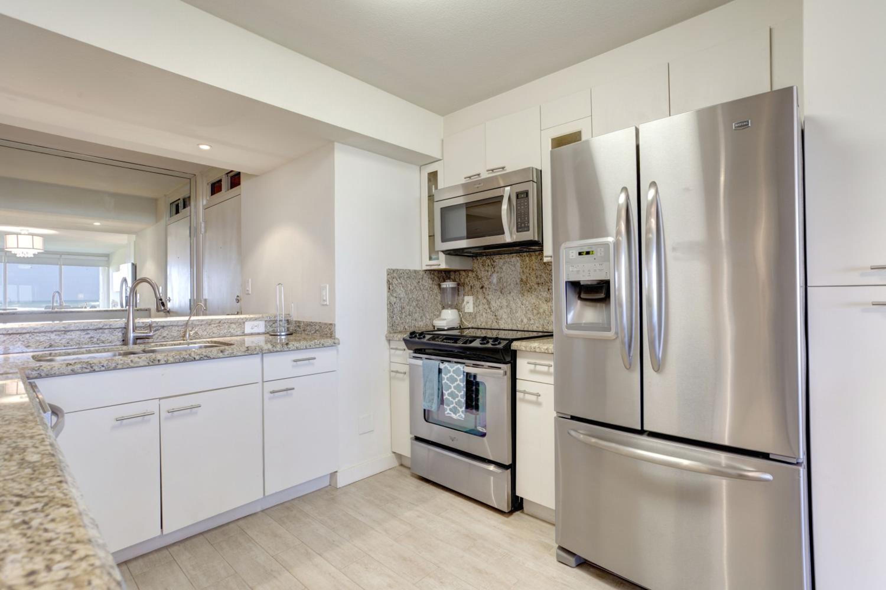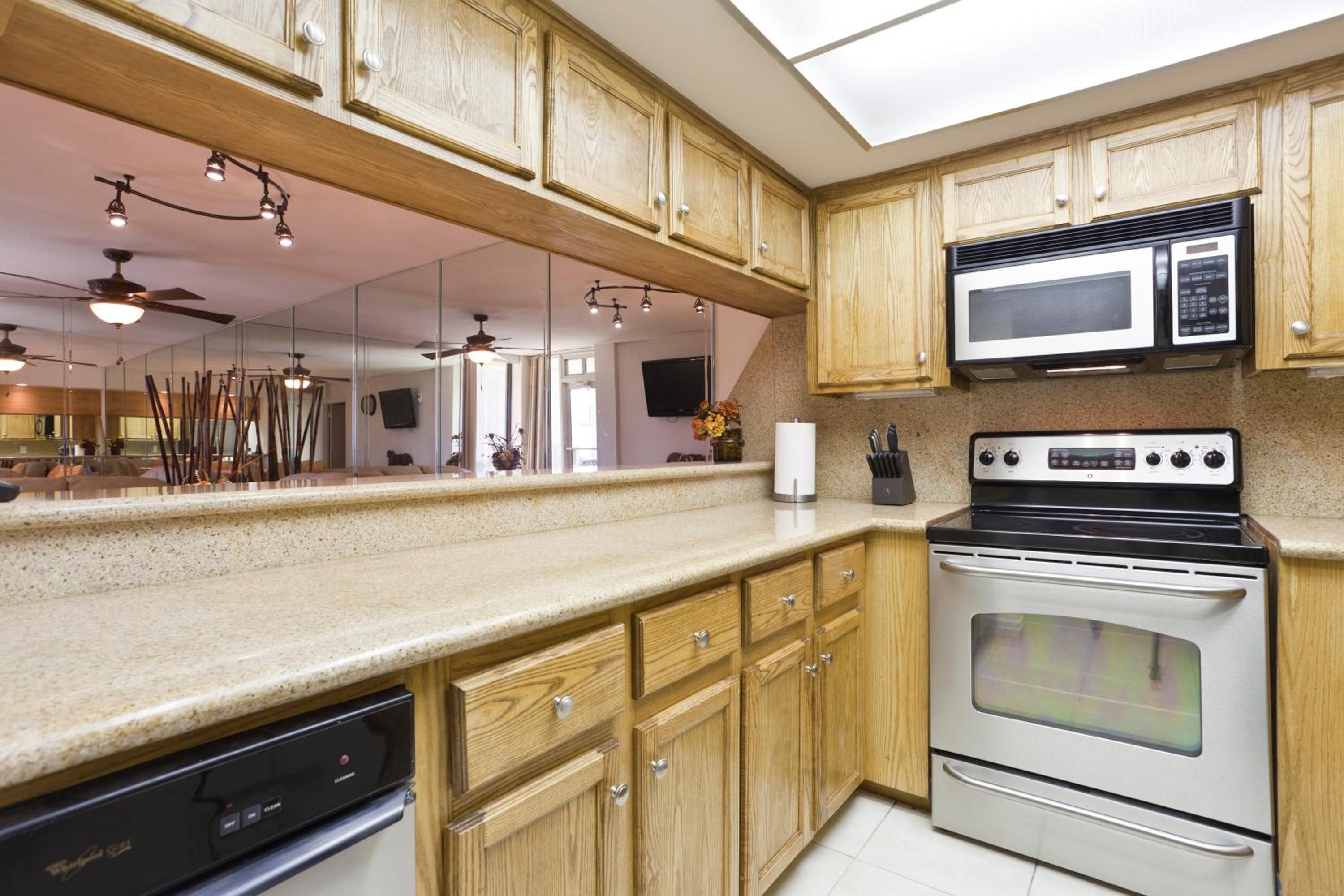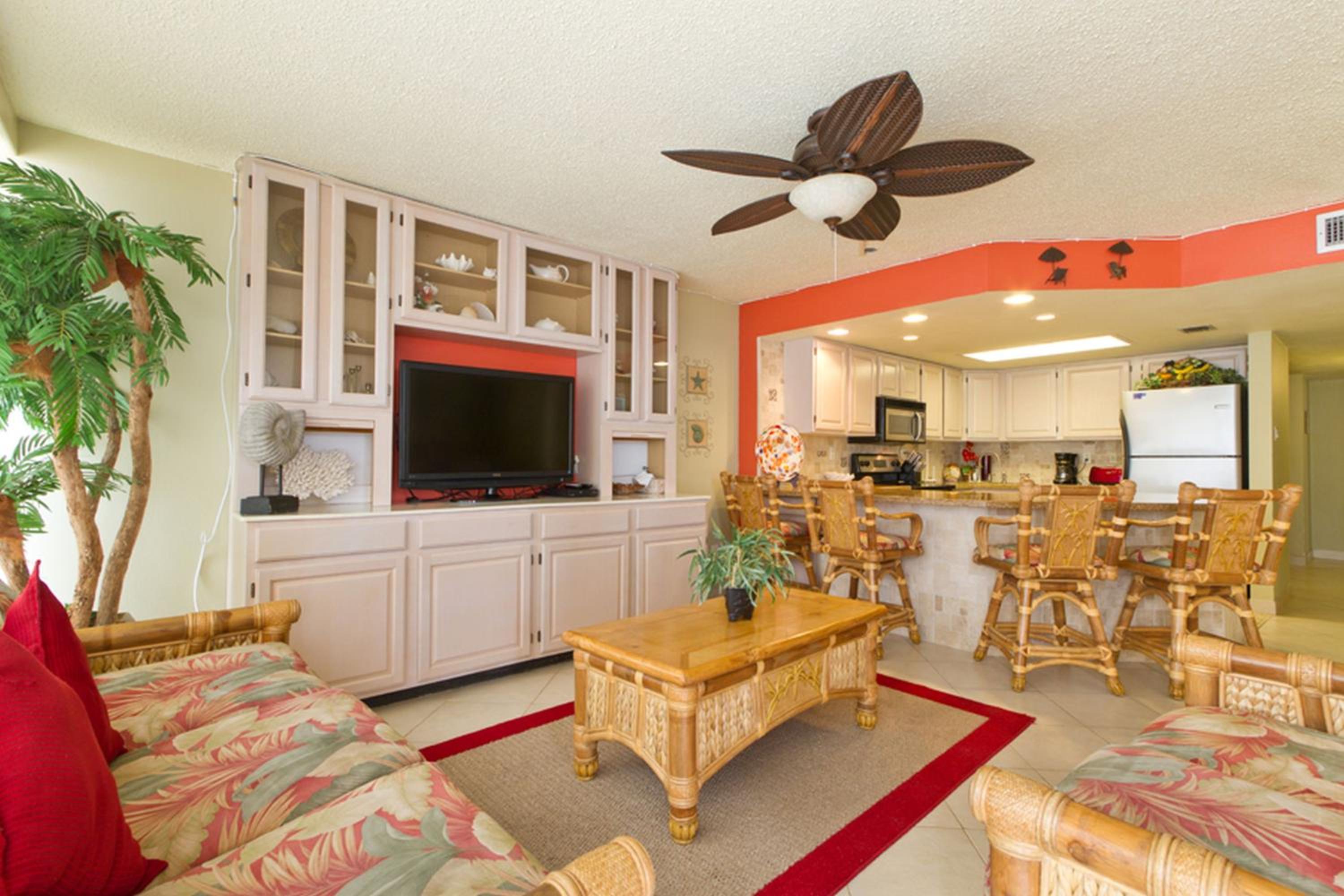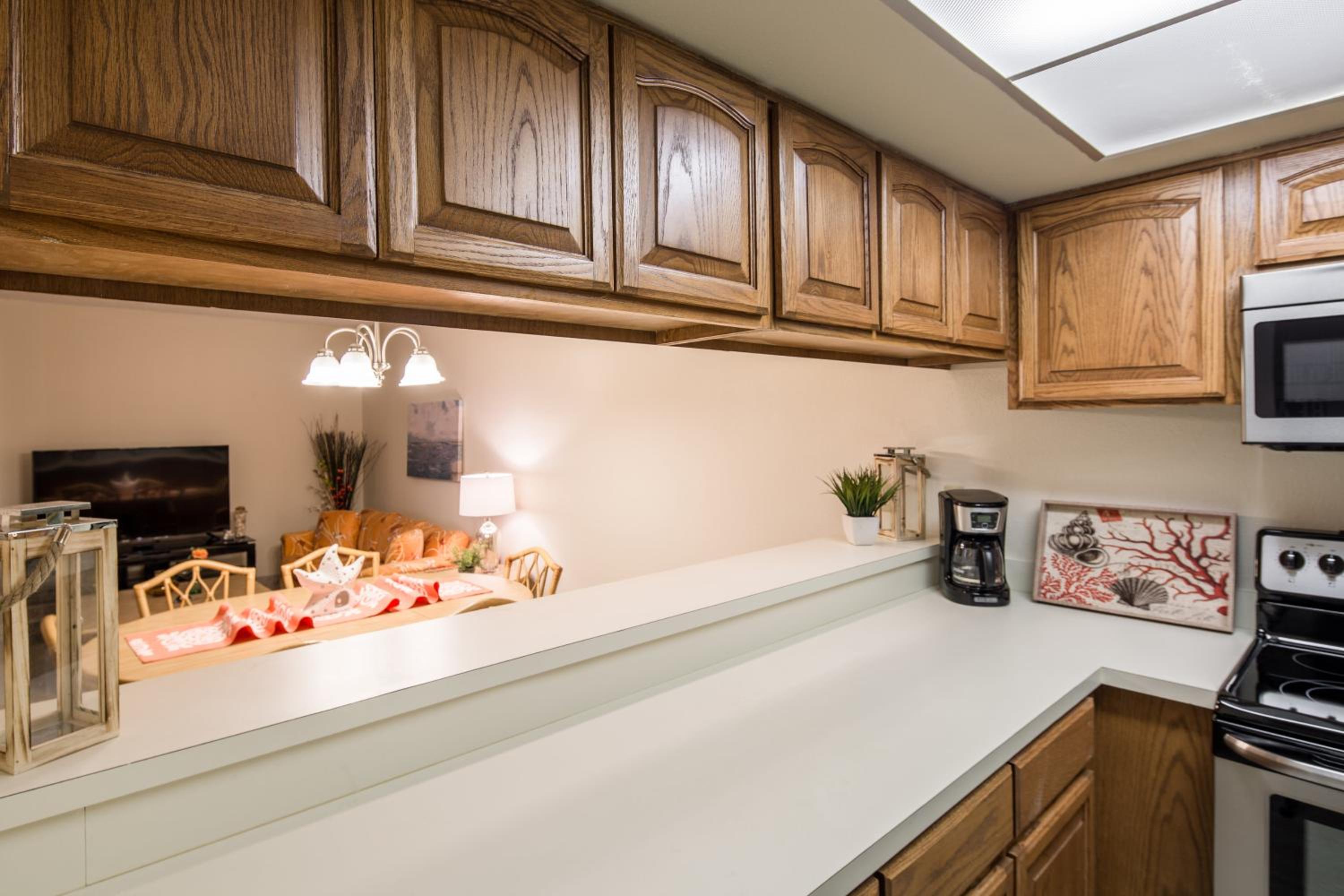 Each uniquely decorated condominium at Sea Vista features a flat-screen TV, DVD player, and a kitchen equipped with modern appliances. Some units offer a dining area and balcony for a perfect vacation setting.