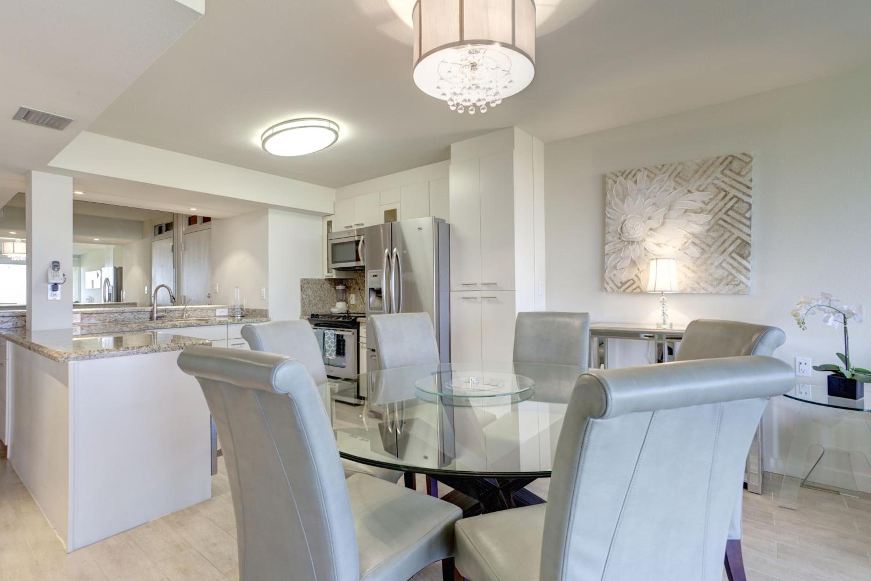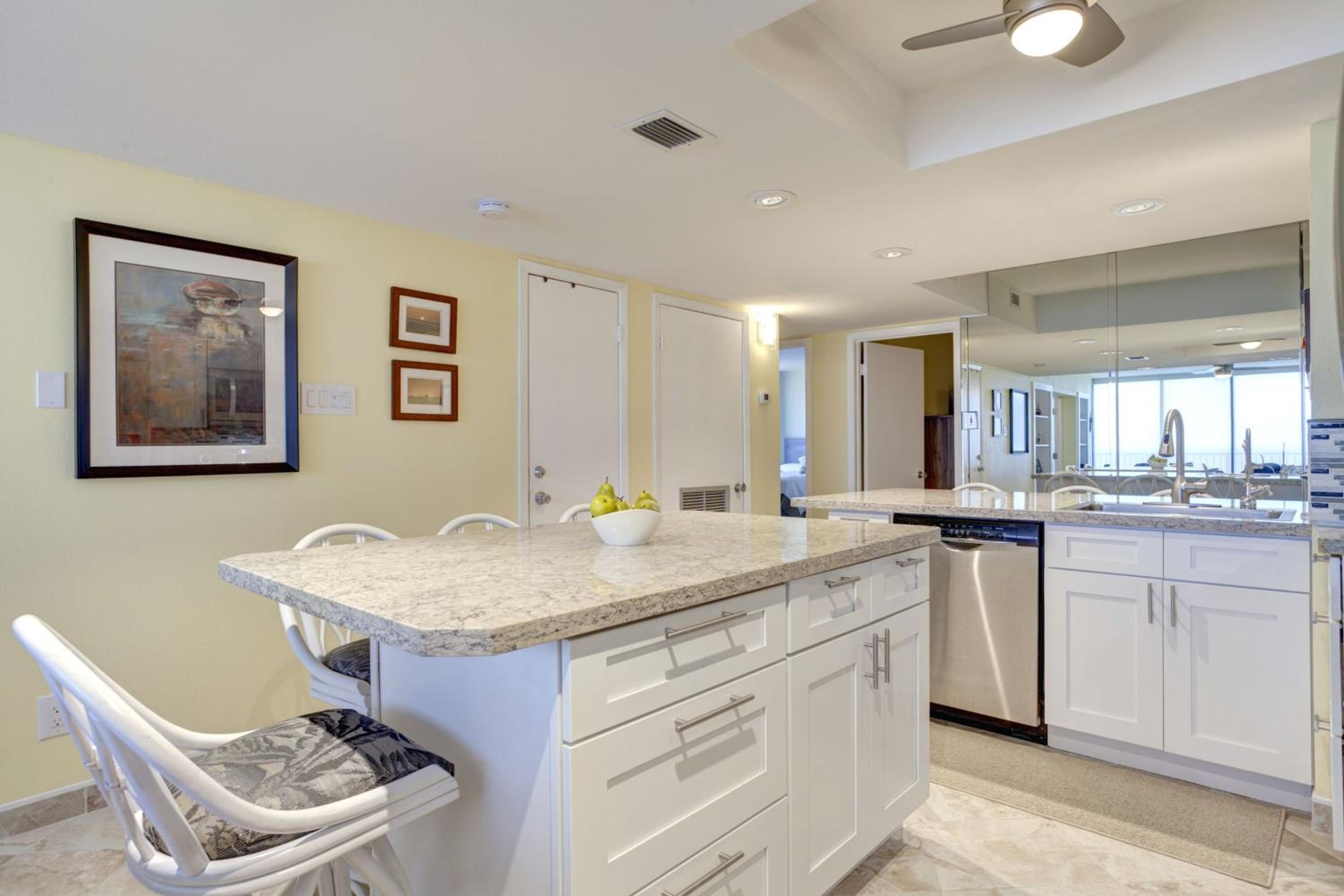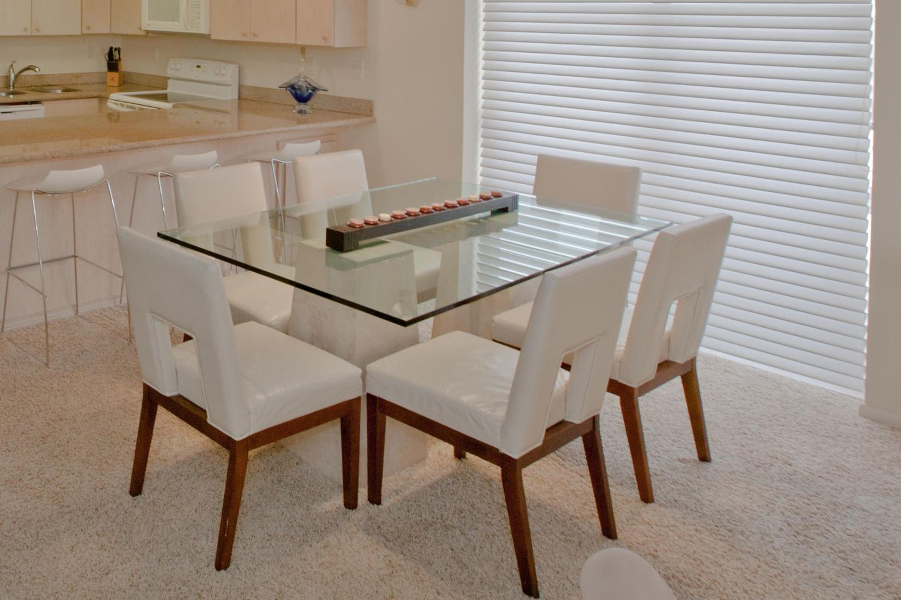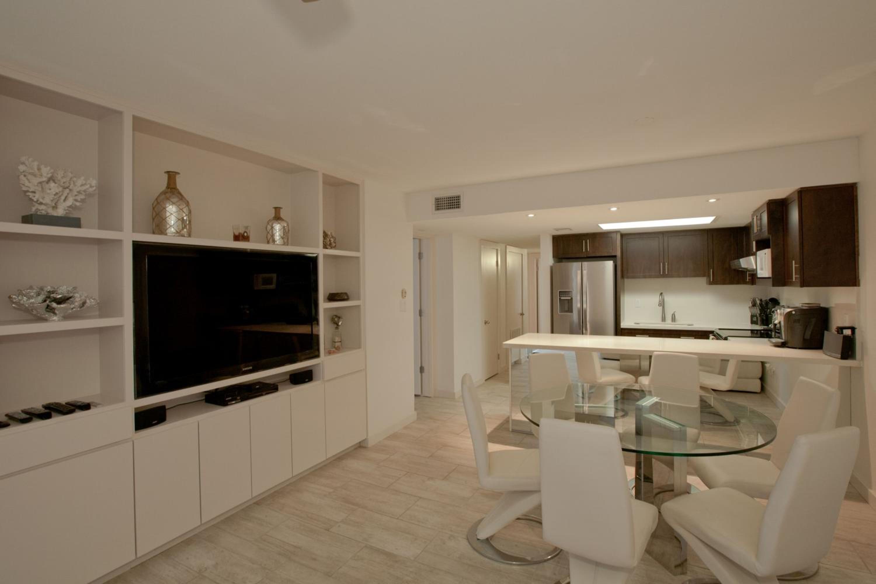 Each uniquely decorated condominium at Sea Vista features a flat-screen TV, DVD player, and a kitchen equipped with modern appliances. Some units offer a dining area and balcony for a perfect vacation setting.