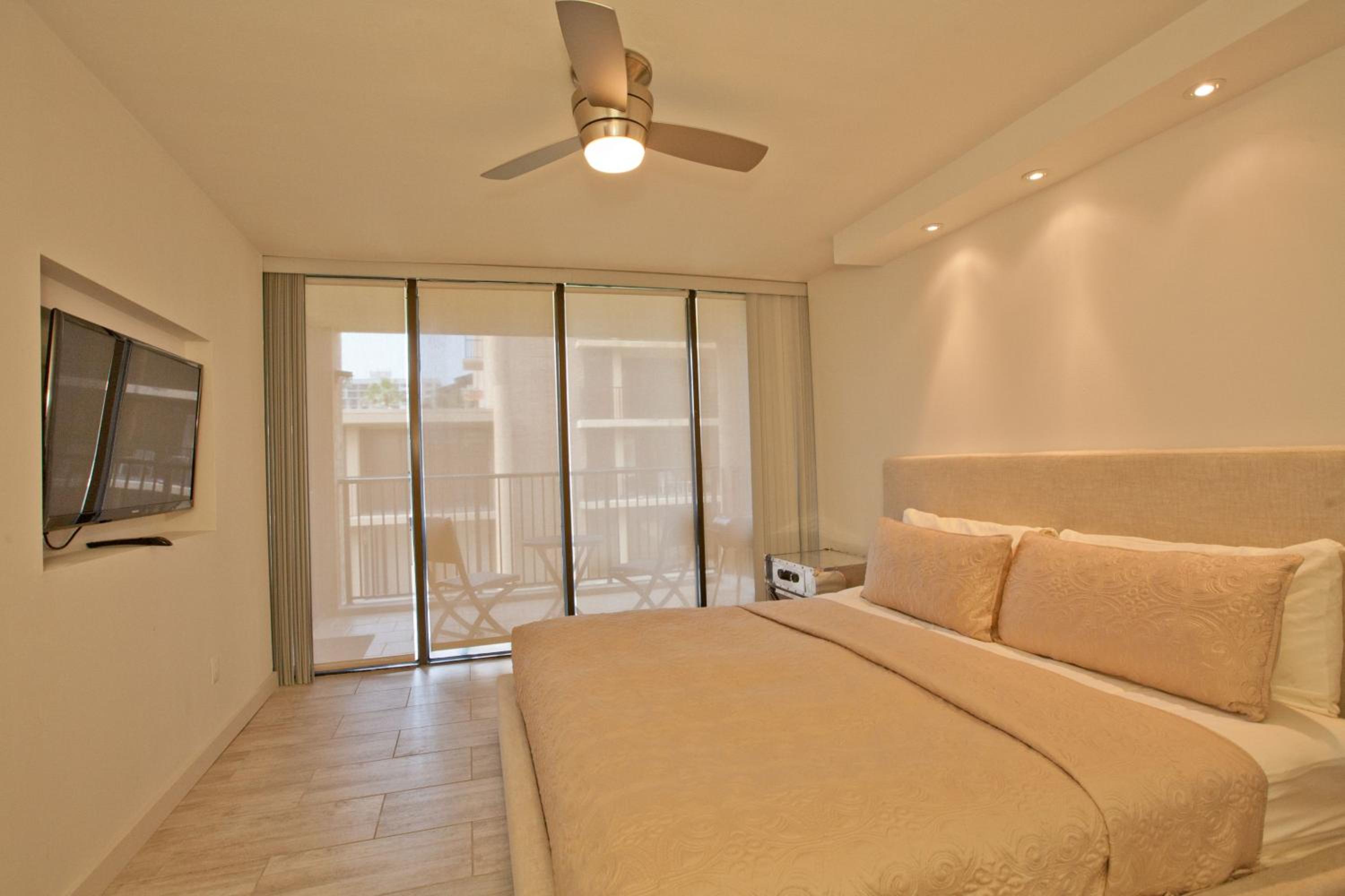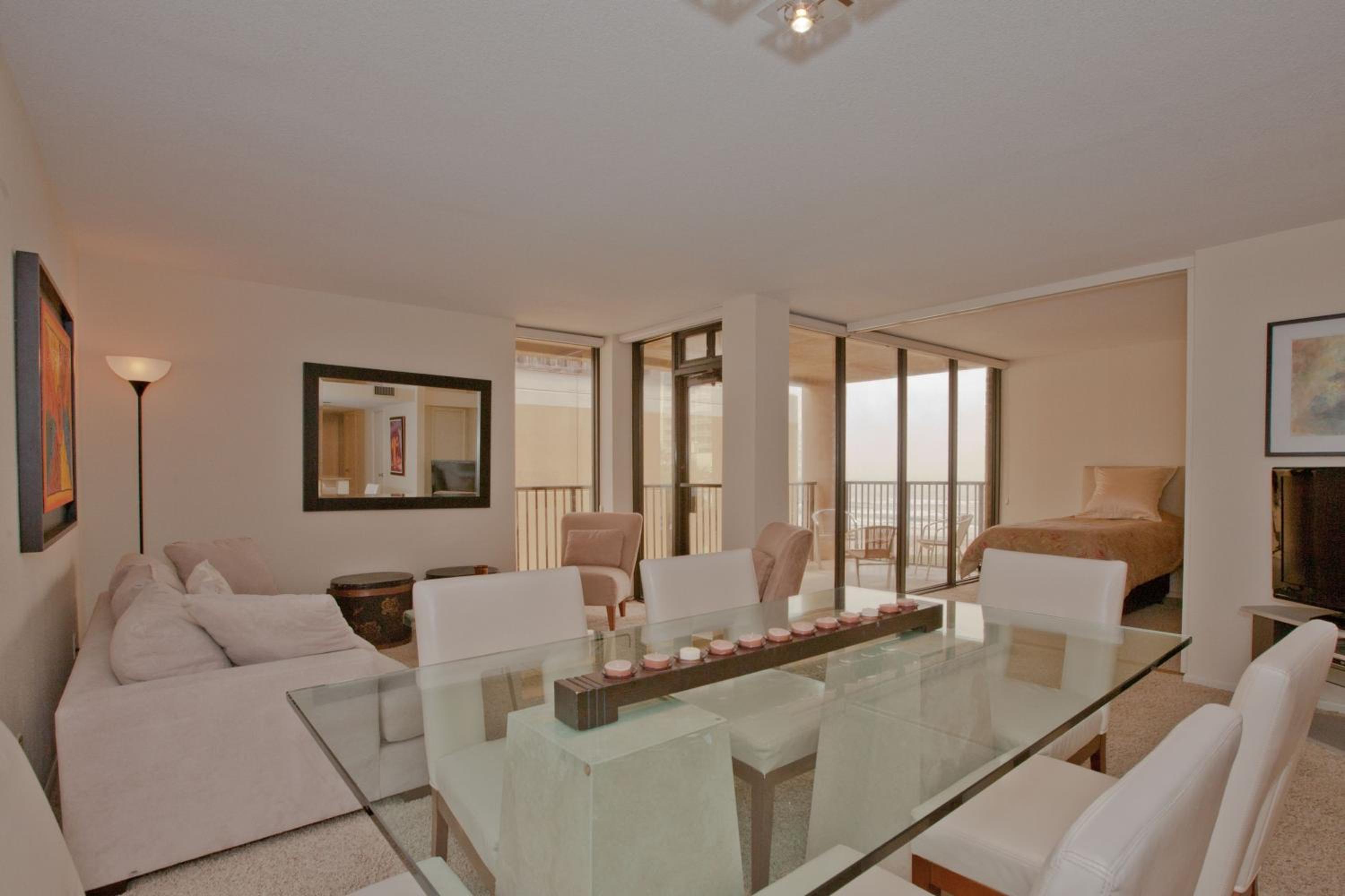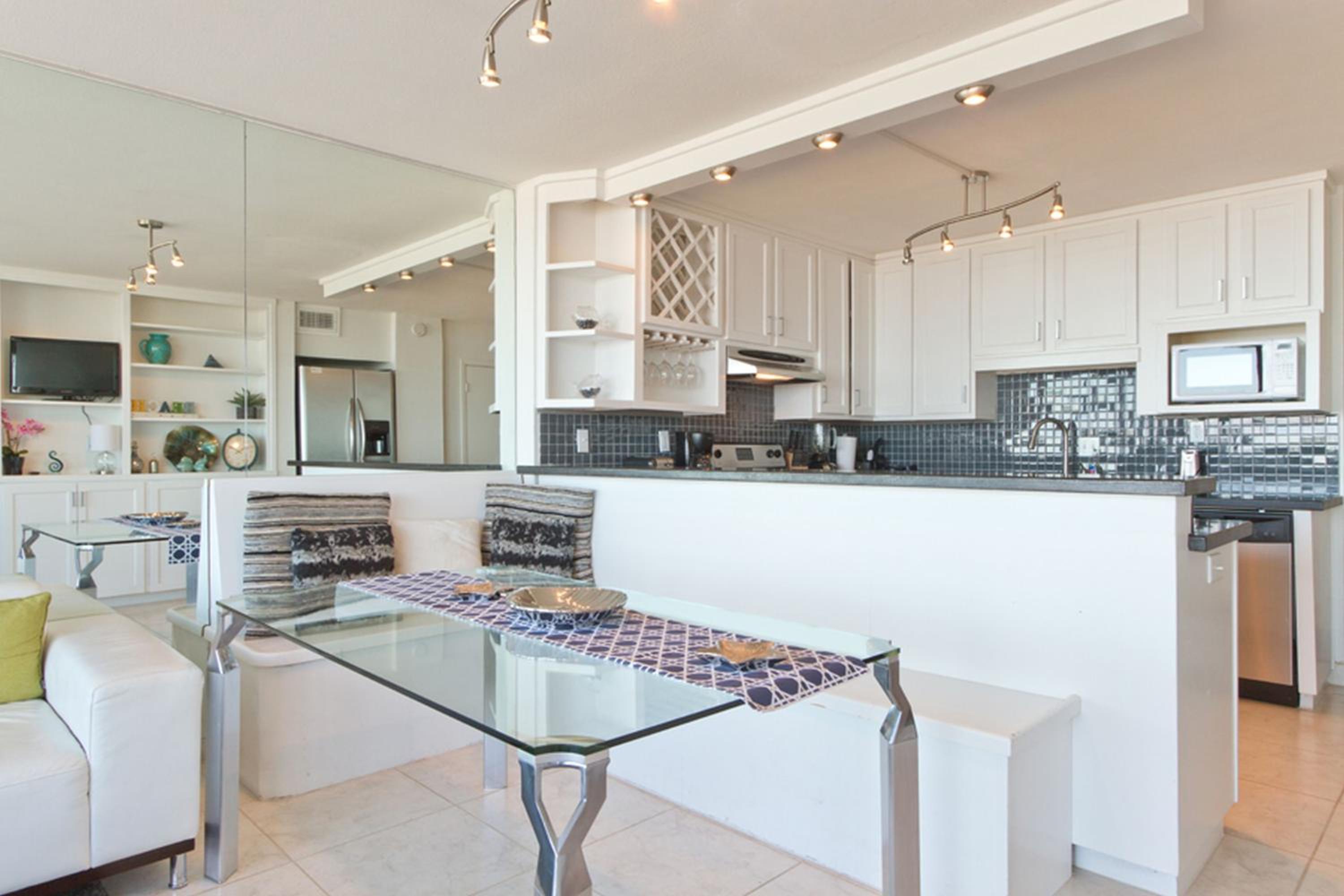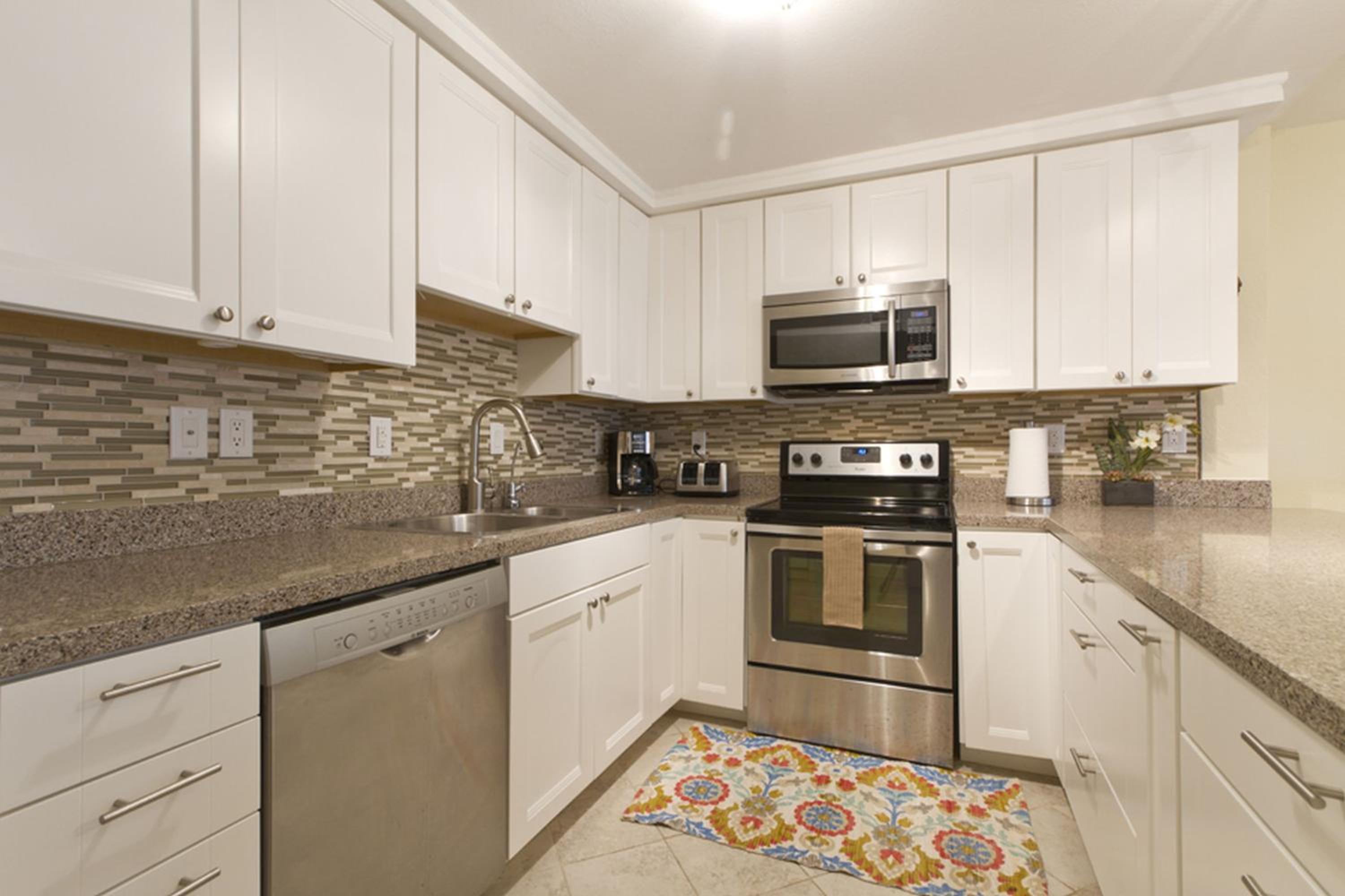 Each uniquely decorated condominium at Sea Vista features a flat-screen TV, DVD player, and a kitchen equipped with modern appliances. Some units offer a dining area and balcony for a perfect vacation setting.
