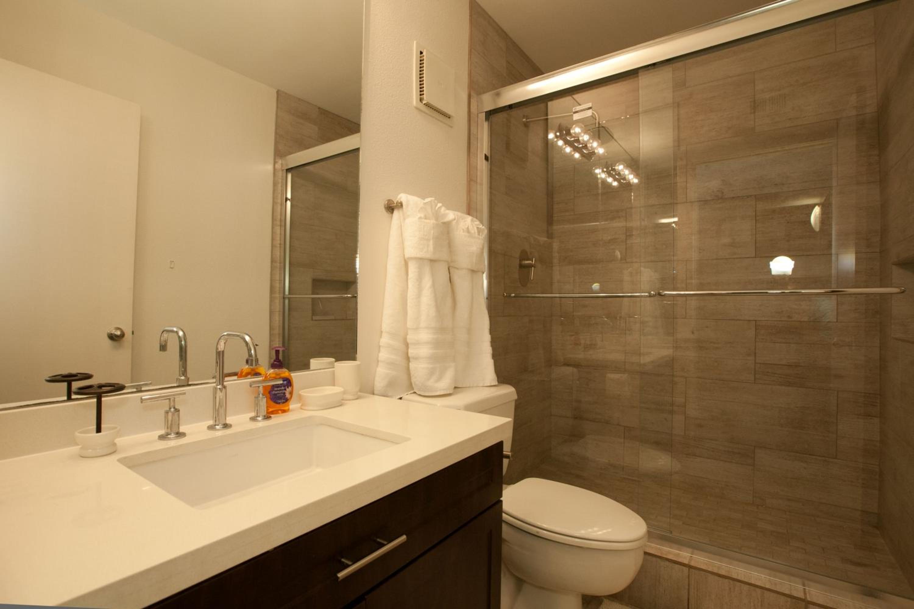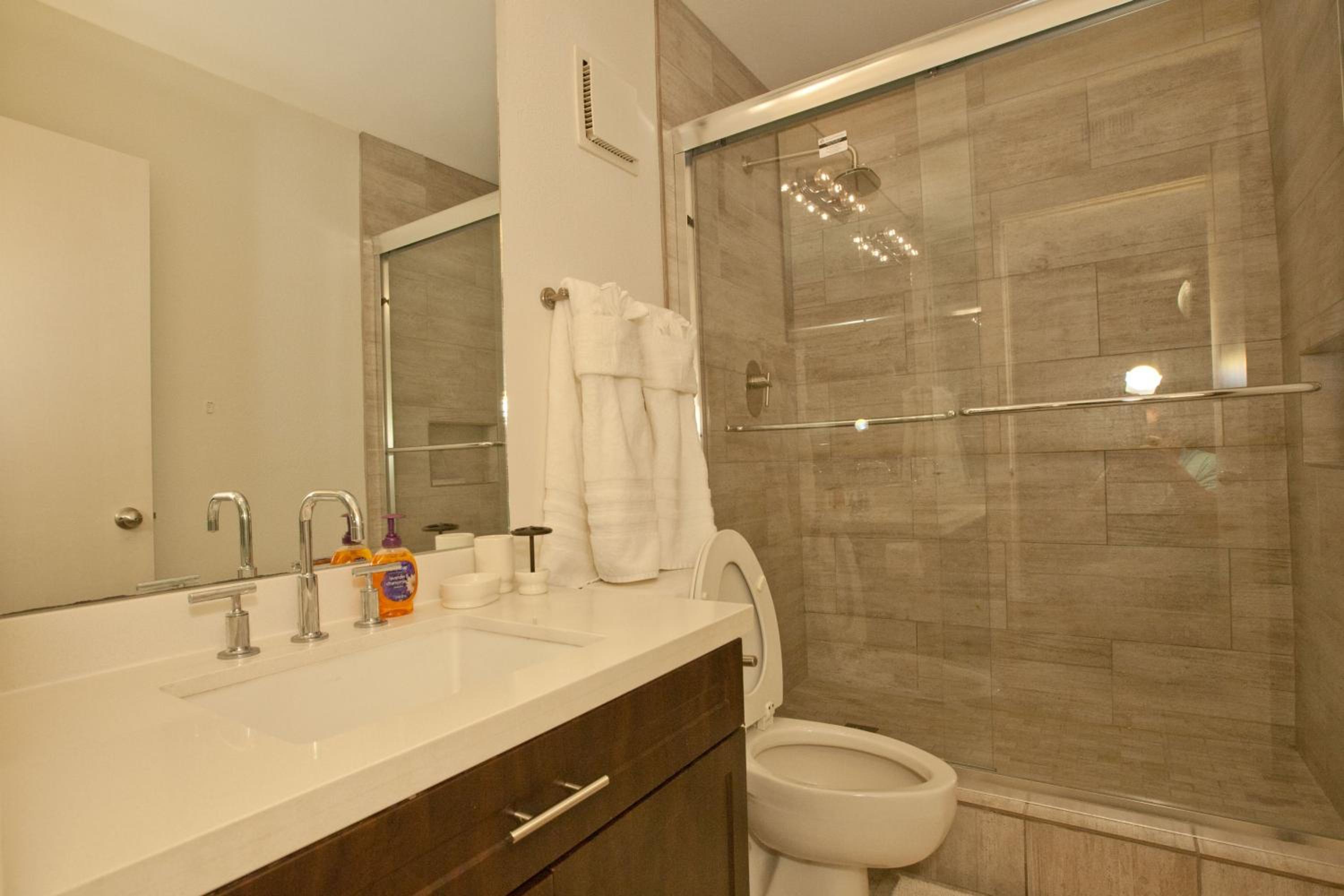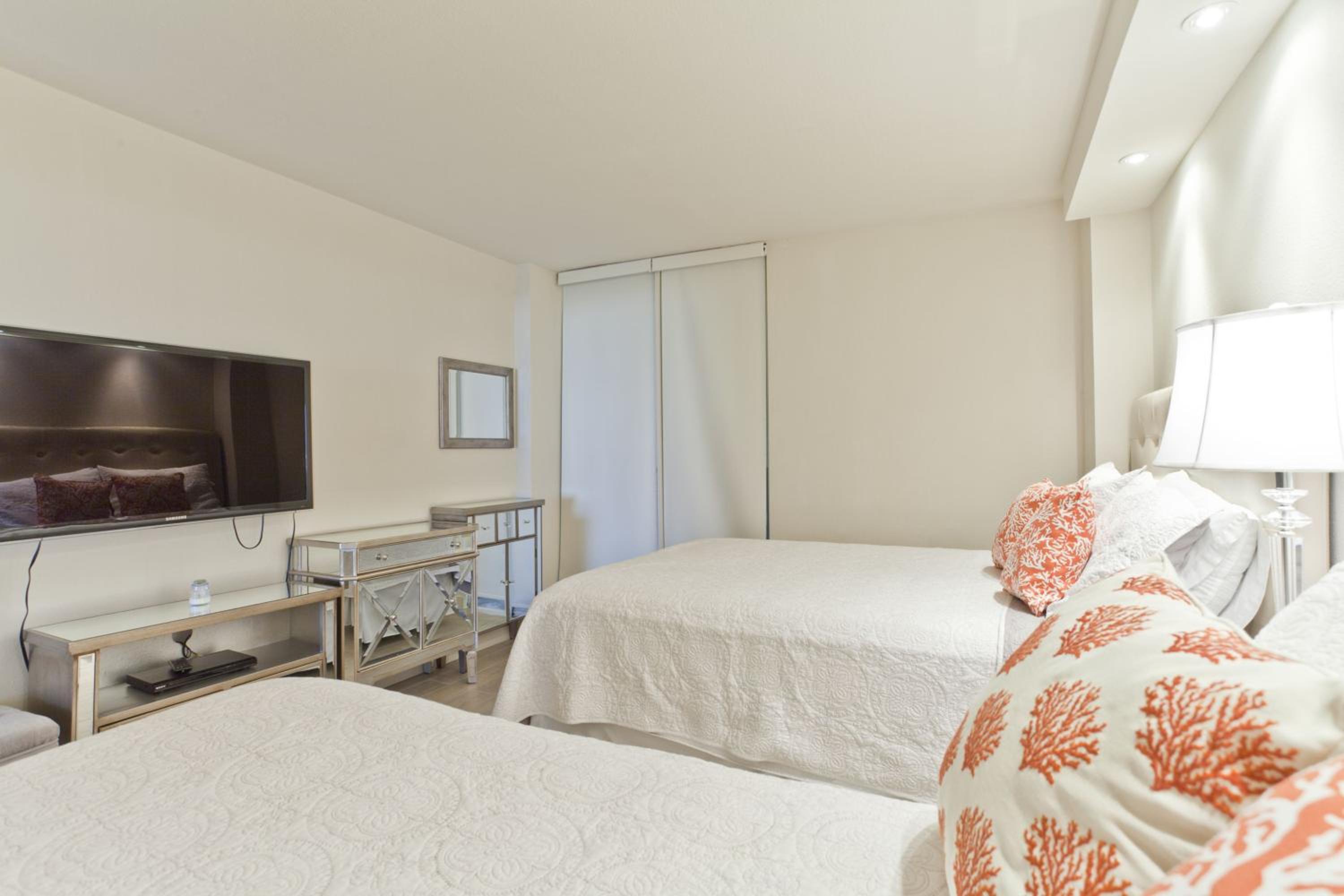 The mattresses were uncomfortable. Furniture upholstery needs to be cleaned. The hallway bathroom was clean but the toilet would not flush and I called management and the problem was resolved the next day, so we appreciated that. A few of the outlets were not working near the living area near the TV. I would recommend the property management should do thorough walk through to insure things are working properly in between rentals.