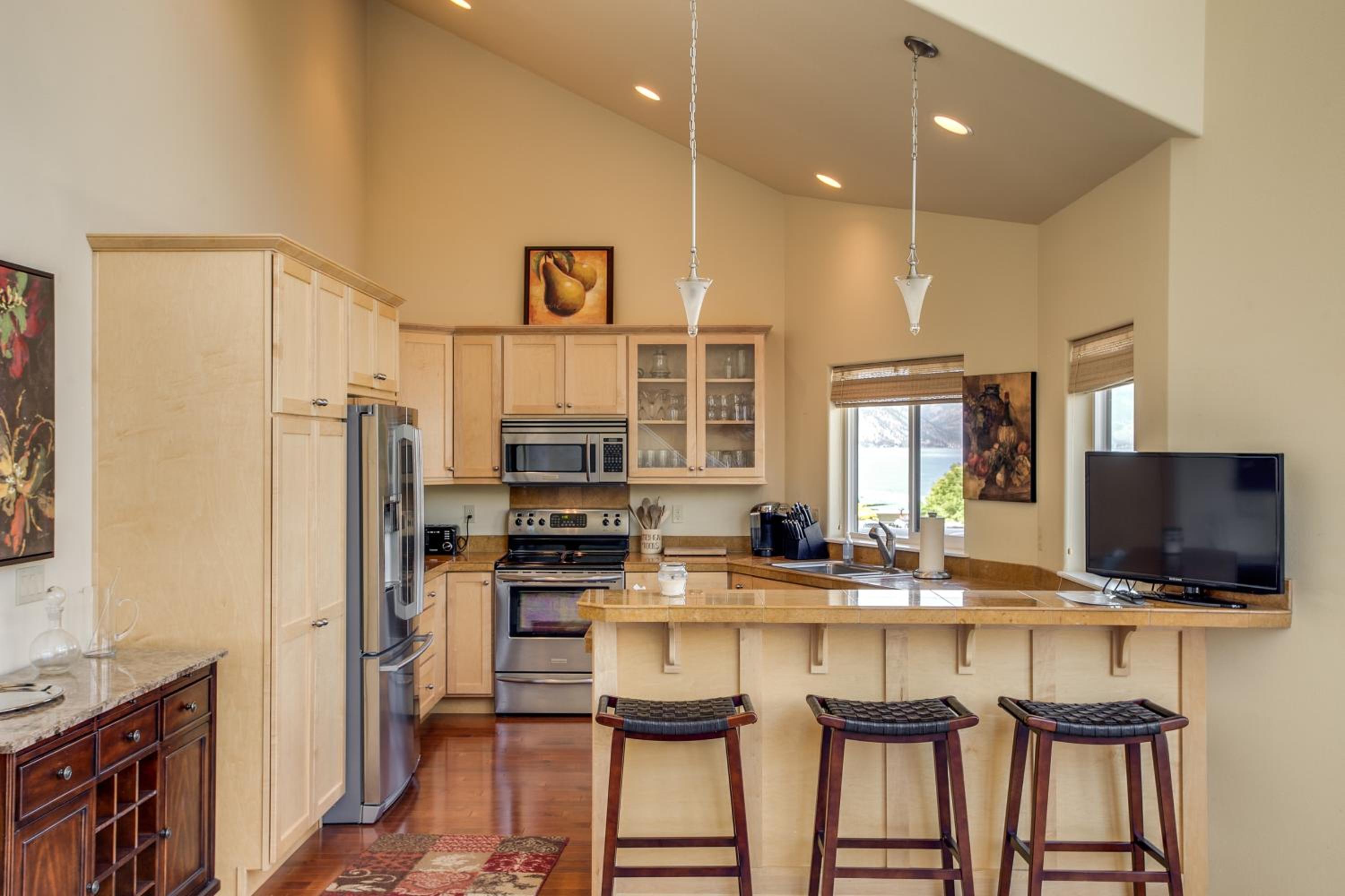 With a fully equipped kitchen, hot tub, and laundry service provided, your stay at Chelan Resort Waterfront Townhouse promises both convenience and comfort.