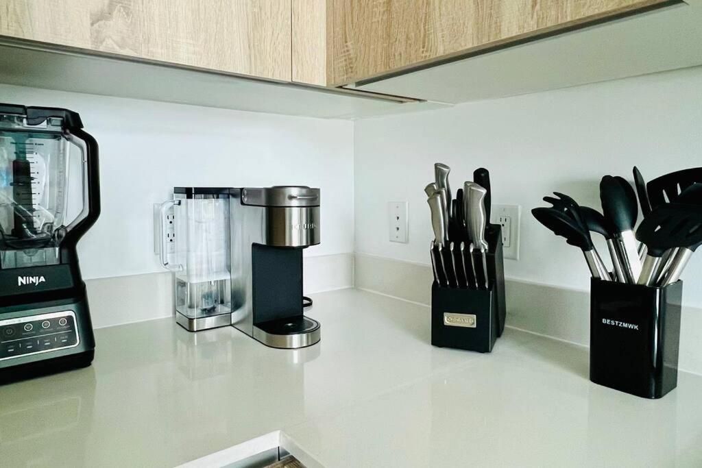 Modern Comforts: With 2 bedrooms, fully equipped kitchen, hot tub, and more, this sleek condo offers a comfortable stay in the heart of Miami.