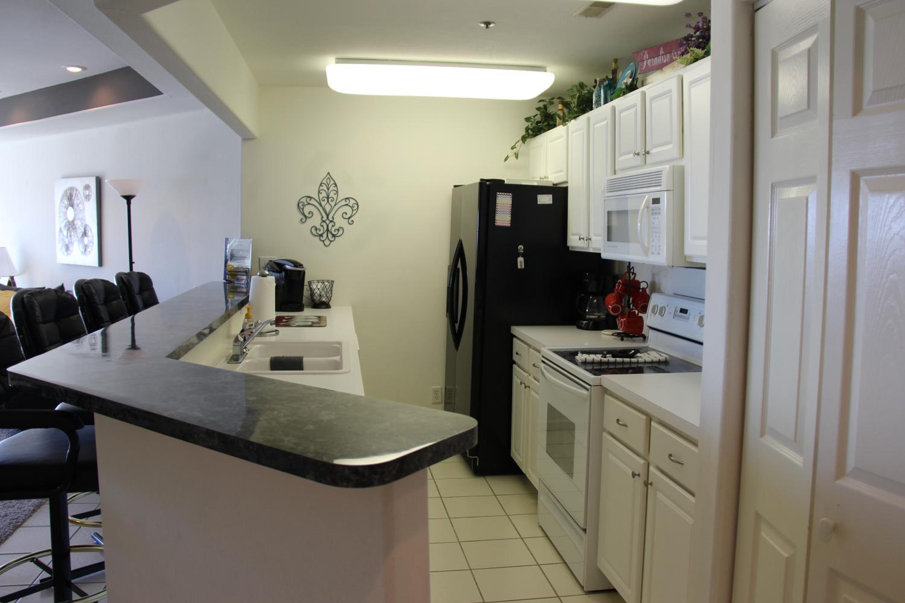 Great condo! Great view of the lake. Everything in the condo worked as you would hope. Kitchen was well equipped. Kids had fun in the pool. It was close to a lot of fun attractions.
