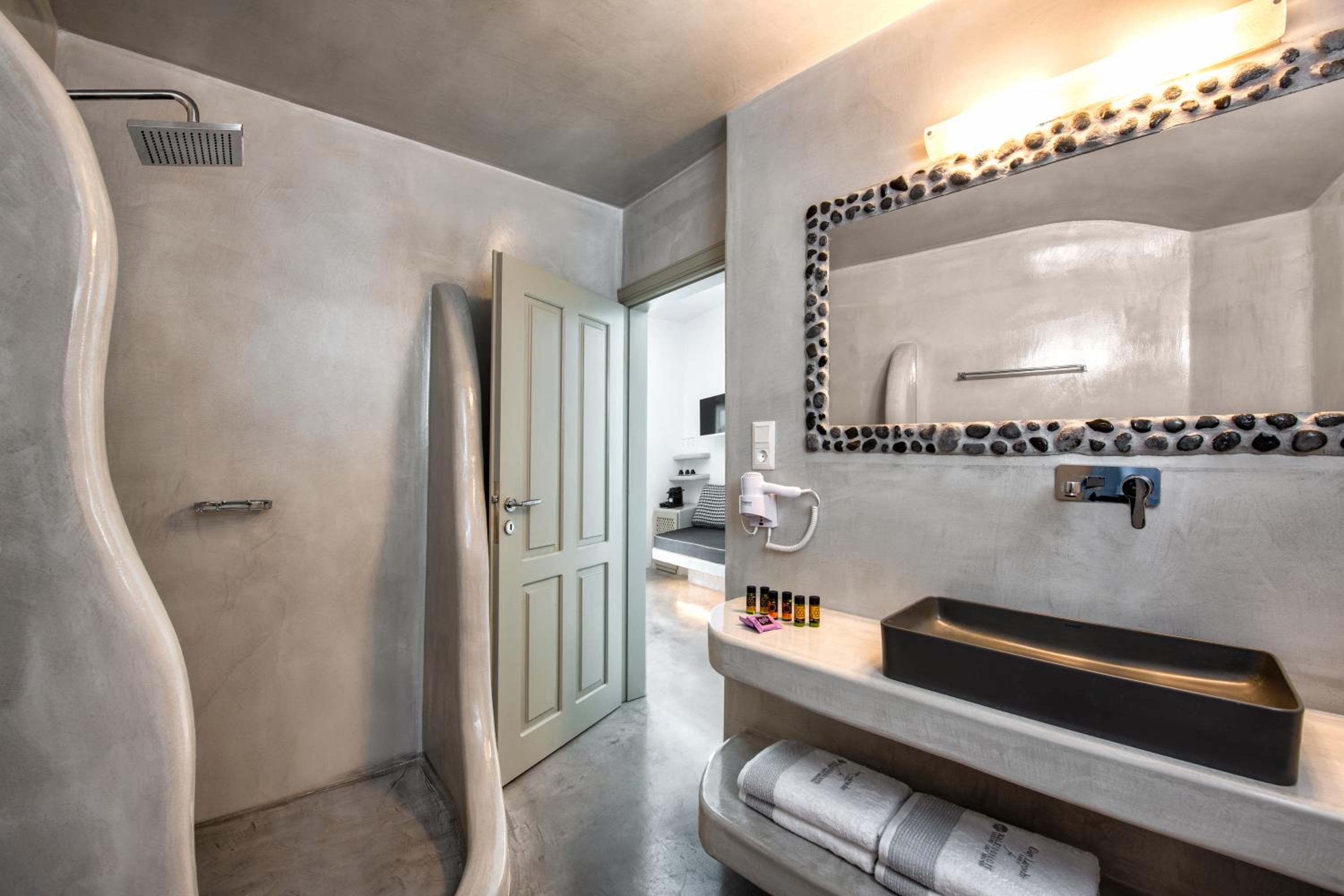 Our room was in a great location, just down from the main walkway in Oia. The entrance to our room was from a lower, less traveled walkway, which gave our room extra privacy. Our terrace was completely private and had amazing views. The room was very spacious and had good in-room amenities.