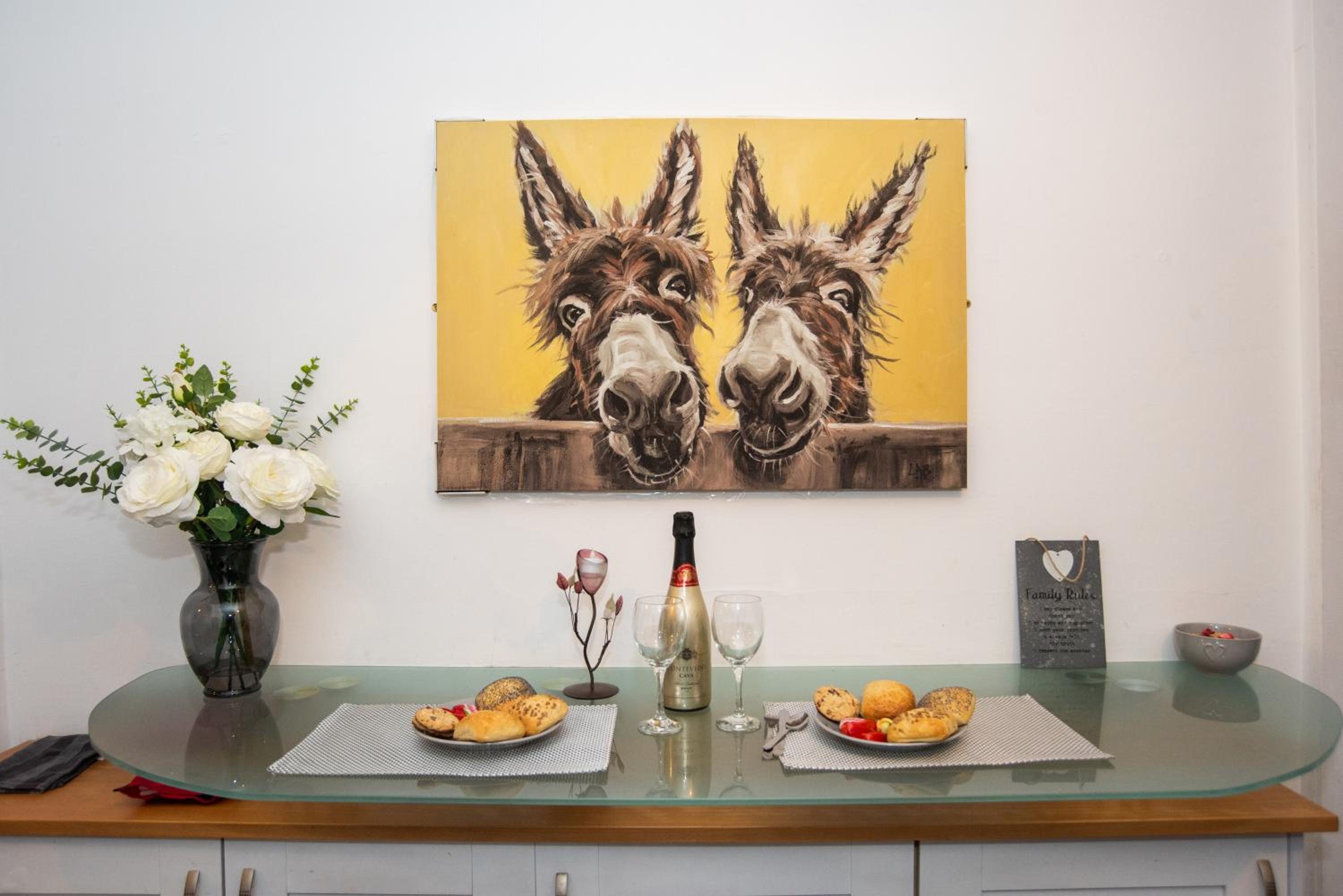 Alarm bells should have rung when we found only 3 mugs & a shortage of glasses. Worst was that every plate was dirty with enncrusted food. One bedroom smelt (of damp or animals?) and had to be aired before use, & there were issues with damp towels.