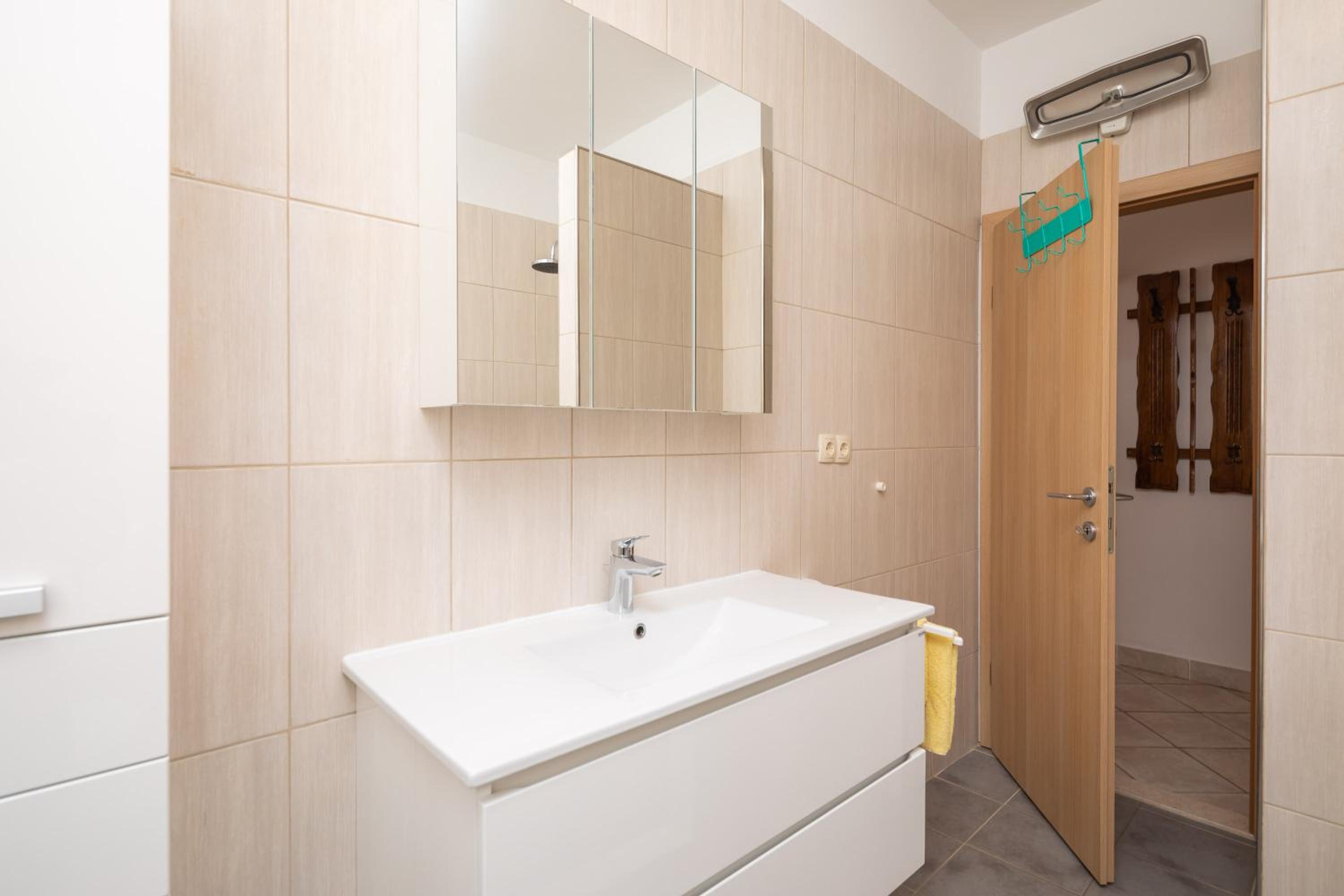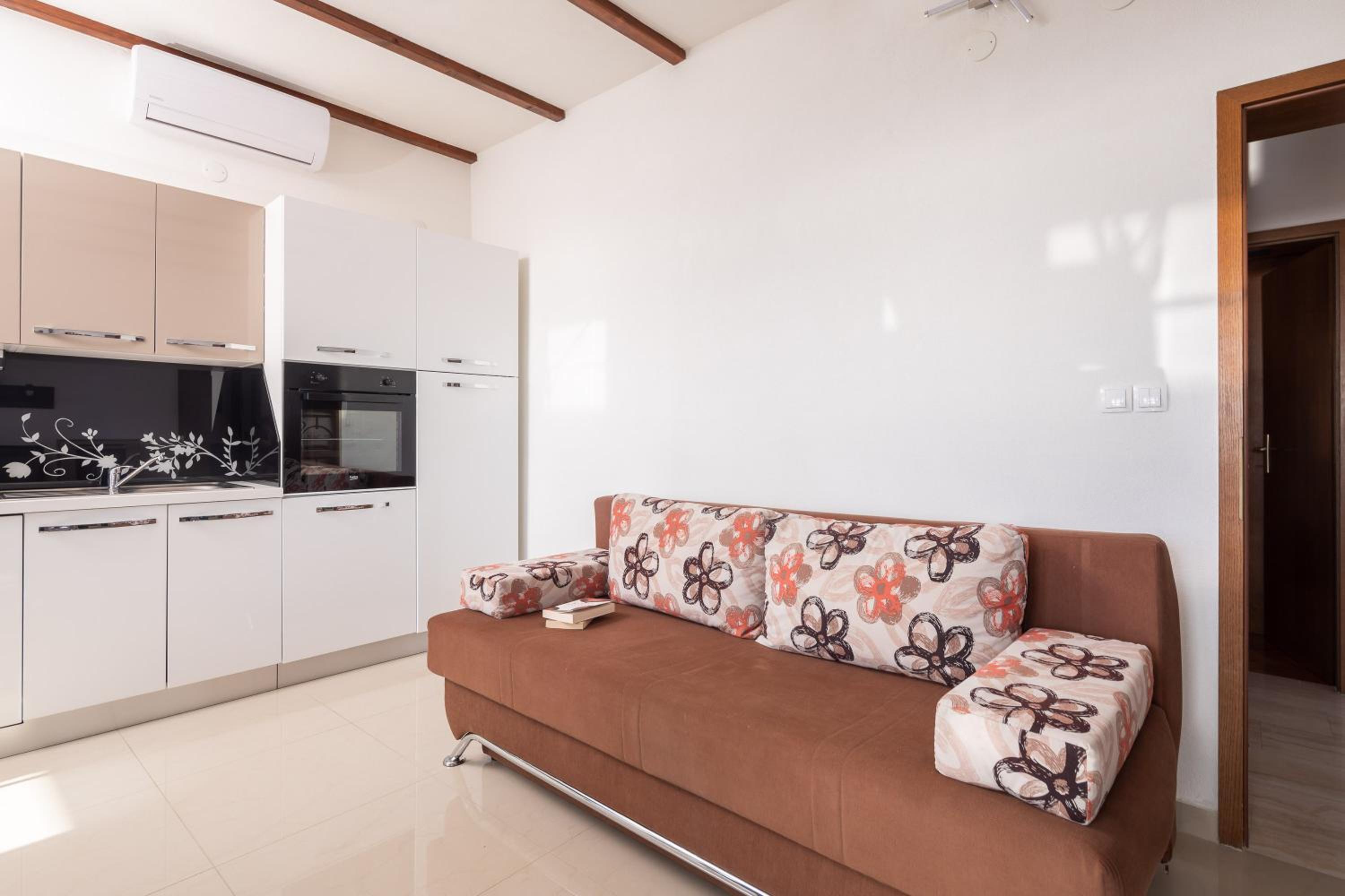 A wonderful place for a vacation! My friends and I were absolutely satisfied with the apartment, its location, and the hospitality of the hosts. Each room has air conditioning. There are two bathrooms—one with a bathtub and the other with a shower. In the morning, you can enjoy your coffee on the terrace with a beautiful view of the sea. In the evening, have dinner while watching the sunset over the Adriatic Sea.