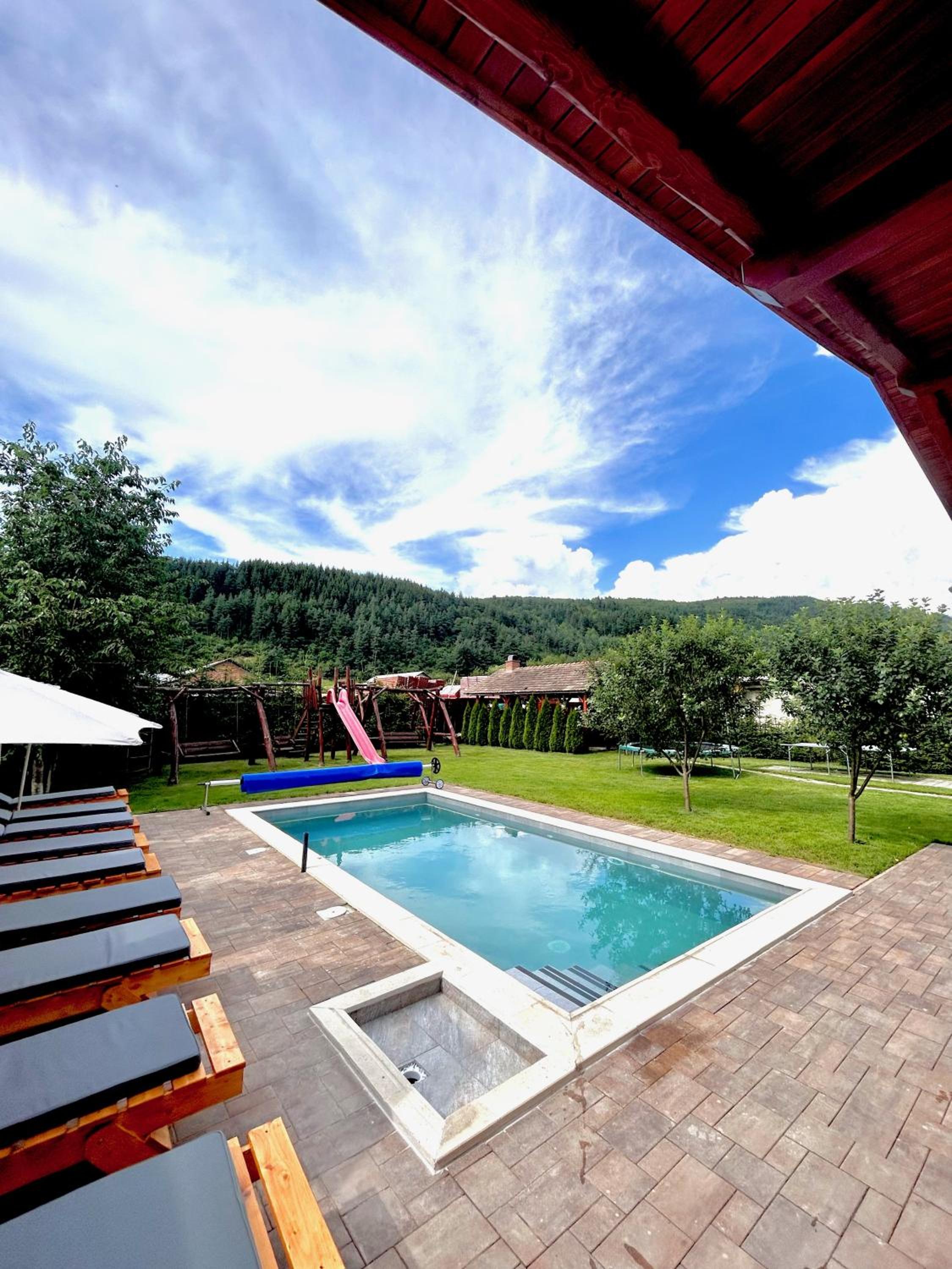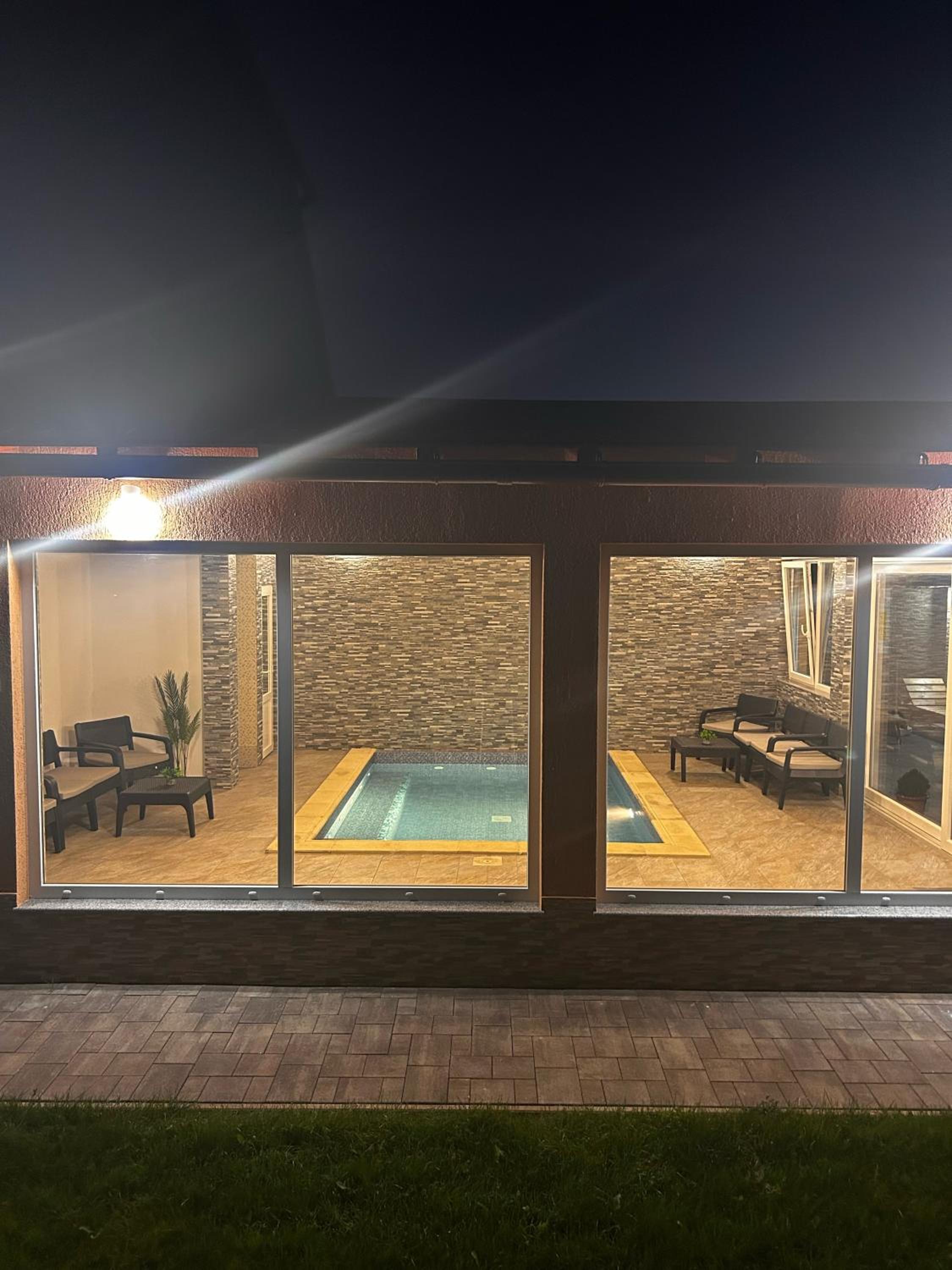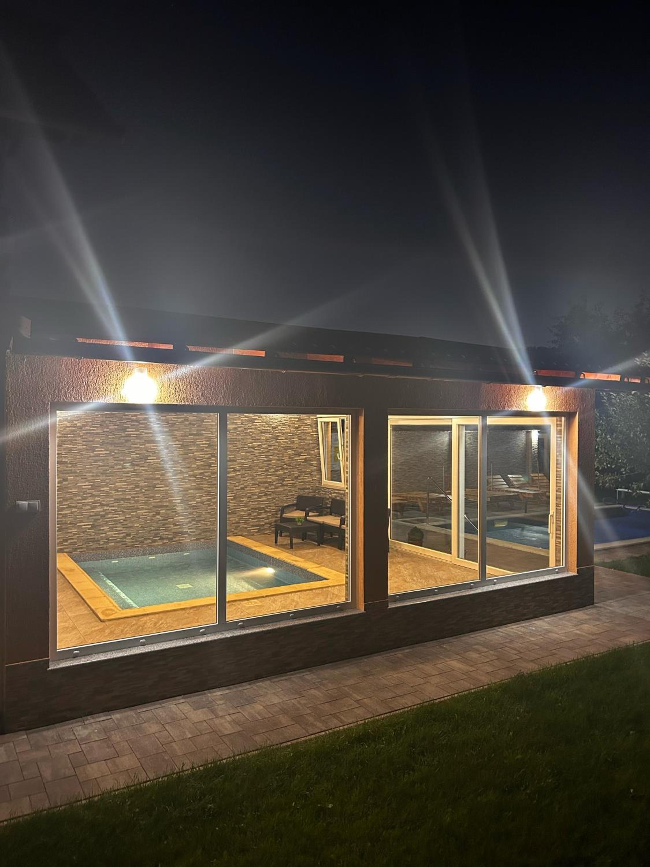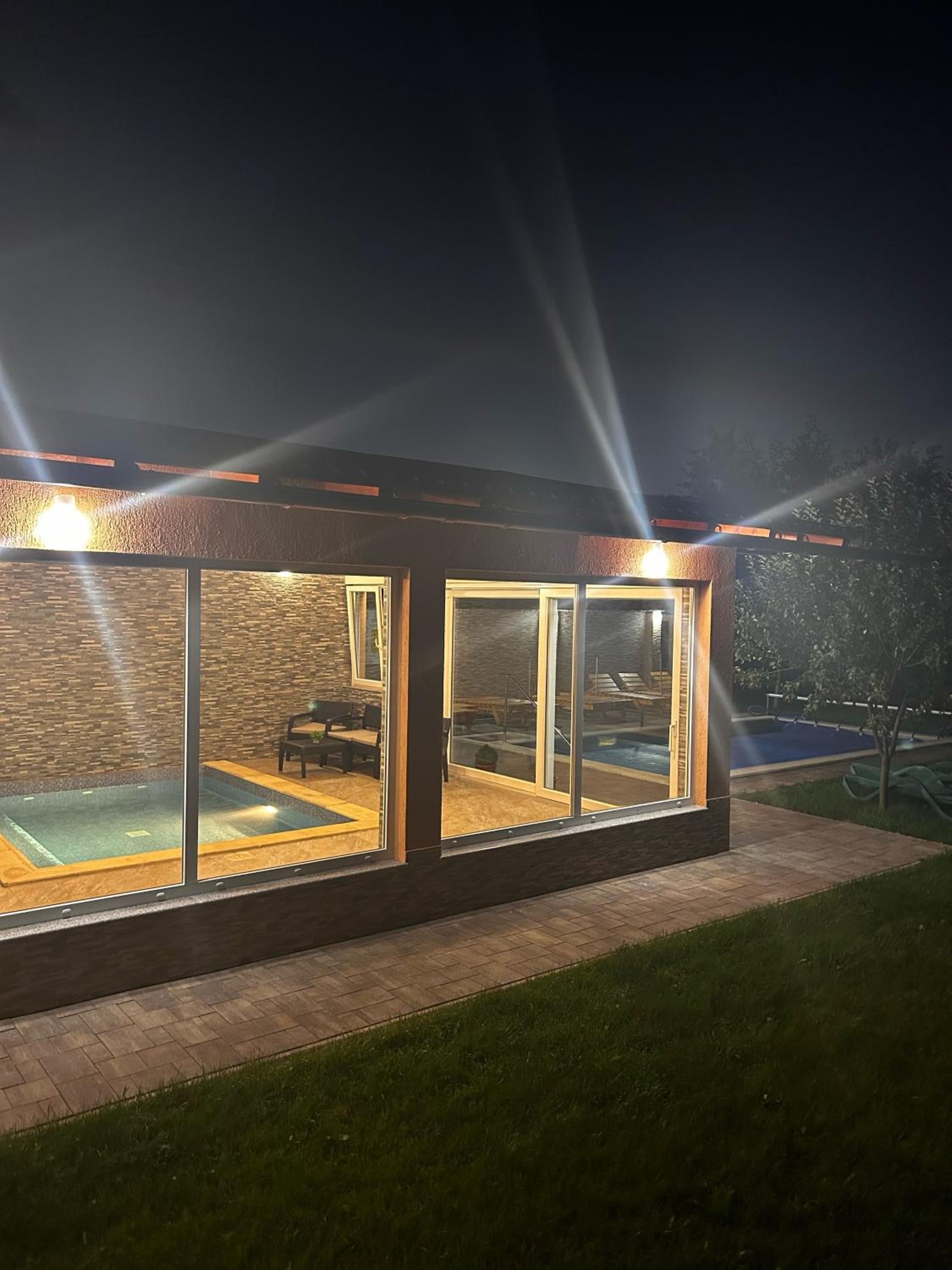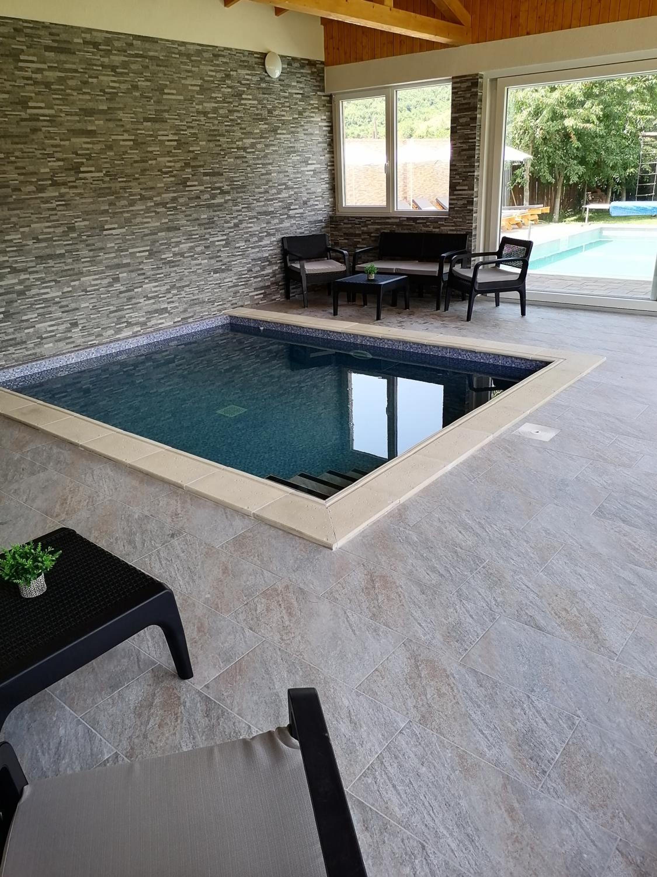 Piscina este încălzită. Doua bazine,unul interior,altul exterior,te simți că la spa. Curate și amenajate cu gust.