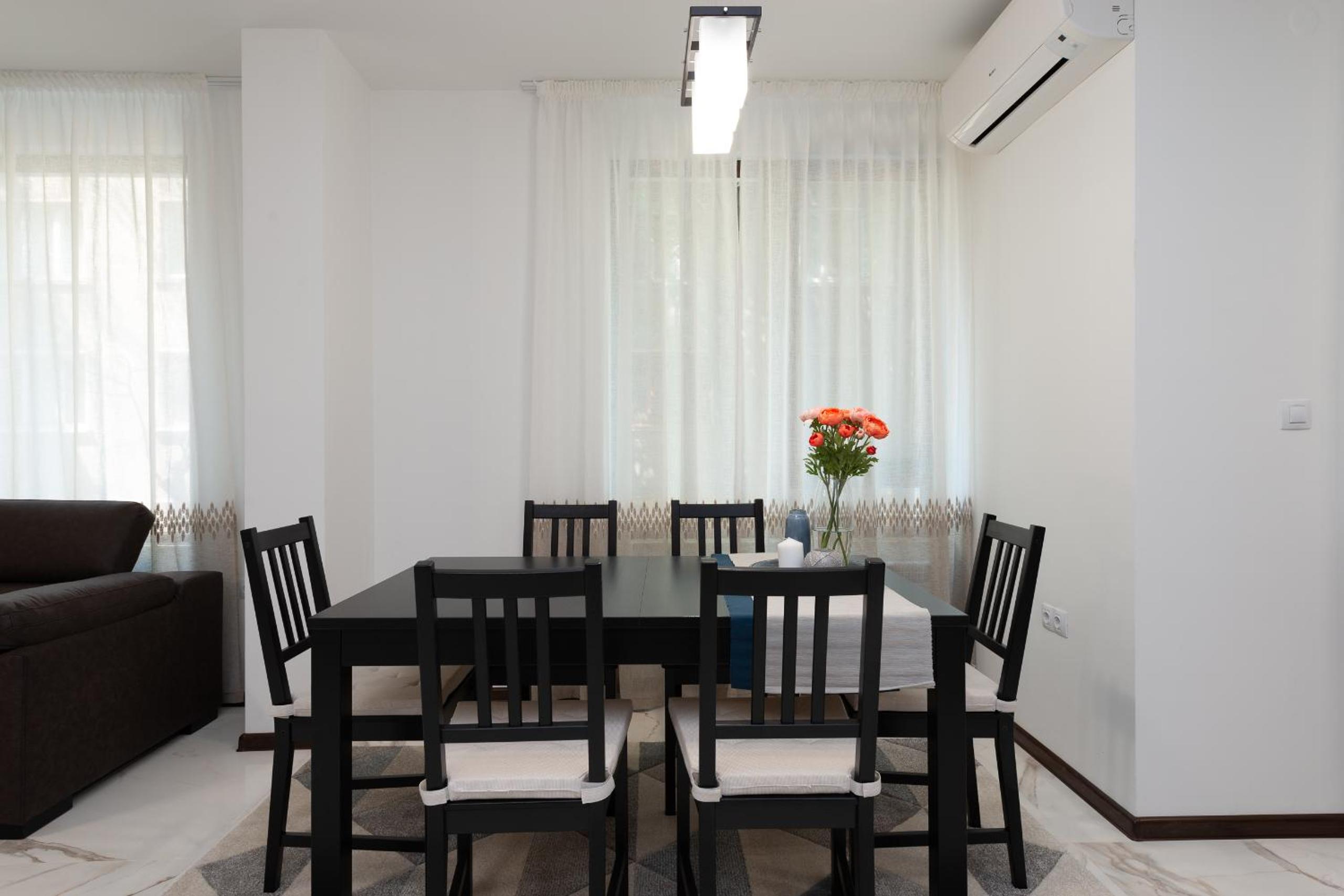 Tesis merkez konumda her tarafa metro durağı serdika istasyonuna yakın mesafede olduğundan ulaşım çok rahat ayrıca turistik yerlerin ve şehrin tam göbeyi sayılır. Kış mevsiminde konakladım ısıtması doğal gazlı ve iyi daire konforlu. Eviniz gibi tüm olanaklar ve araç gerec var .birdaha gelişimde tereddütsüz yine kalırım. Daire temiz ev sahibi ilgili ve yardım sever. Sadece, ufak bi ayrıntı var küvet gözukuyor idi tanıtım fotosunda odada sadece duş imkanı vardı