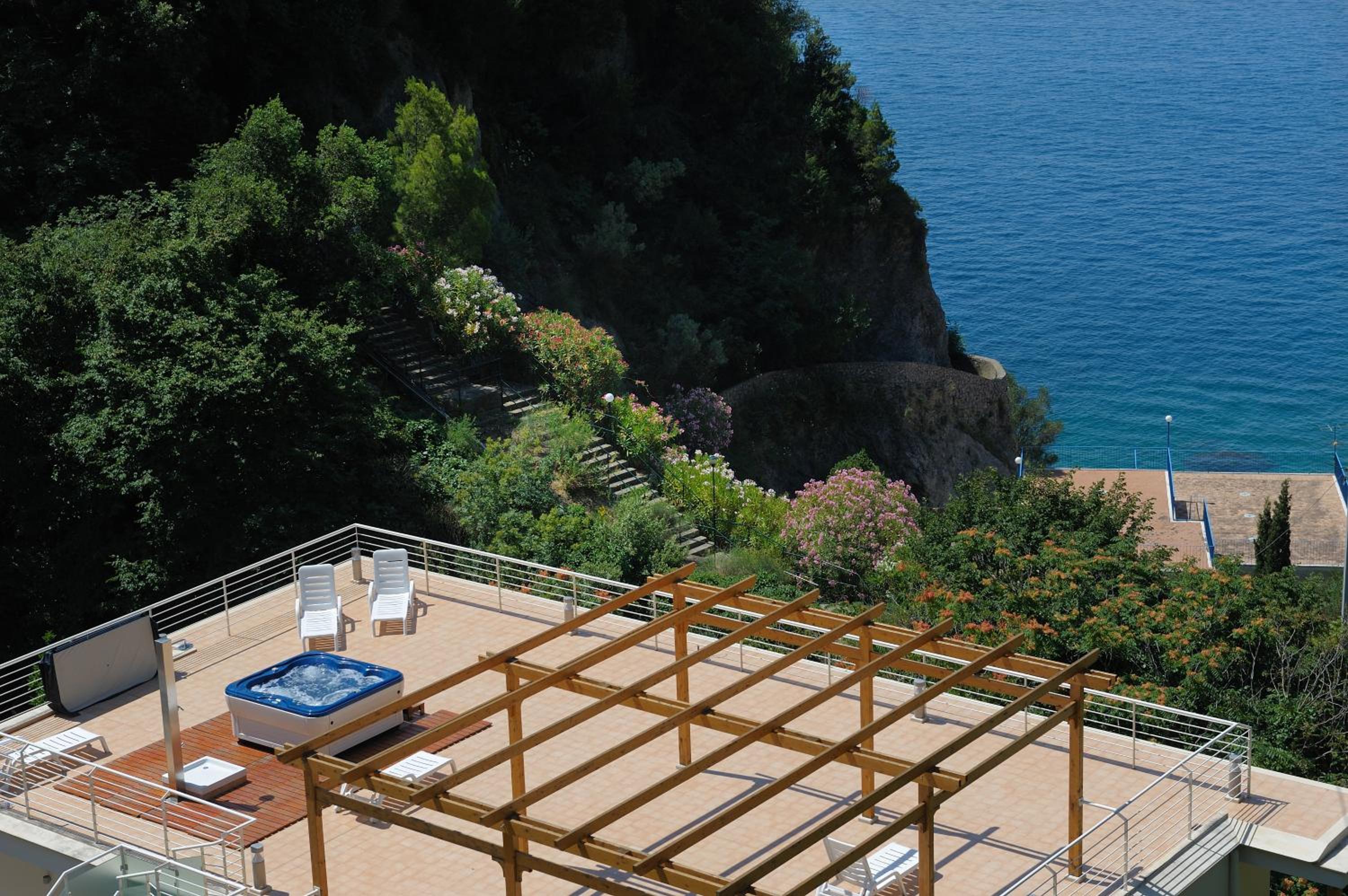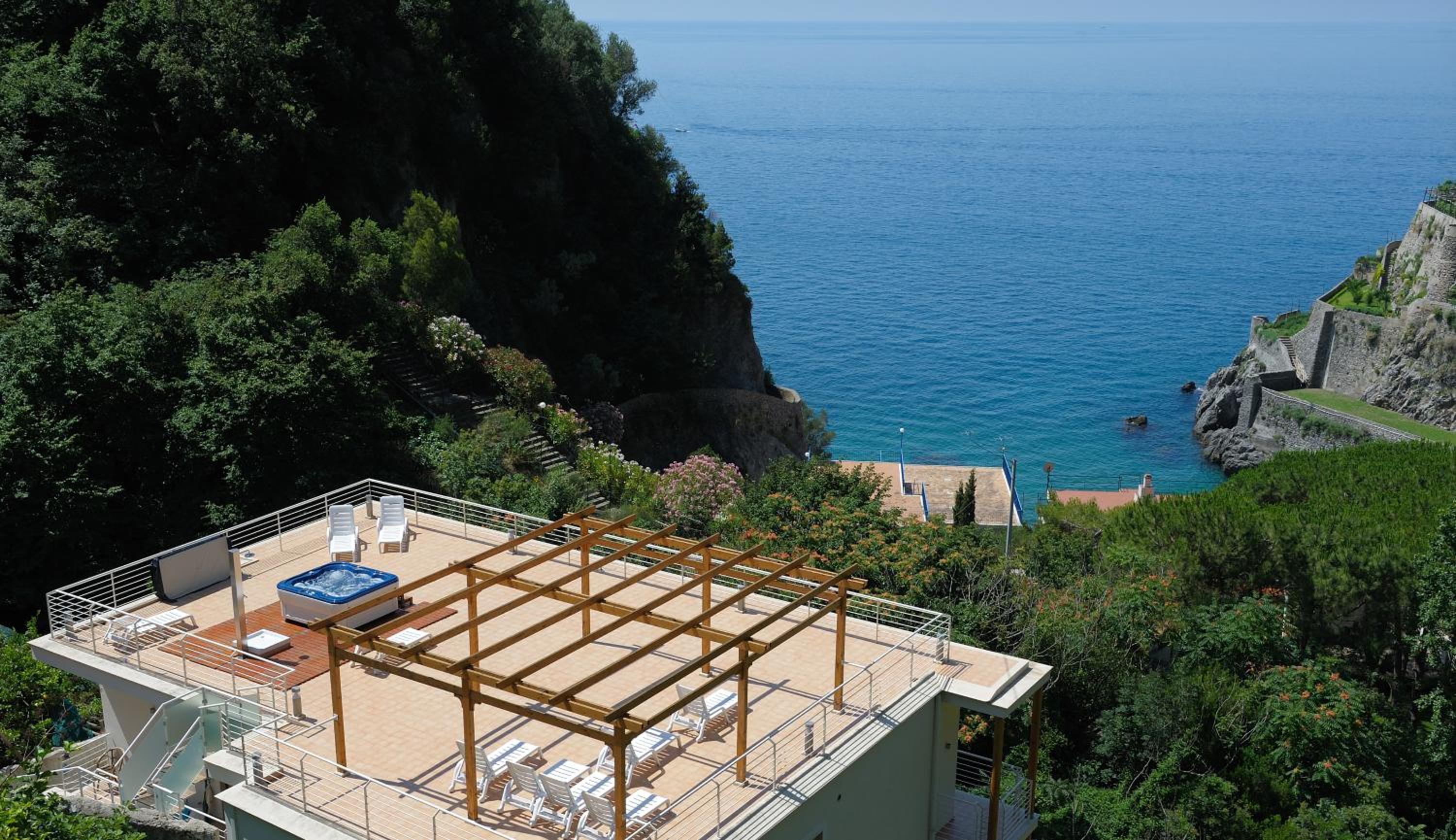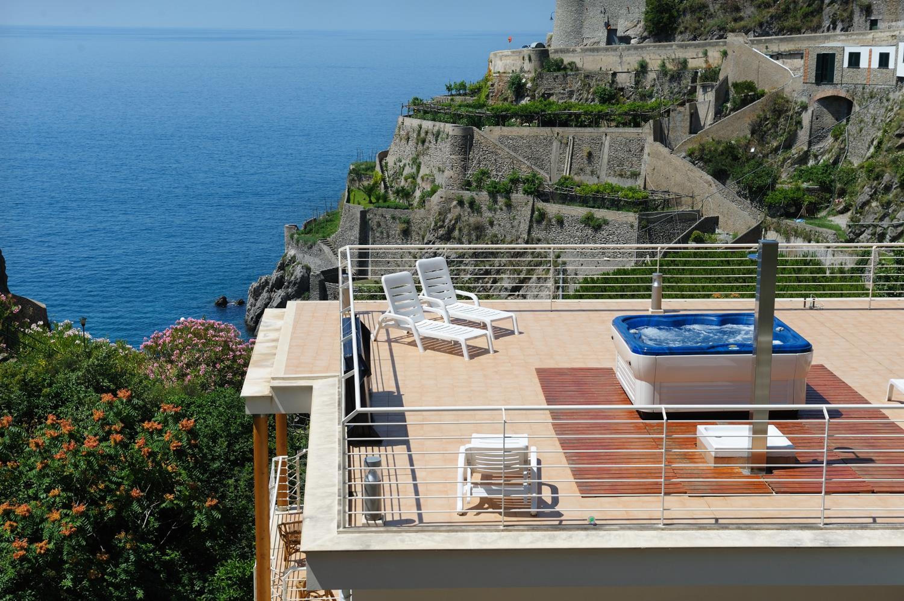 La Dolce Vita presents modern apartments in Maiori, offering direct sea access and proximity to the Amalfi Coast road. Enjoy the convenience and luxury of a sea-view terrace with a free-standing hot tub.