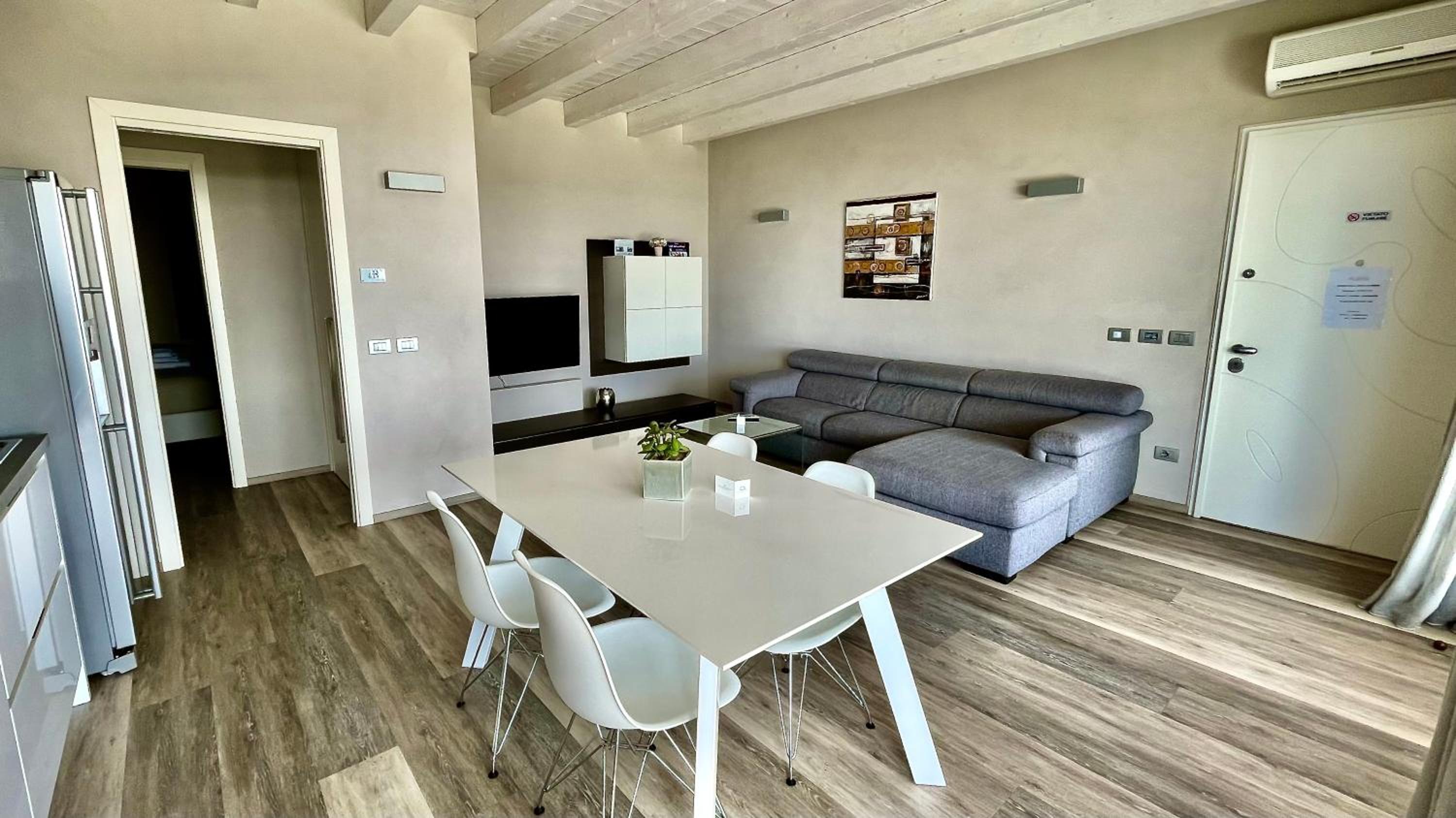 What a fabulous apartment. We stayed with our teenage children for 5 nights and have had an excellent time. Sonia was very kind and helpful. We drove from the Uk so we had our car the whole time which we loved. It’s not in a busy part of the lake which suited us well. 8 apartments here so we often had the pool to ourselves. We’d love to go back. Comfortable beds and bedding too which is a definite plus.