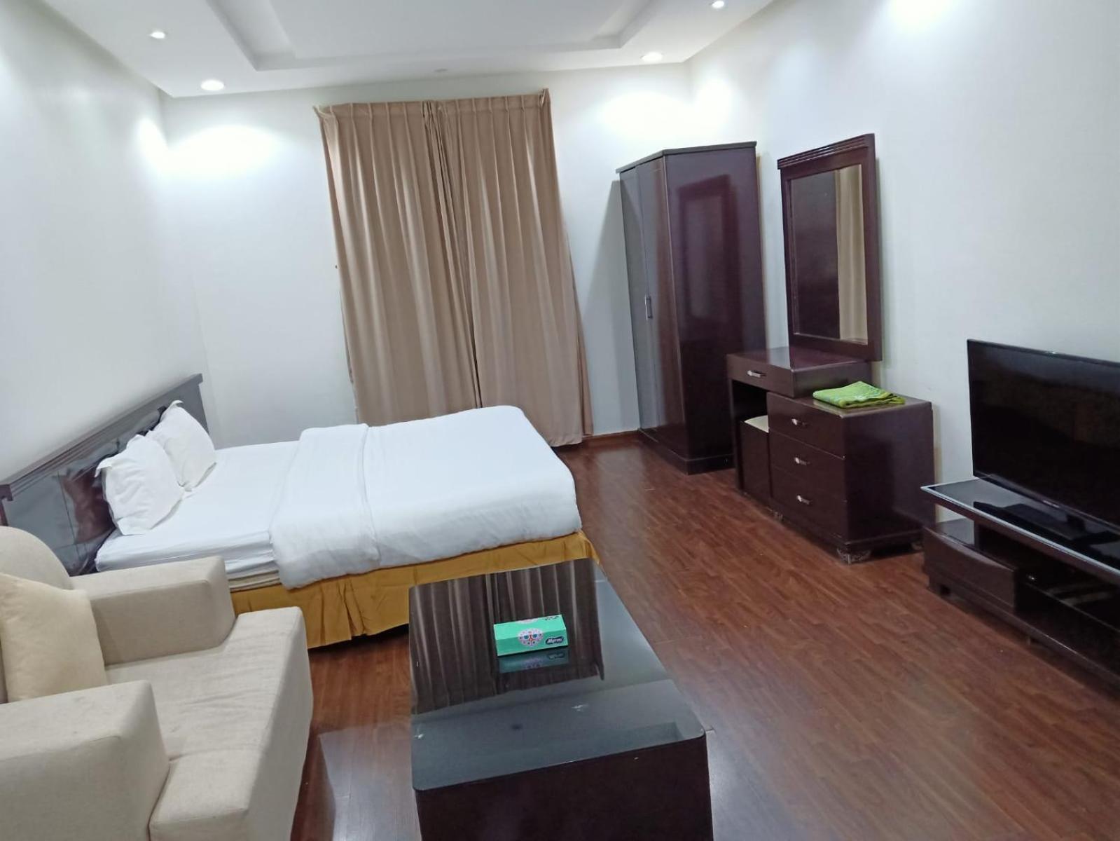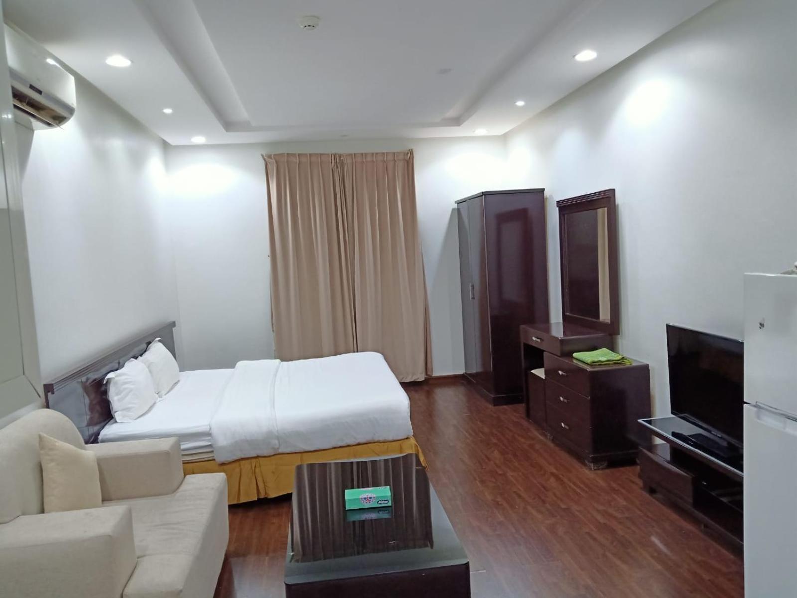 Evan Suites Serviced Apartments offers convenient accommodation near Riyadh Park, with a fitness room, restaurant, and free WiFi. Family-Friendly Amenities include spacious rooms with balconies and flat-screen TVs. Convenience at Your Fingertips with a coffee shop, grocery delivery, and minimarket. Relax and Unwind in the shared lounge after exploring nearby malls and attractions. Book now for a comfortable stay in Riyadh!