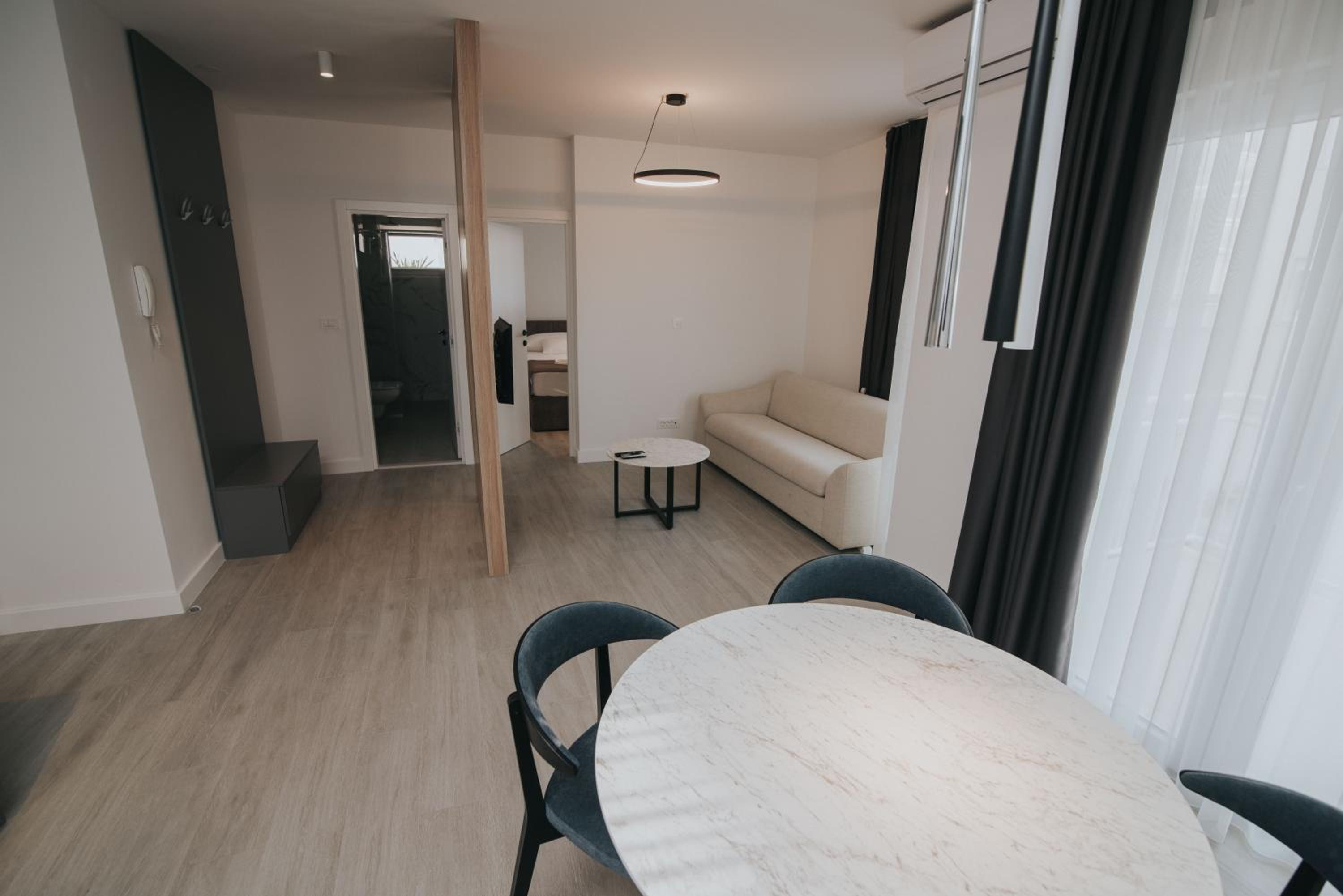 Sehr gute Lage, direkt am Wasser. Wir hatten seitlichen Meerblick, das Apartment war sauber und gut ausgestattet. Das Frühstück war super, alles was man braucht und die beiden Bedienungen waren immer sehr freundlich.Es gibt auch einen schönen Pool , aber wir sind lieber im Meer geschwommen. Es gibt gleich einen Supermarkt und ein tolles Restaurant um die Ecke.