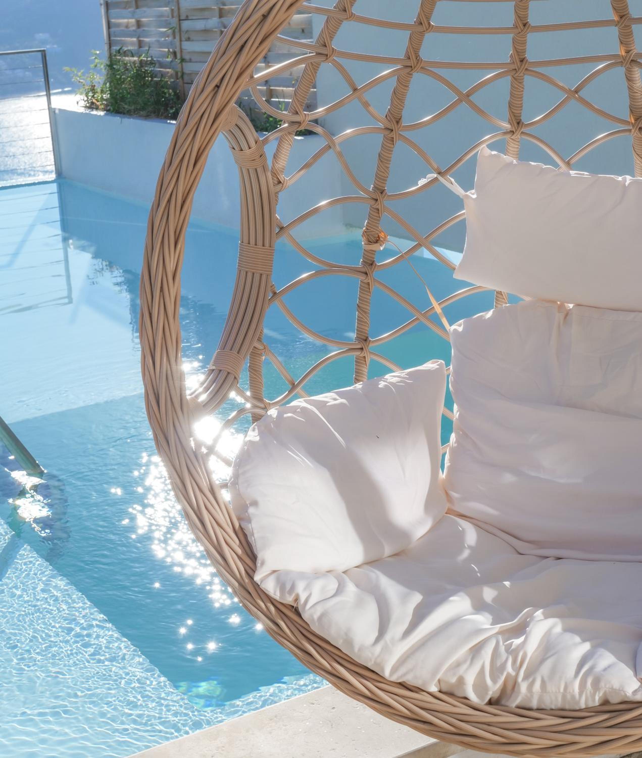 Infinity Pool, Garden, and Terrace: Relax and unwind by our infinity pool overlooking the sea, surrounded by lush gardens and a spacious terrace.