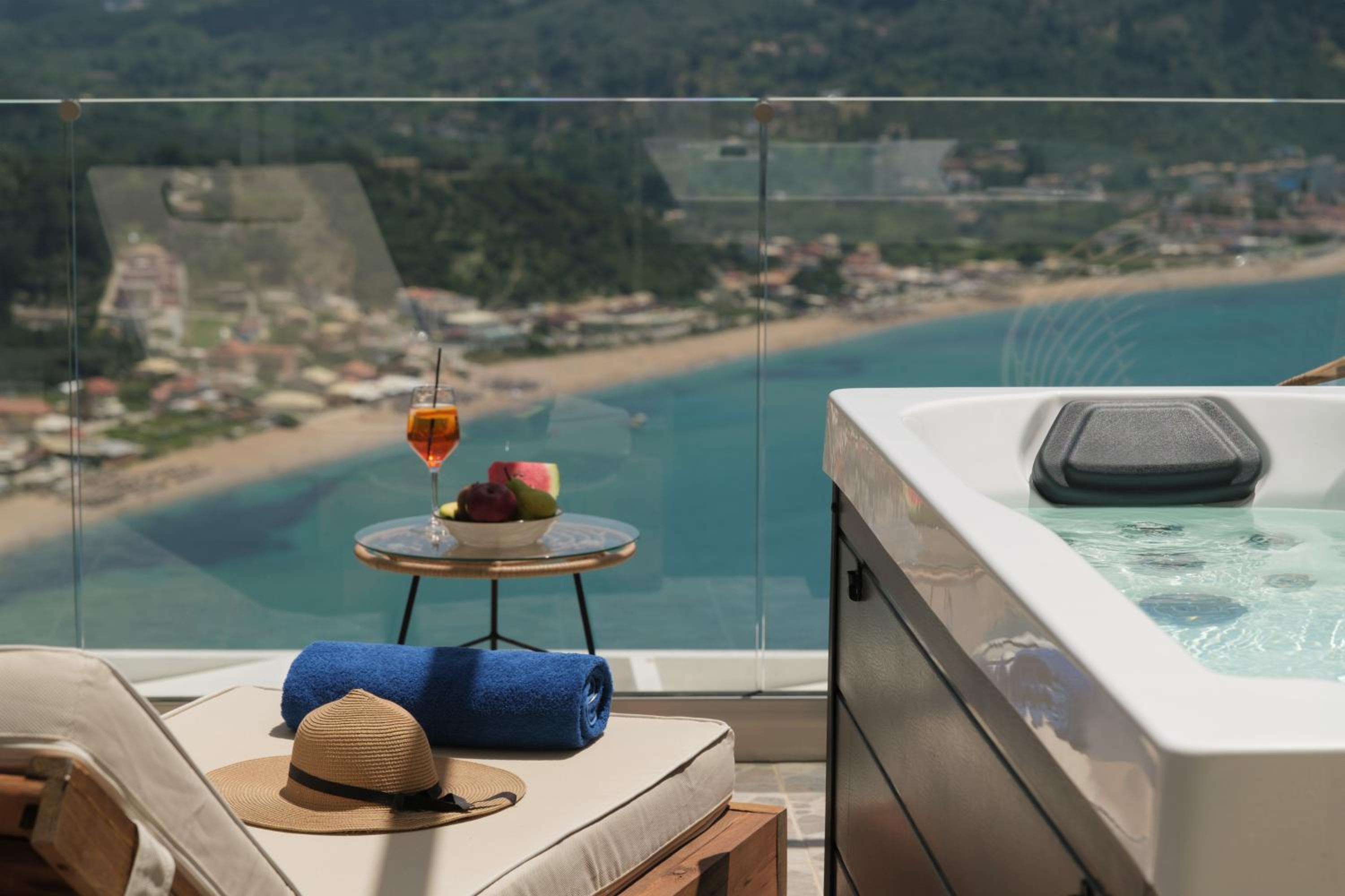 Das Zeus Throne Resort ist ein Familienbetrieb, in dem ich mich auch als Alleinreisende sehr wohl gefühlt habe. Das Personal war freundlich, herzlich und immer hilfsbereit, wenn man einen Wunsch oder eine Frage hatte. Der Transfer von und nach Korfu-Stadt hat auch reibungslos geklappt. Mein kleines Apartment war modern und sauber, zur Begrüßung war der Kühlschrank sogar mit einer Getränkeauswahl inklusive Wein und Schokolade „aufs Haus“ gefüllt. Das Allerbeste war jedoch der spektakuläre Ausblick auf die Bucht von St. George. Vom Bett aus konnte ich direkt den Sonnenaufgang über der Bucht beobachten. Wenn ich nachmittags oder abends von einem Ausflug kam, konnte ich den Tag entspannt im Whirlpool mit Meerblick ausklingen lassen. Auch das Frühstück war sehr frisch und schmackhaft, zur Wahl standen Omelettes, frische Säfte, Pancakes, Joghurt mit Obst und mehr. Dabei konnte ich den wunderbaren Ausblick von der Terrasse genießen, die von einem schönen Garten umgeben ist. Afionas ist ein süßes kleines Örtchen, in dem es viel Gastronomie zur Auswahl gibt, wobei ich auch das Hotelrestaurant empfehlen kann. Auch wenn das Autofahren auf Korfu durchaus anspruchsvoll sein kann, empfiehlt es sich, einen kleinen Mietwagen zu nehmen, der sogar direkt im Hotel gebucht werden kann, wenn man sich ein wenig in der Gegend umsehen will.