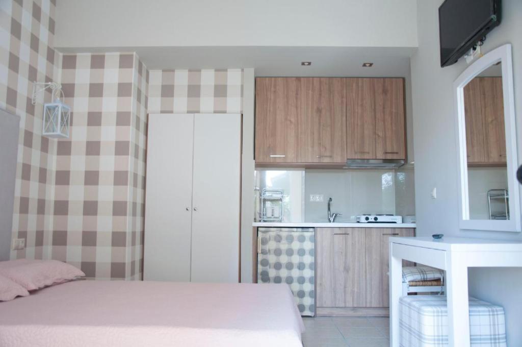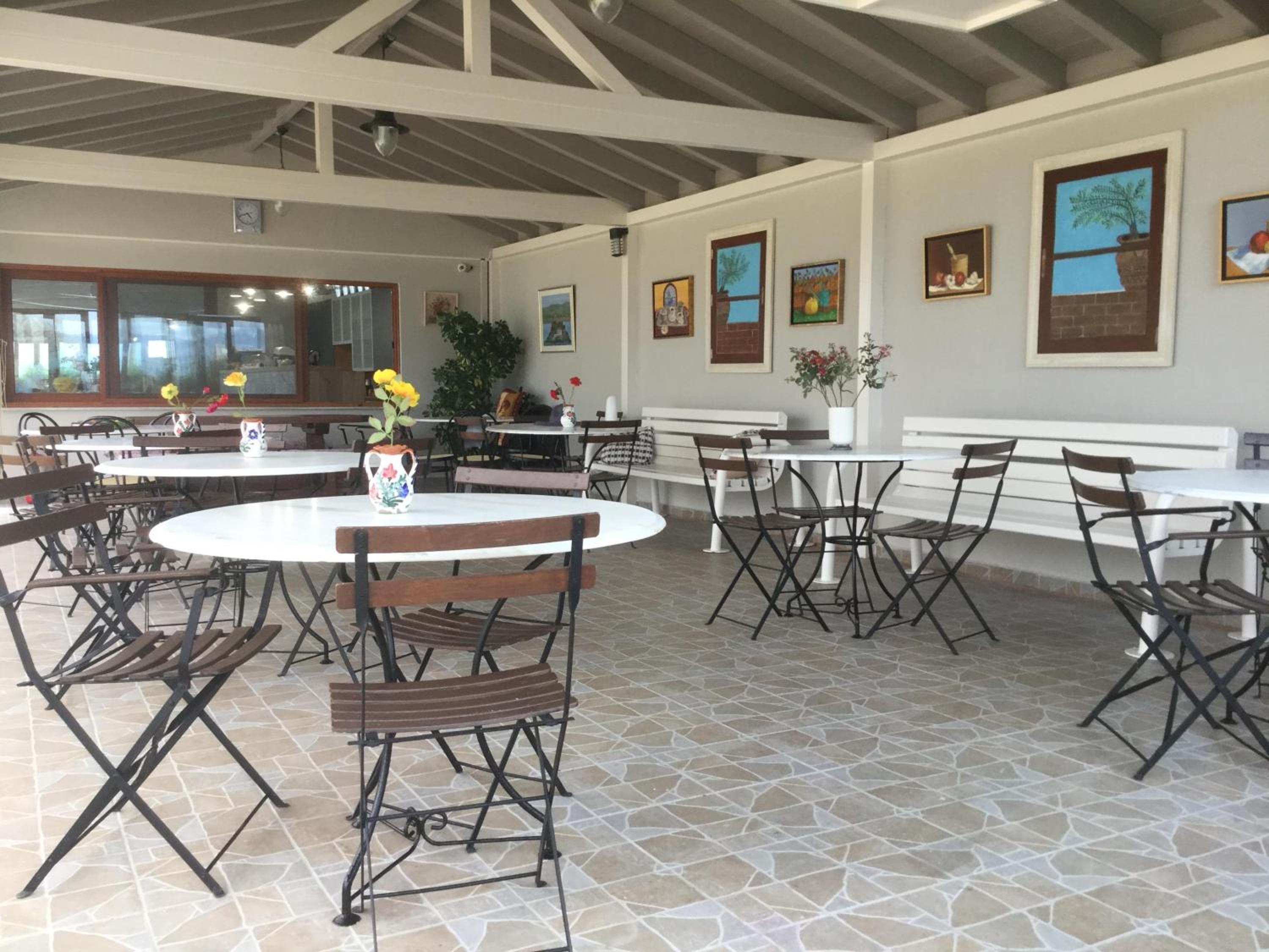 Guests can unwind at the bar with breakfast or local ouzo, while children splash in the swimming pool. Nearby amenities like taverns, cafes, and essential services make it a convenient choice for travelers.