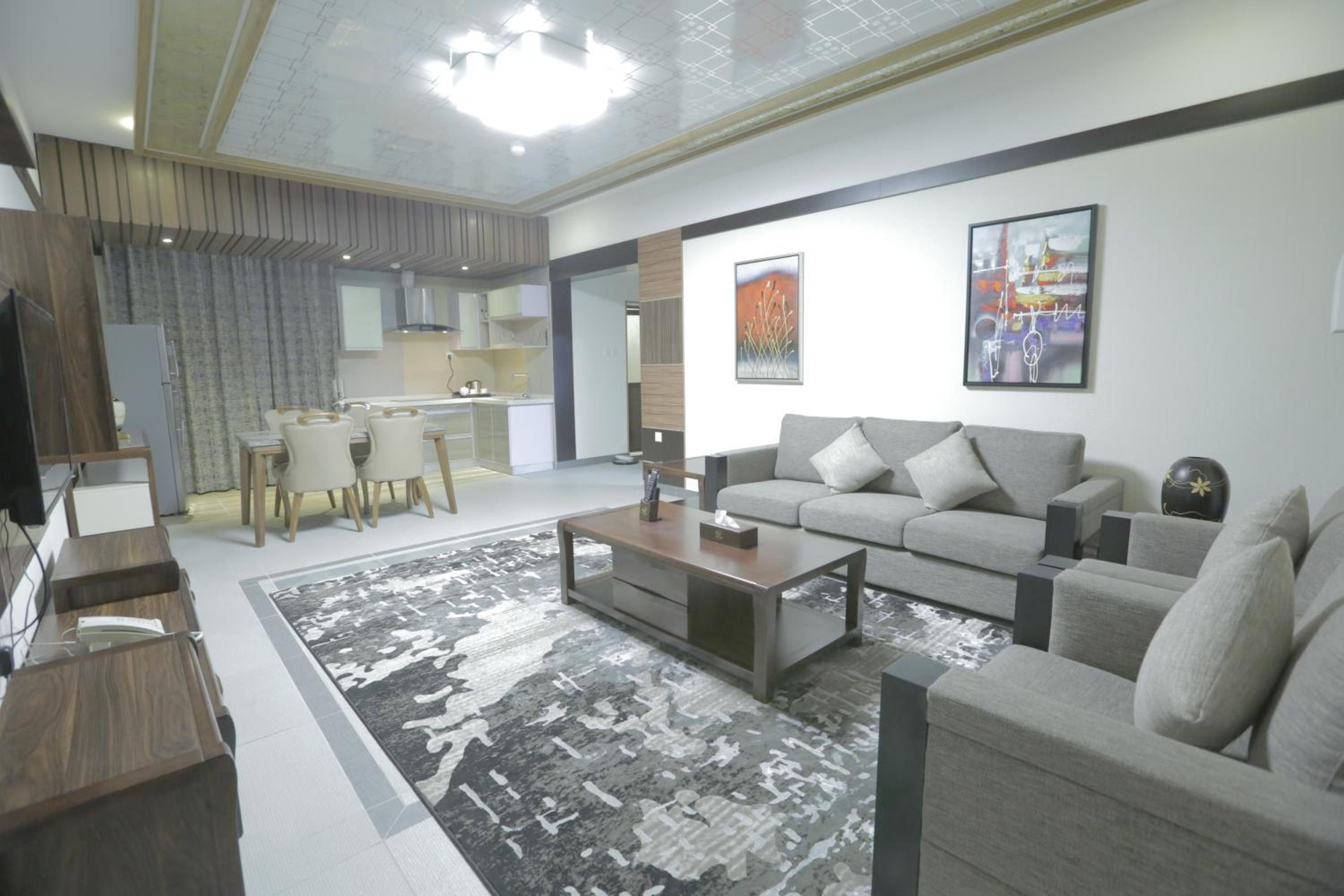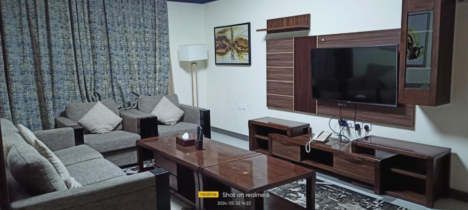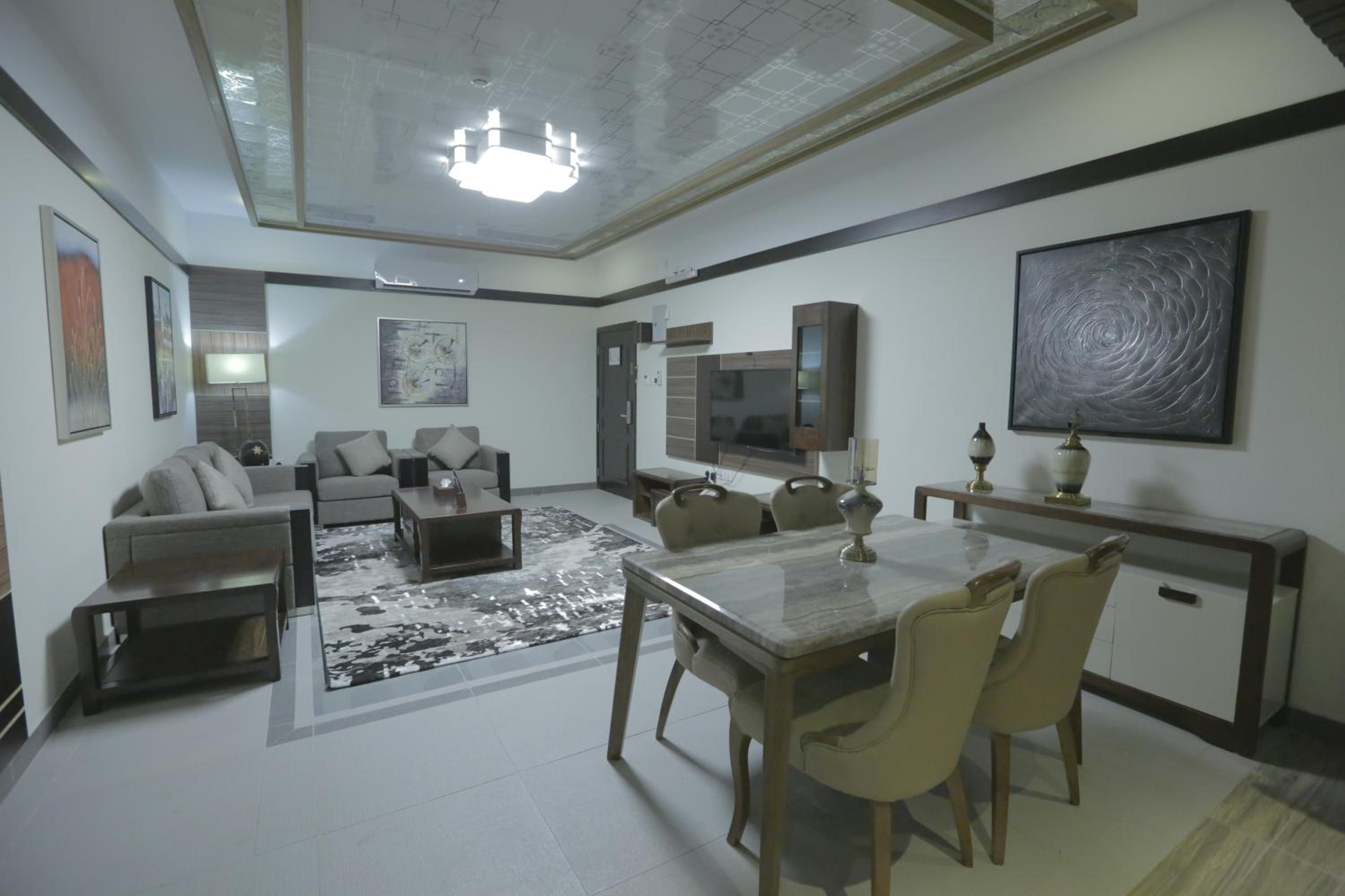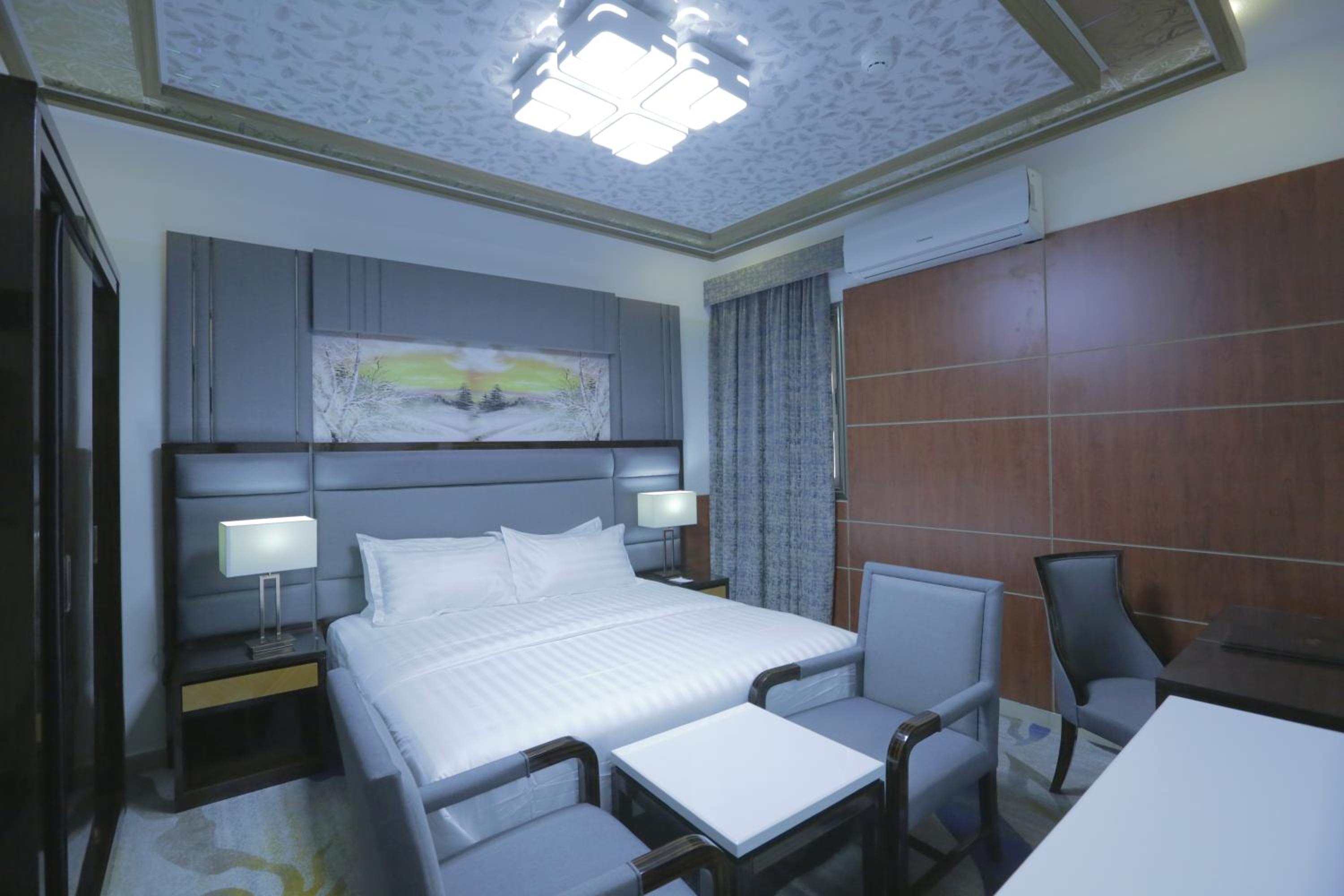 Niyaf Hotel Apartments in Khamis Mushayt offers air-conditioned units with modern amenities like a flat-screen TV, safety deposit box, and a private bathroom. The rooms are designed to be allergy-free and soundproof, ensuring a comfortable stay for all guests.