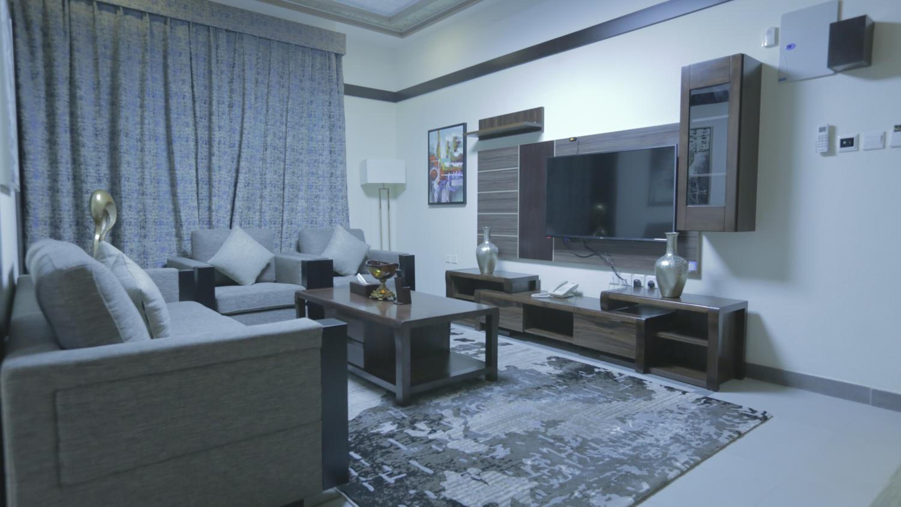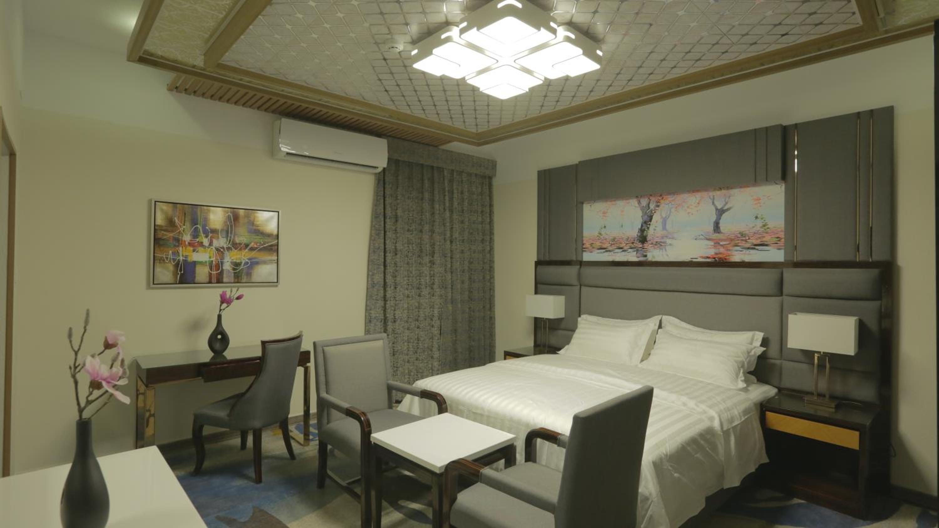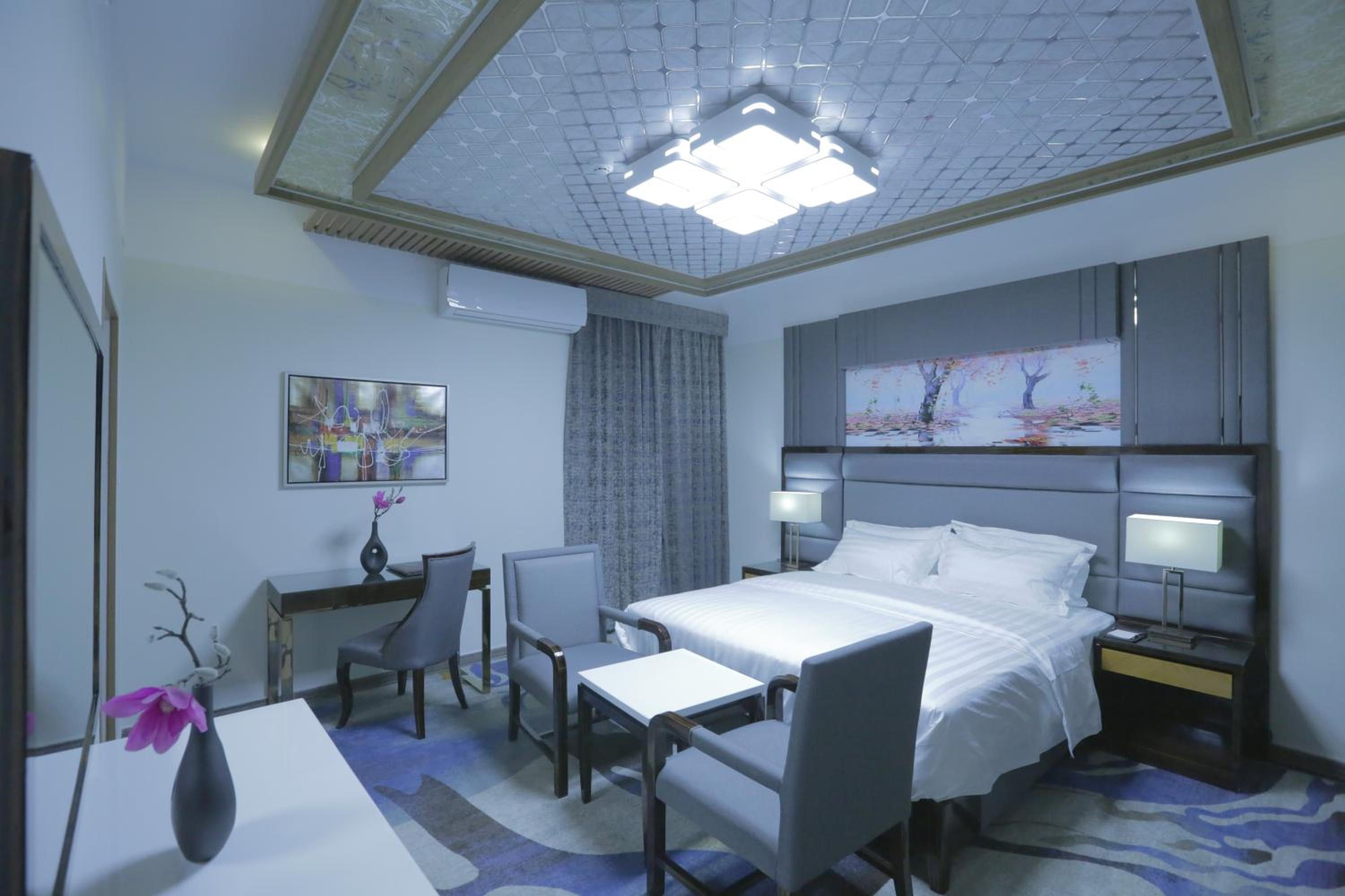 Niyaf Hotel Apartments in Khamis Mushayt offers air-conditioned units with modern amenities like a flat-screen TV, safety deposit box, and a private bathroom. The rooms are designed to be allergy-free and soundproof, ensuring a comfortable stay for all guests.