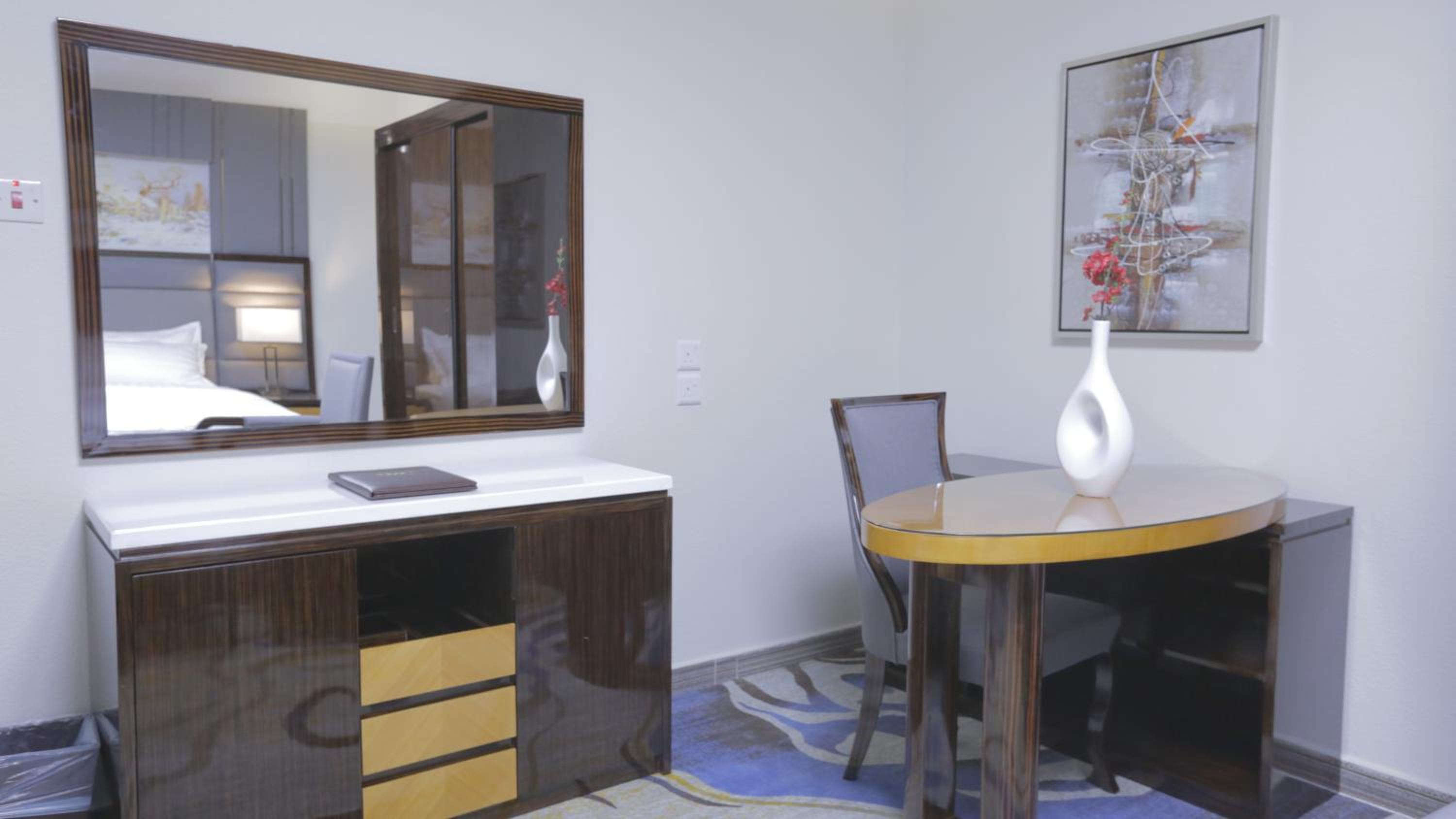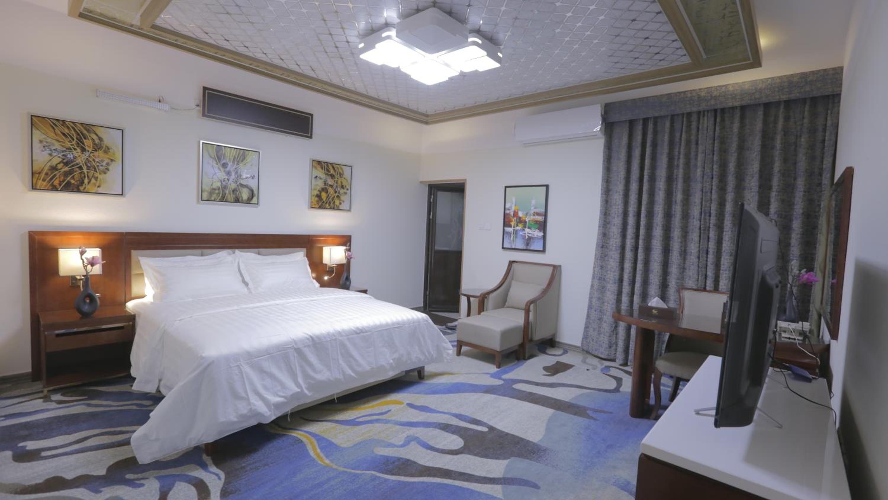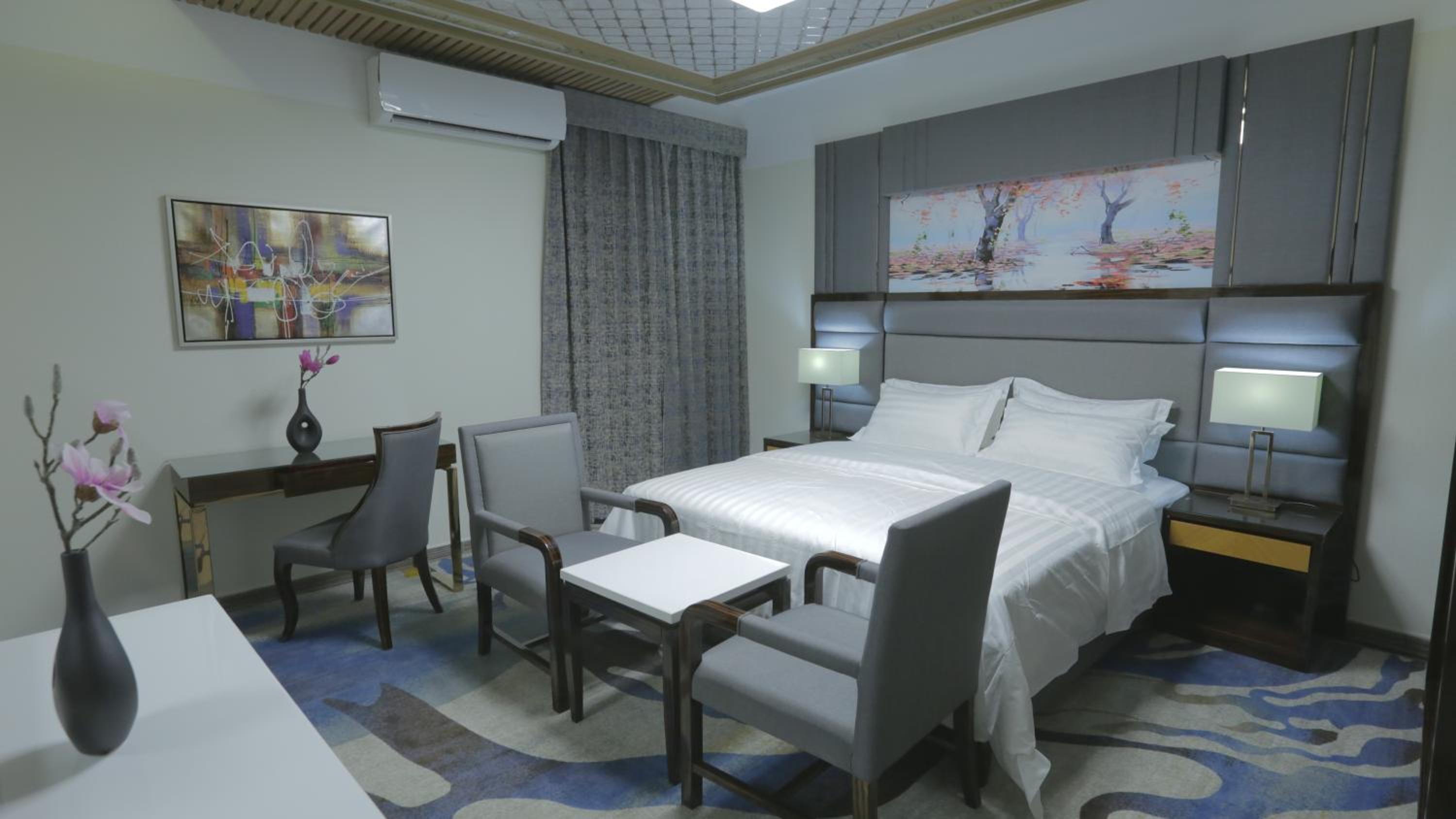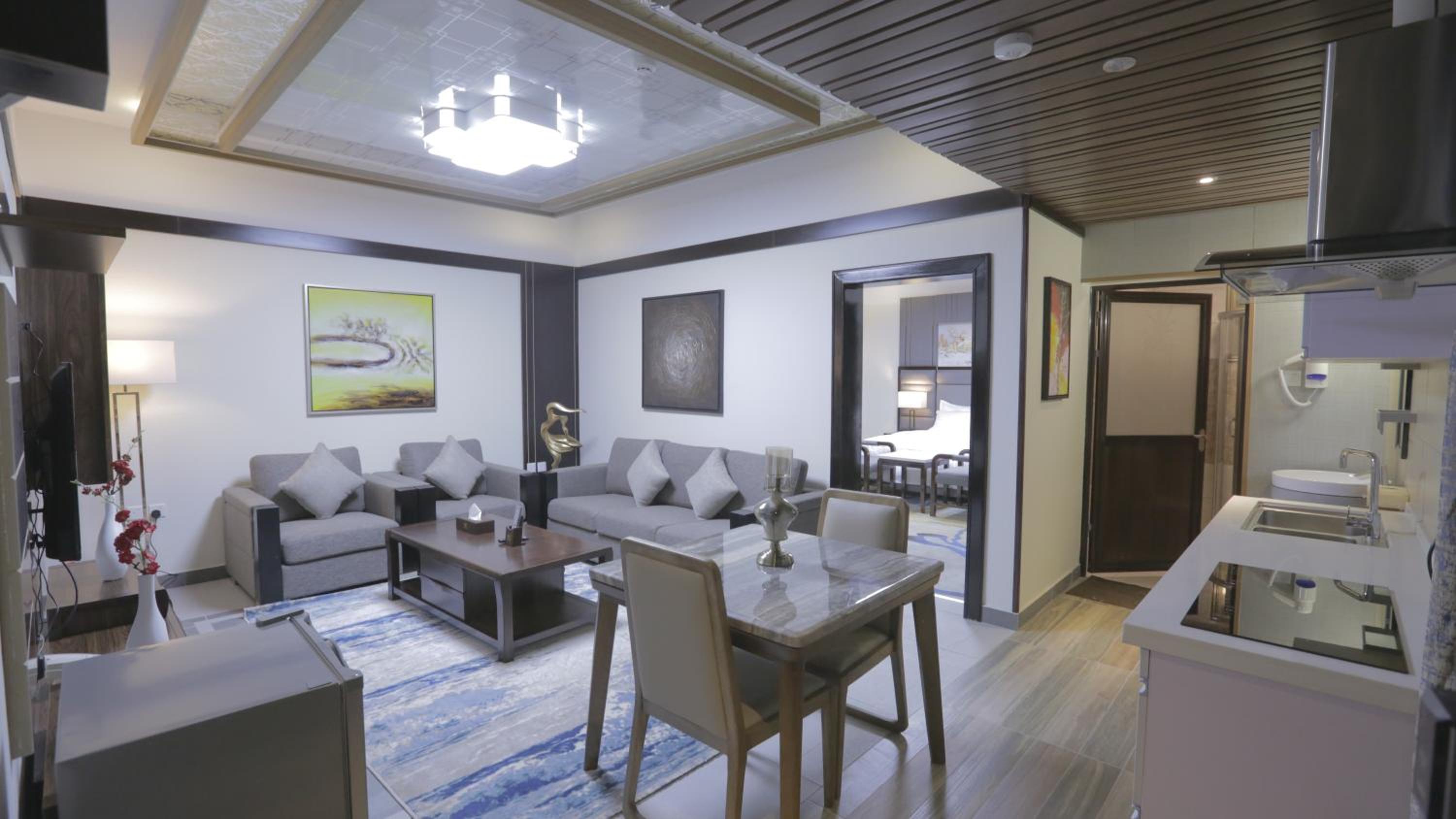 Niyaf Hotel Apartments in Khamis Mushayt offers air-conditioned units with modern amenities like a flat-screen TV, safety deposit box, and a private bathroom. The rooms are designed to be allergy-free and soundproof, ensuring a comfortable stay for all guests.