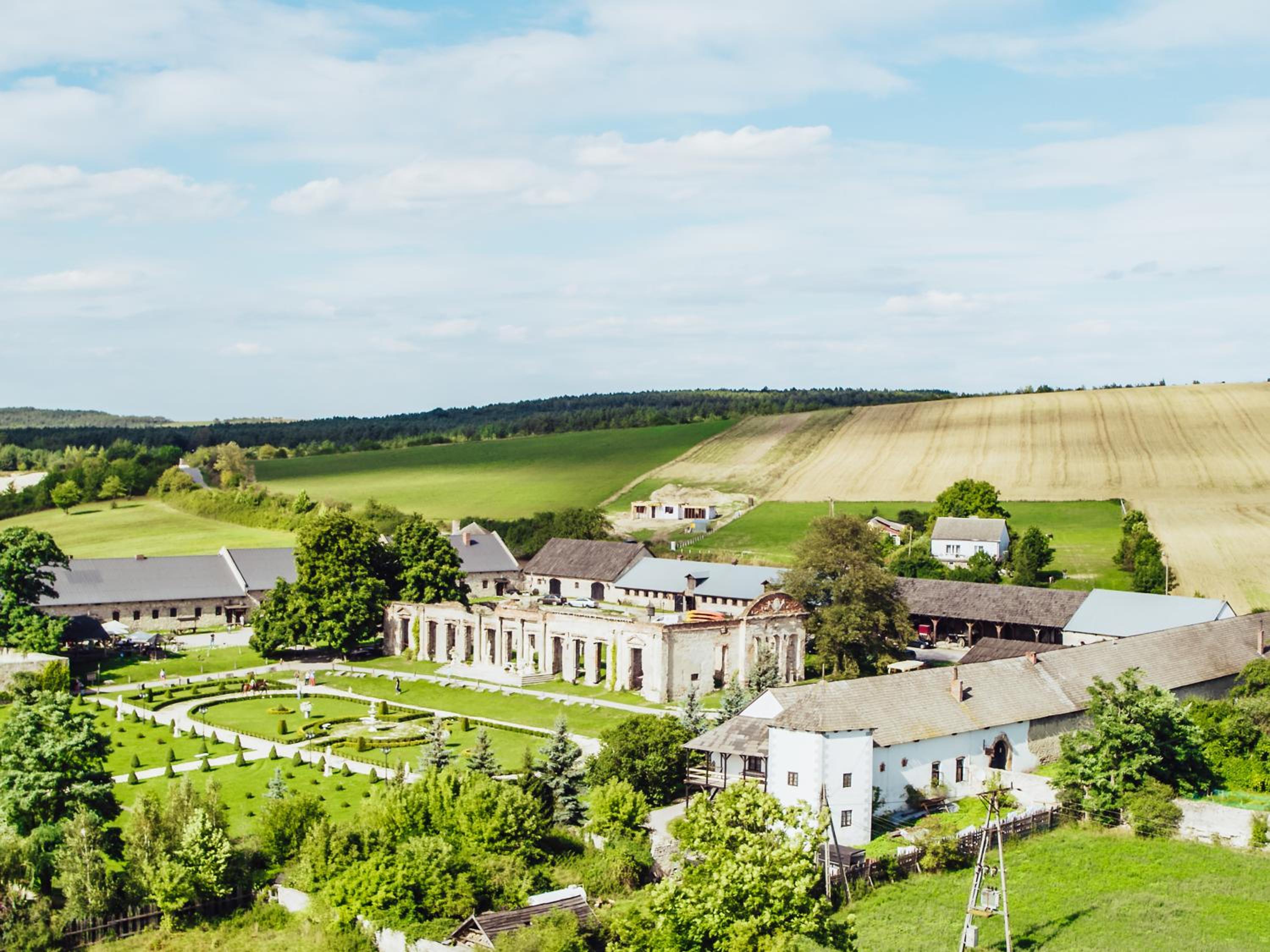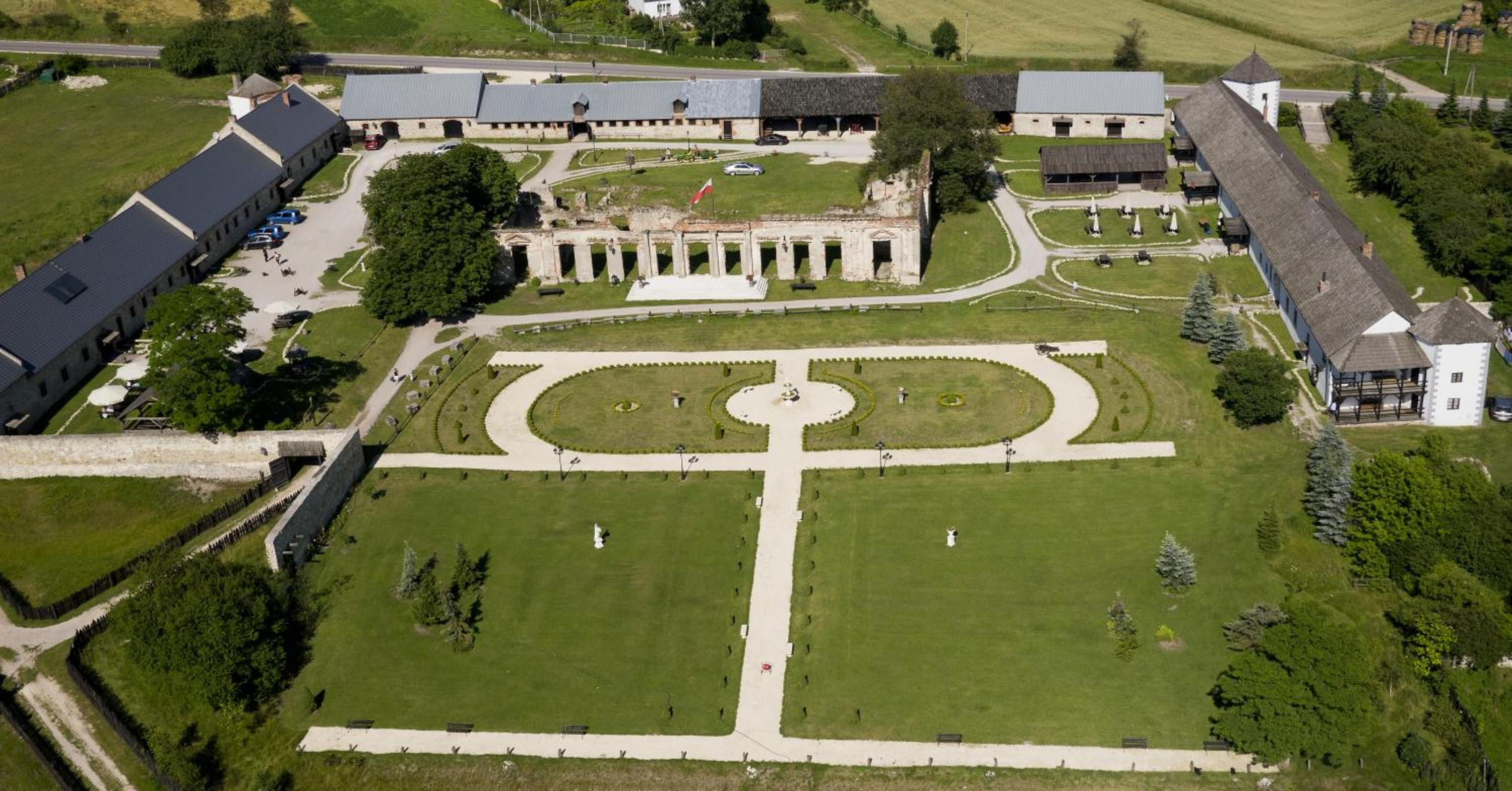 Poprawić? Widać, iż właścicielowi wyczerpały się pomysły .Dziwne niby antyczne figurki czy ogród w centrum placu to takie koszmarki nie pasujące do tego miejsca. Drogi wysypane otoczakami są drażniące dla pieszych i koni pewnie też. Miejsce jest piękne o ogromnym potencjale w które ,co widać ,ktoś włożył mnóstwo pracy i serca. Zabrakło pary ale nadal jest nadzieja. :)
