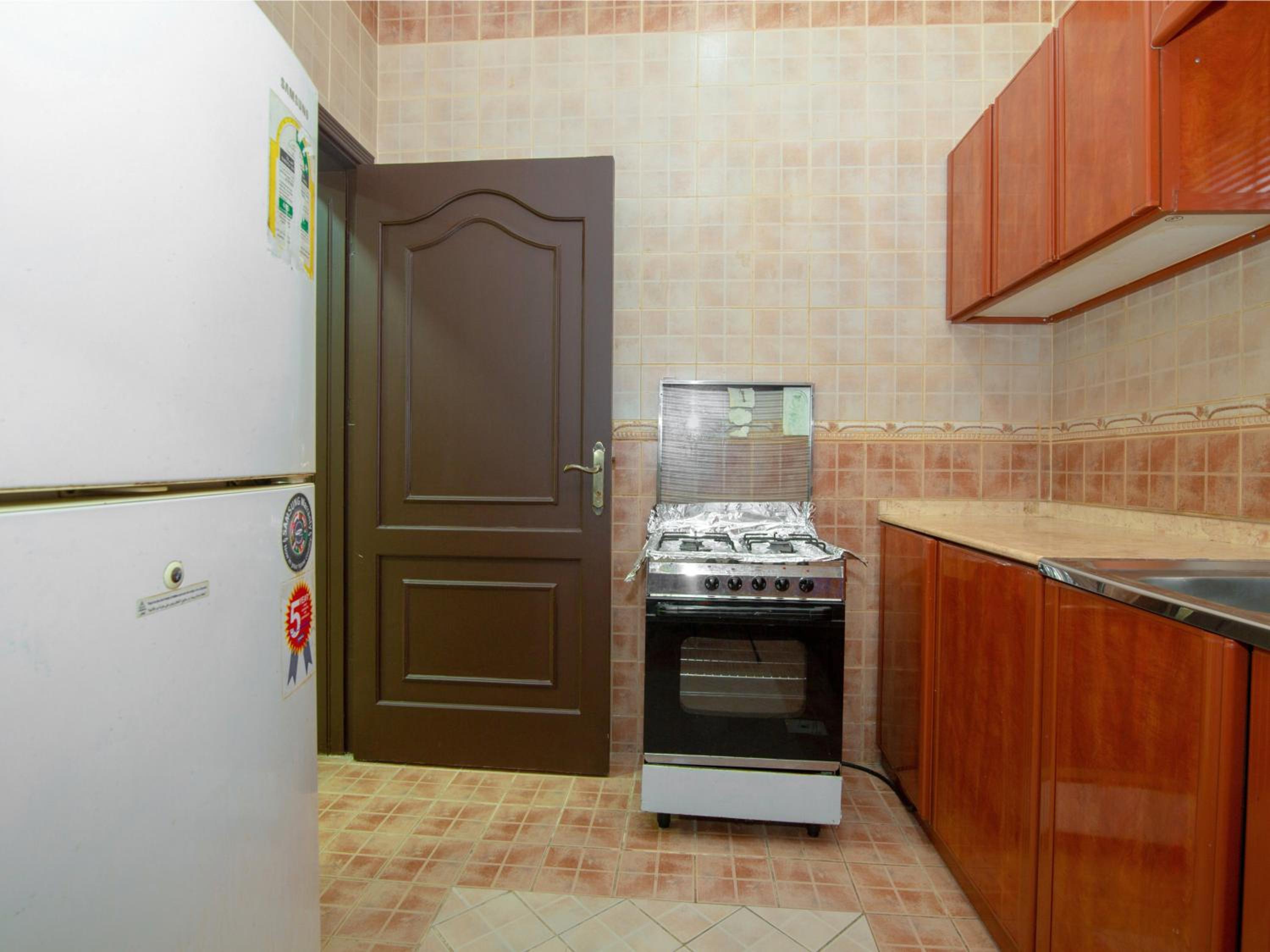 2. Outdoor Spaces: Relax in the garden or on the terrace at Happy Beach Group - Al Basatin. Take advantage of the shared lounge and enjoy the convenience of grocery deliveries during your stay.
