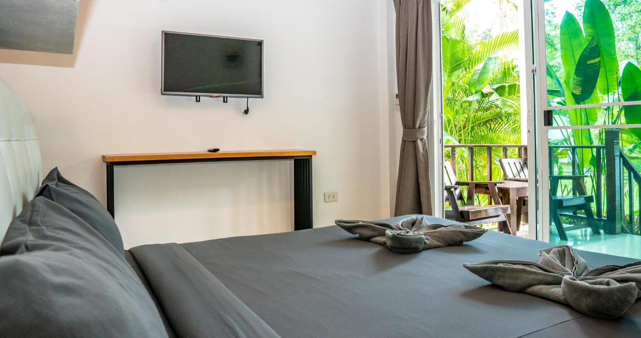 Unwind in our modern rooms equipped with air conditioning, flat-screen TVs, and kitchen amenities. Some units even feature private terraces or balconies with picturesque pool views.