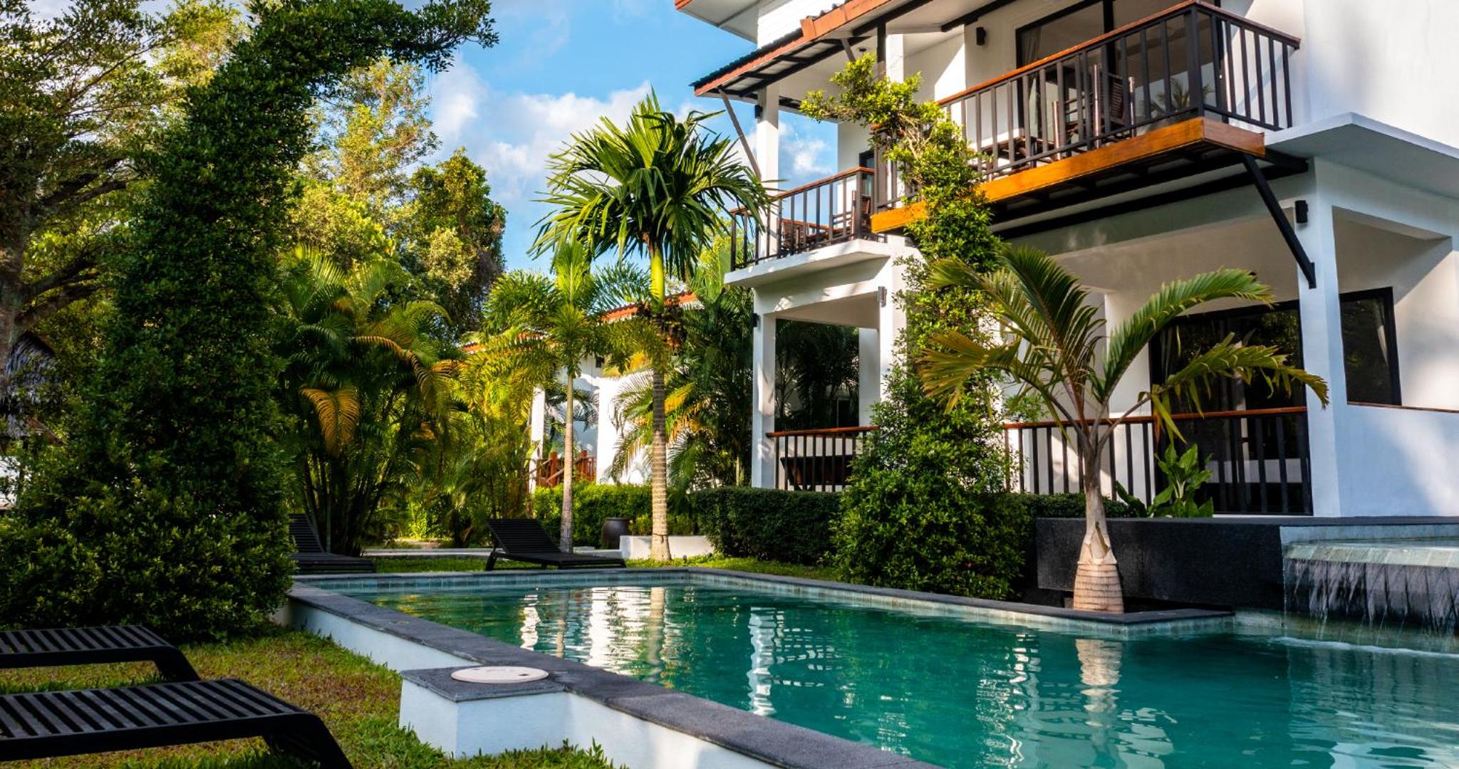 Experience ultimate relaxation at Aqua Suites with its outdoor swimming pool and lush garden, offering serene views that will rejuvenate your senses.