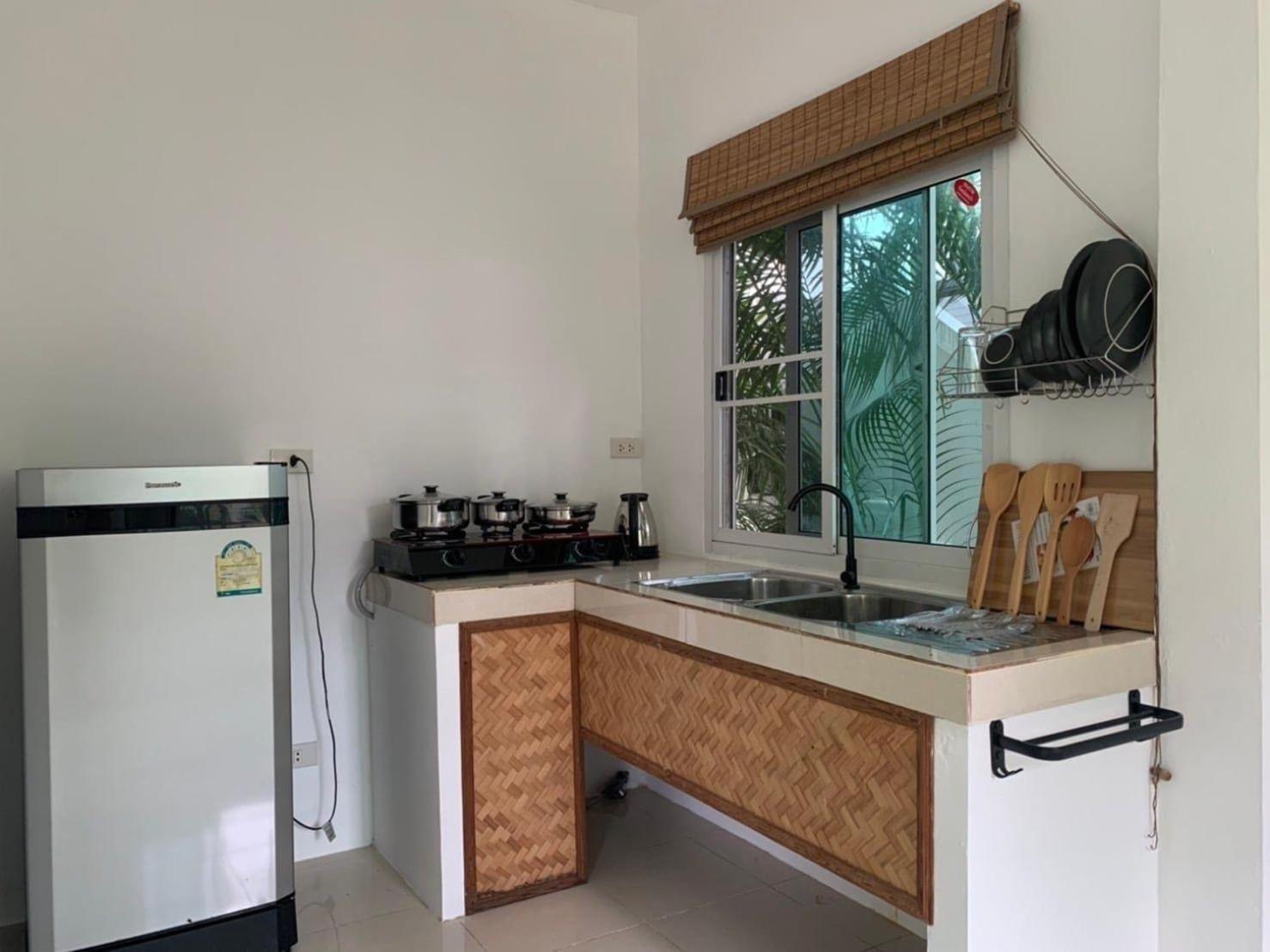 La chambre était très jolie, elle était neuve elle sentait encore la peinture ! La cuisine est aussi un +