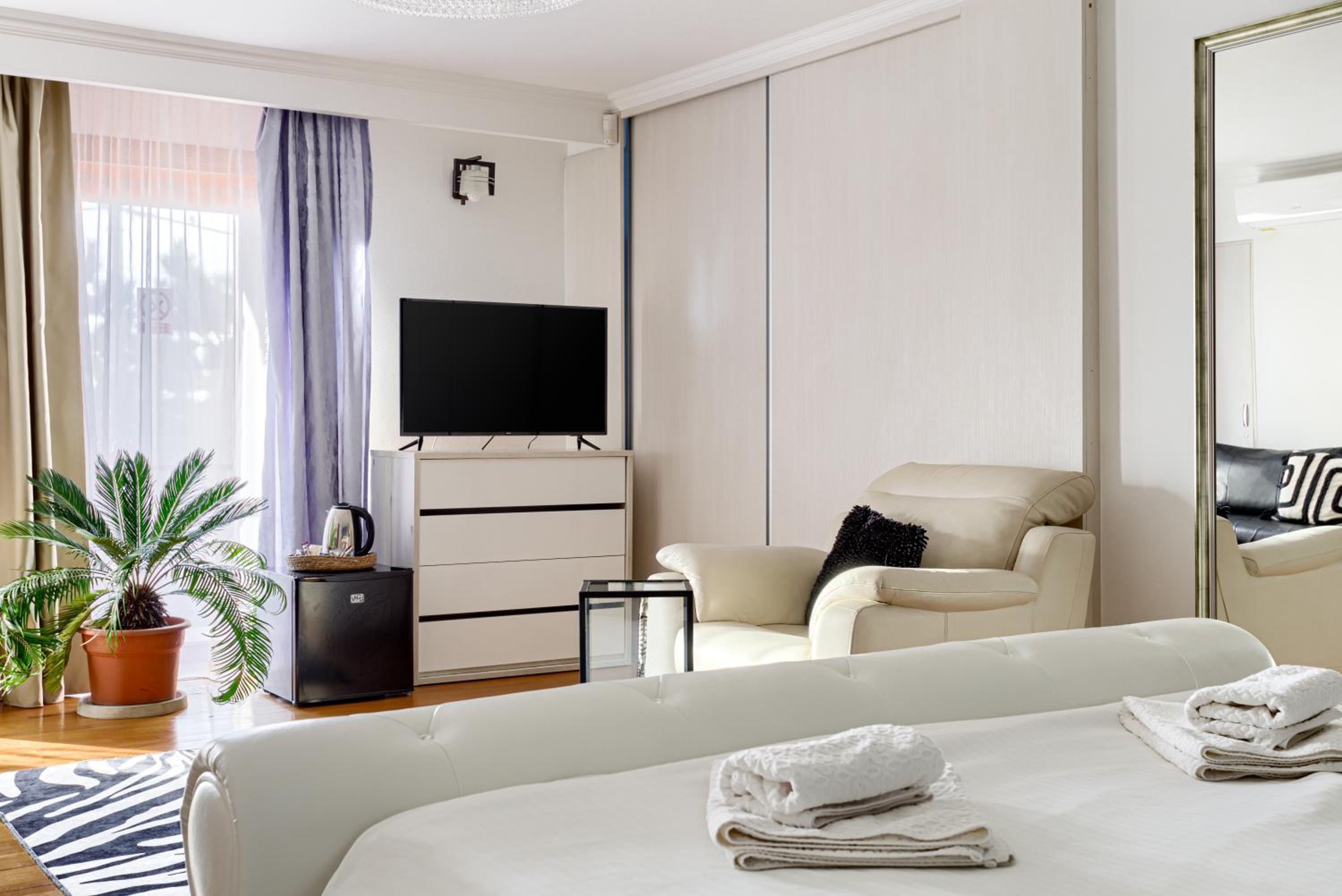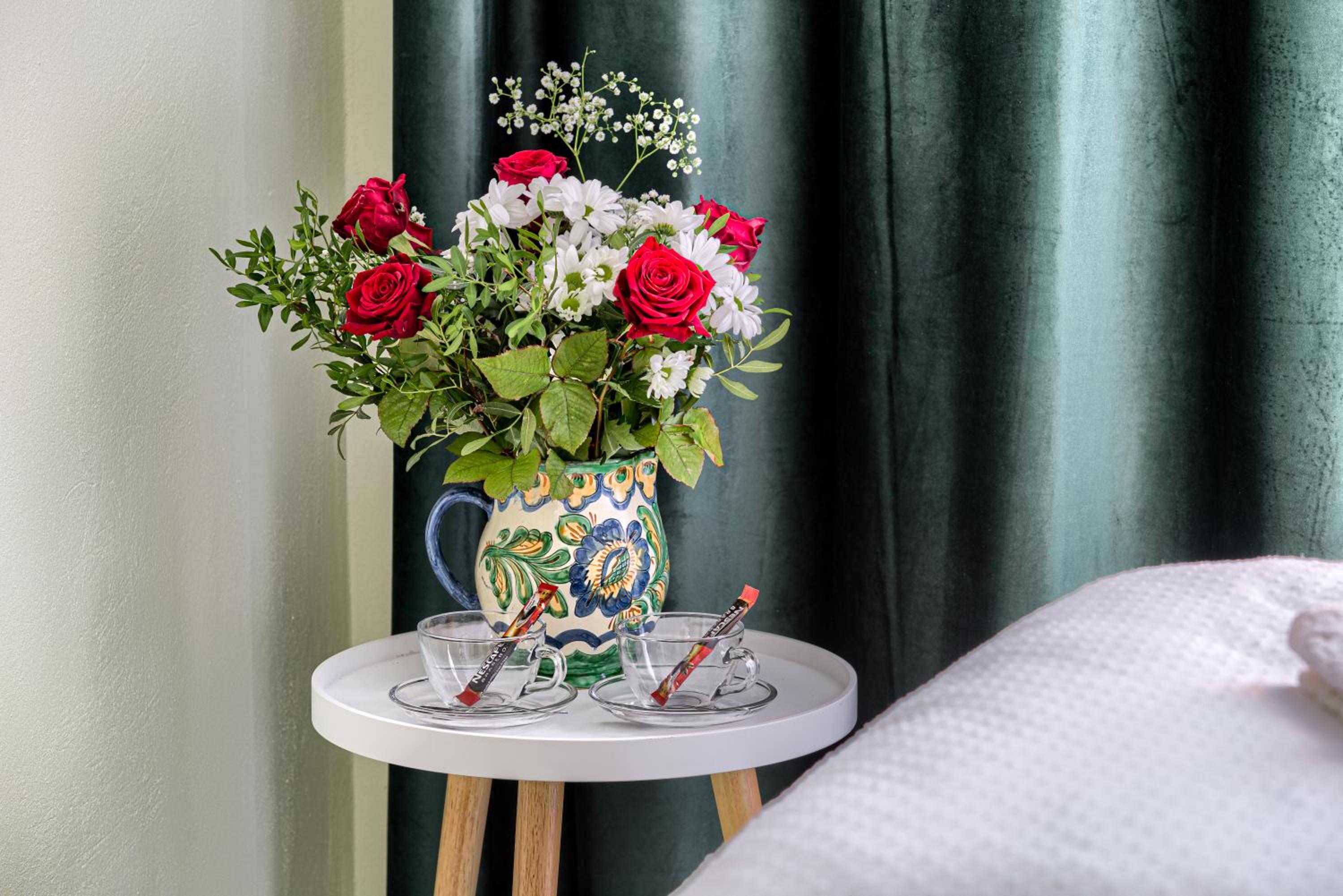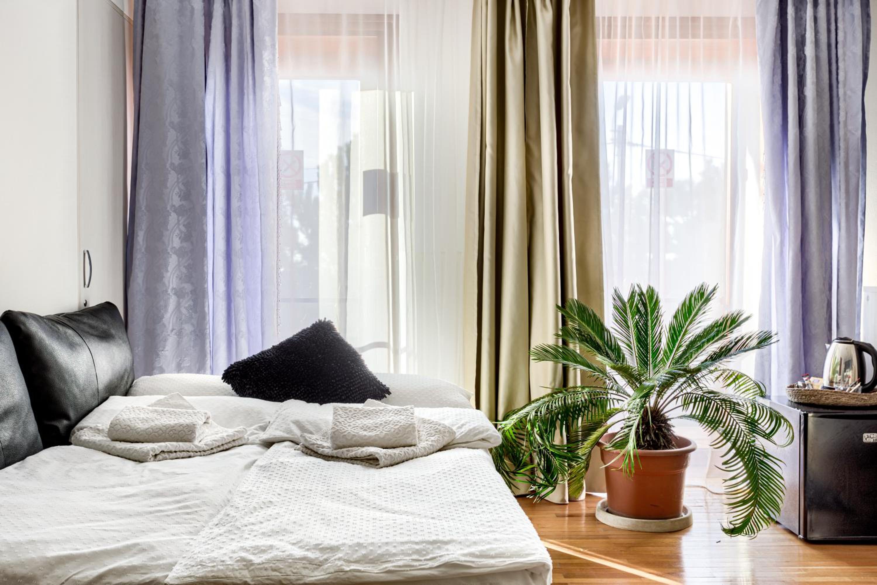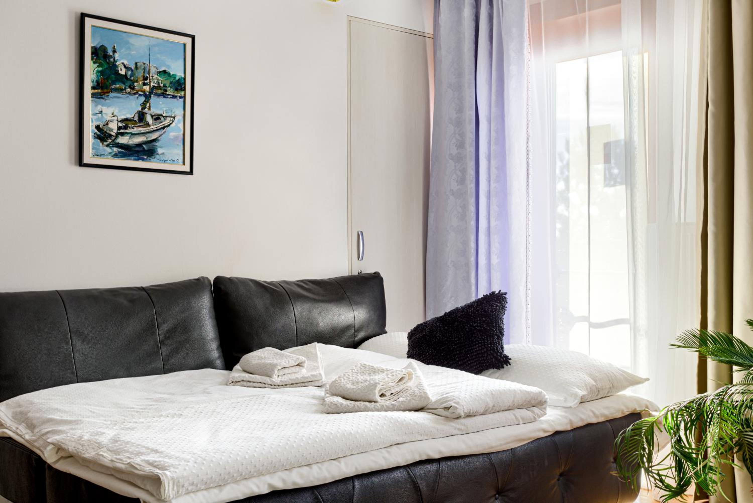 Although on the outskirts of the city, the place is beautiful and picturesque. The courtyard is large, well organized, you can park inside. With a taxi you can reach the center quite quickly. A taxi is recommended, because in the vicinity there is a not so friendly neighborhood (but not in close vicinity but around 1 km away).