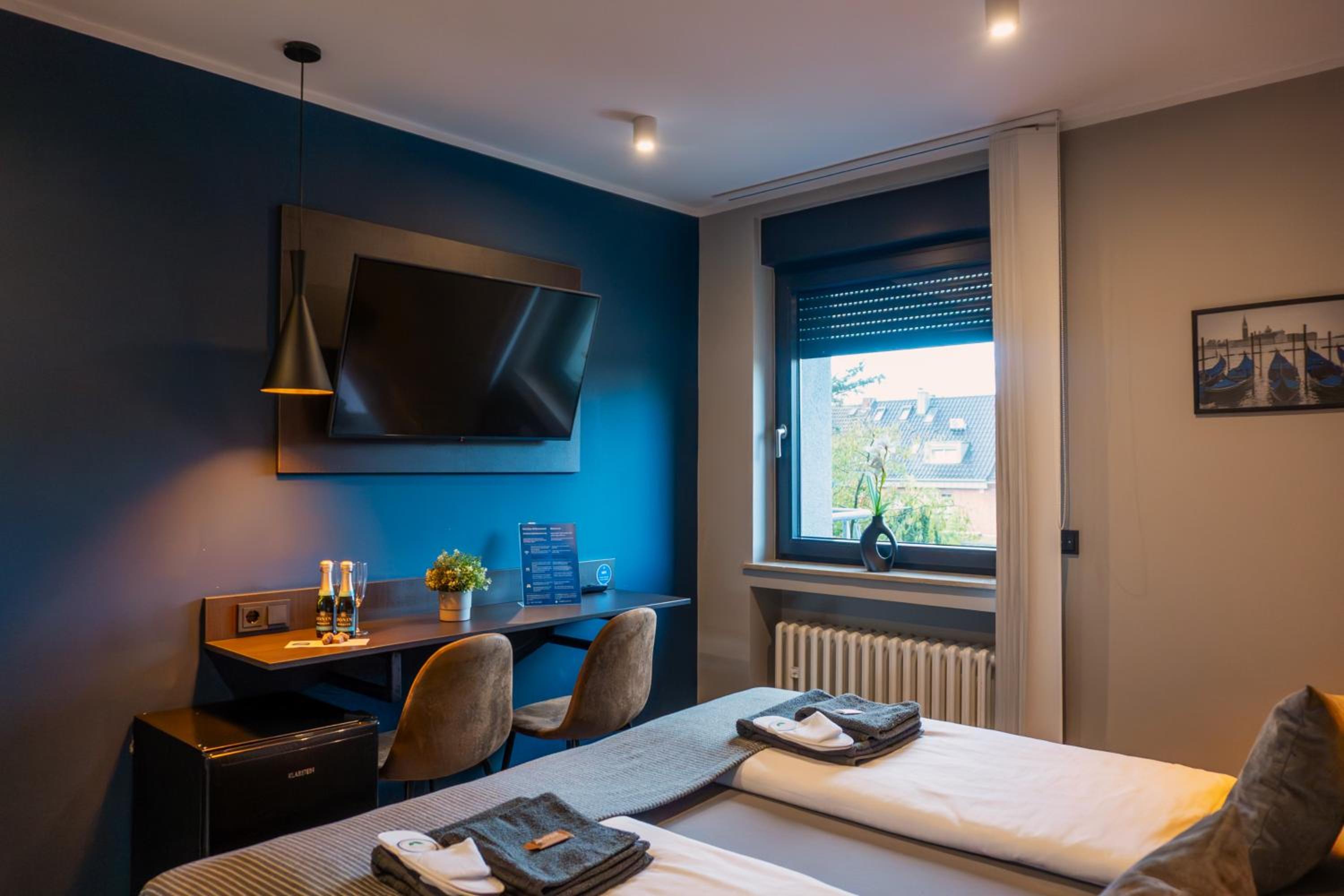 Das Hotel hat keinen eigenen Parkplätze. Das Hotel kann aber (kostenfreie) Stellplätze in einem Parkhaus organisieren, welches ca. 3 Gehminuten entfernt ist. Die Wände sind leider sehr hellhörig, weswegen andere Hotelgäste sehr gut wahrgenommen werden können. Sobald das Fenster geöffnet wird, wird es auch laut, da das Fenster direkt zu einer lauten Straße gerichtet ist. Die Geräuschquellen von außen braucht es aber gar nicht, weil auch im Zimmer selbst der wahrscheinlich lauteste Minikühlschrank steht, der mir bisher untergekommen ist. Dieser kann zum Glück aber ausgeschaltet werden. (honourable mention: extrem laute Toilettenspülung).