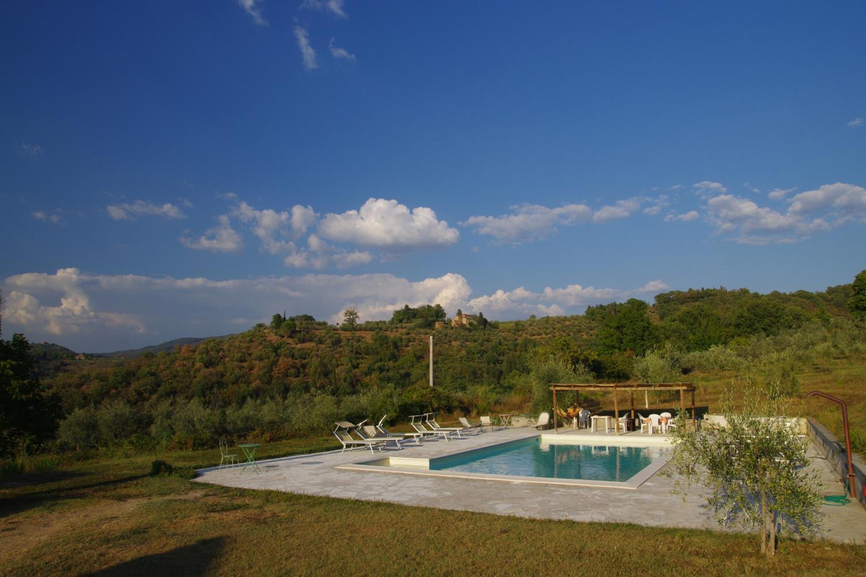 Guests can unwind by the summer swimming pool, open from mid-May to mid-October, surrounded by sun loungers and a charming gazebo with seating. The perfect spot to soak up the Tuscan sun and enjoy the peaceful surroundings.
