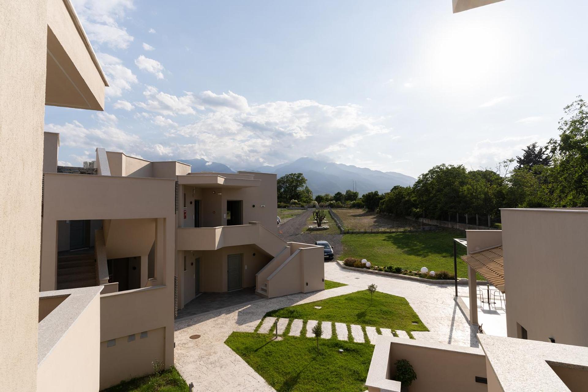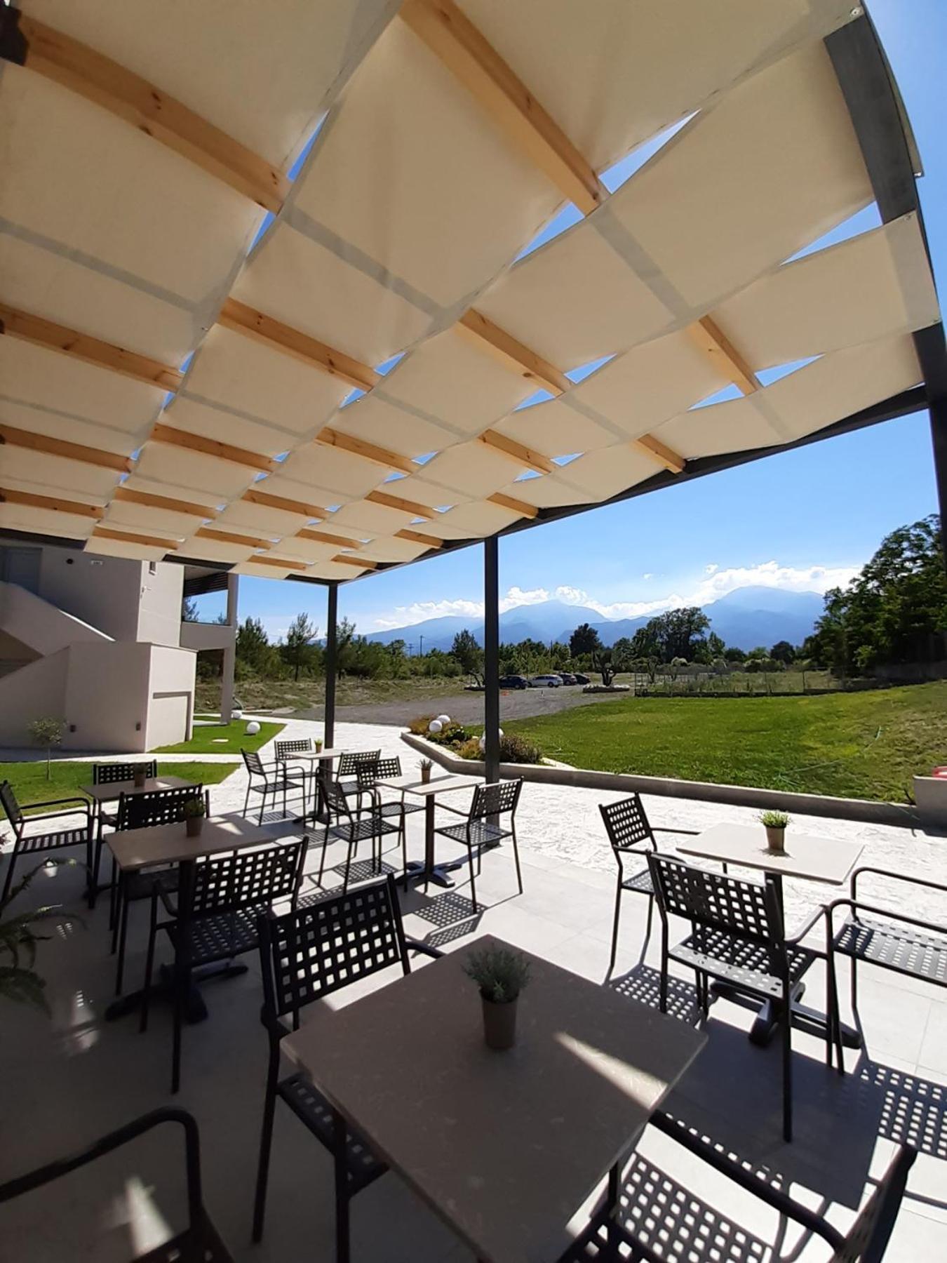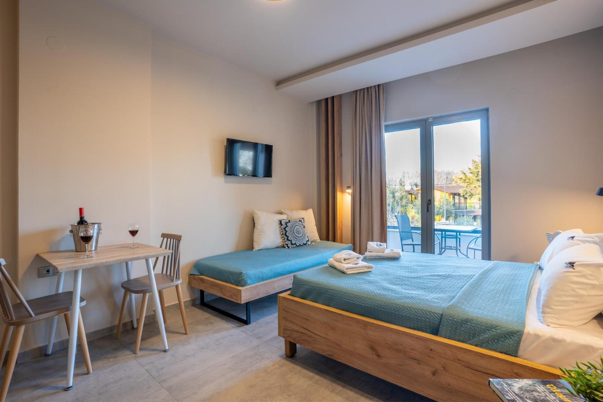Experience the beauty of inner courtyard views from your private balcony at Olympus Pantheon Luxury Rooms. Enjoy the comfort of air conditioning, a flat-screen TV, and a fully equipped kitchen in each unit. The terrace with garden views is perfect for relaxing outdoors.
