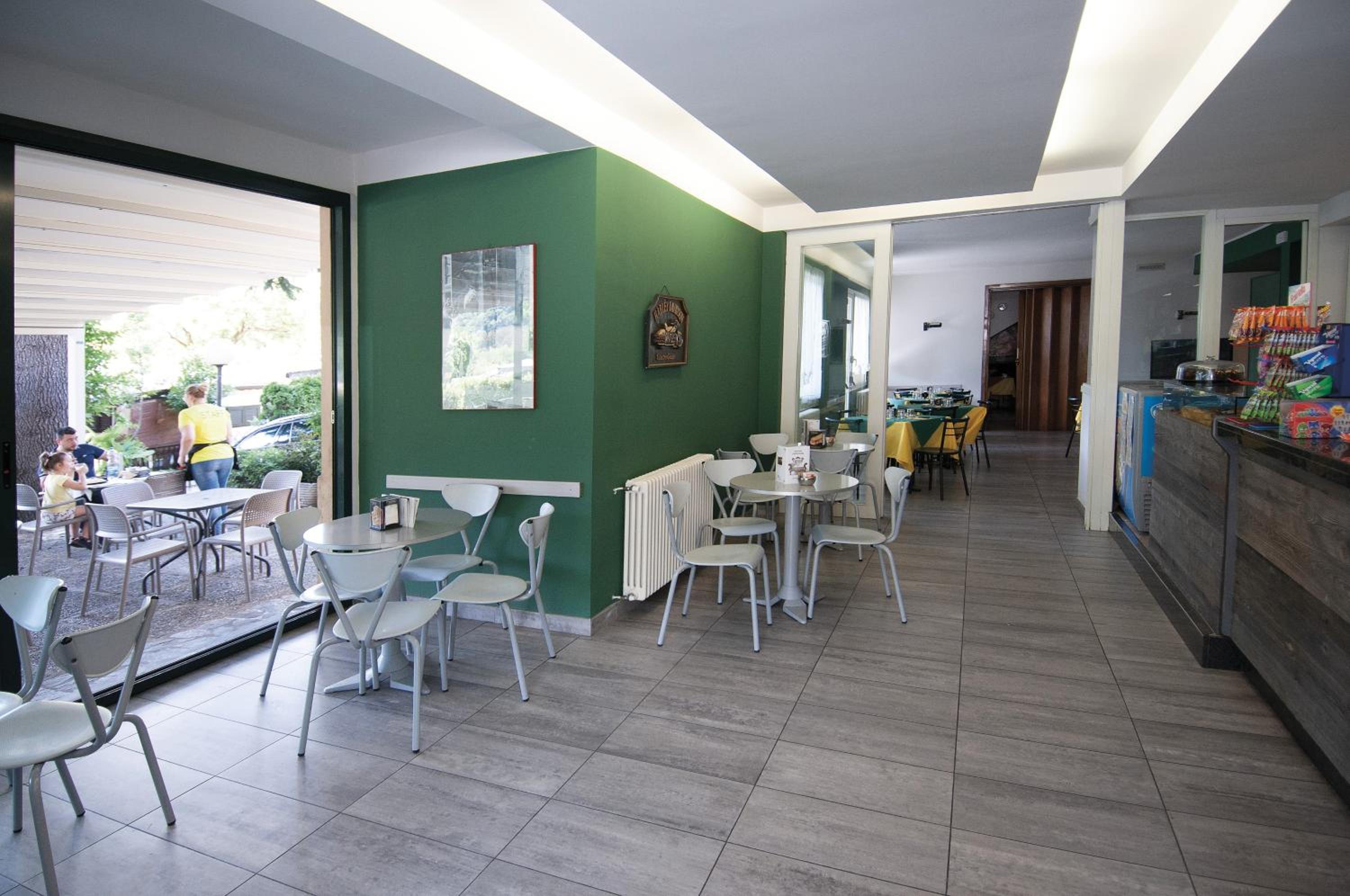 La possibilità di cenare in loco, è la mattina la colazione. Brioche buonissime e molto grandi.