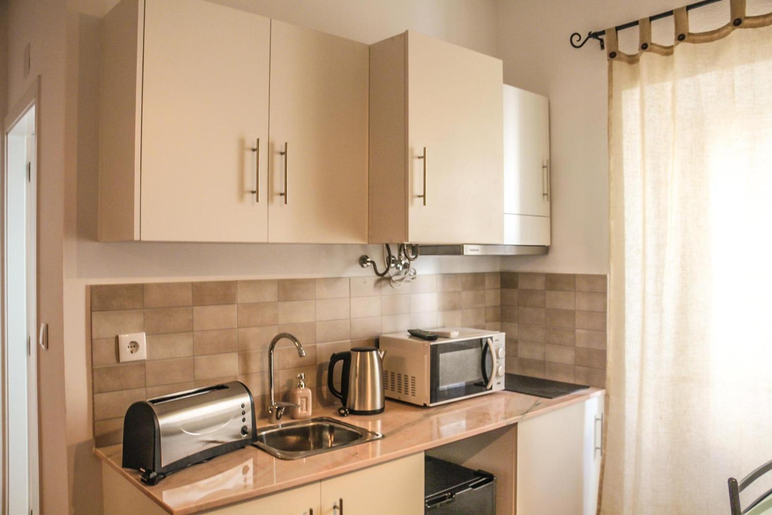 Our aparthotel offers spacious family rooms, perfect for a relaxing stay with your loved ones. Unwind in front of a cable flat-screen TV, prepare meals in the fully equipped kitchen, and freshen up in the stylish private bathroom with a walk-in shower and a hairdryer.