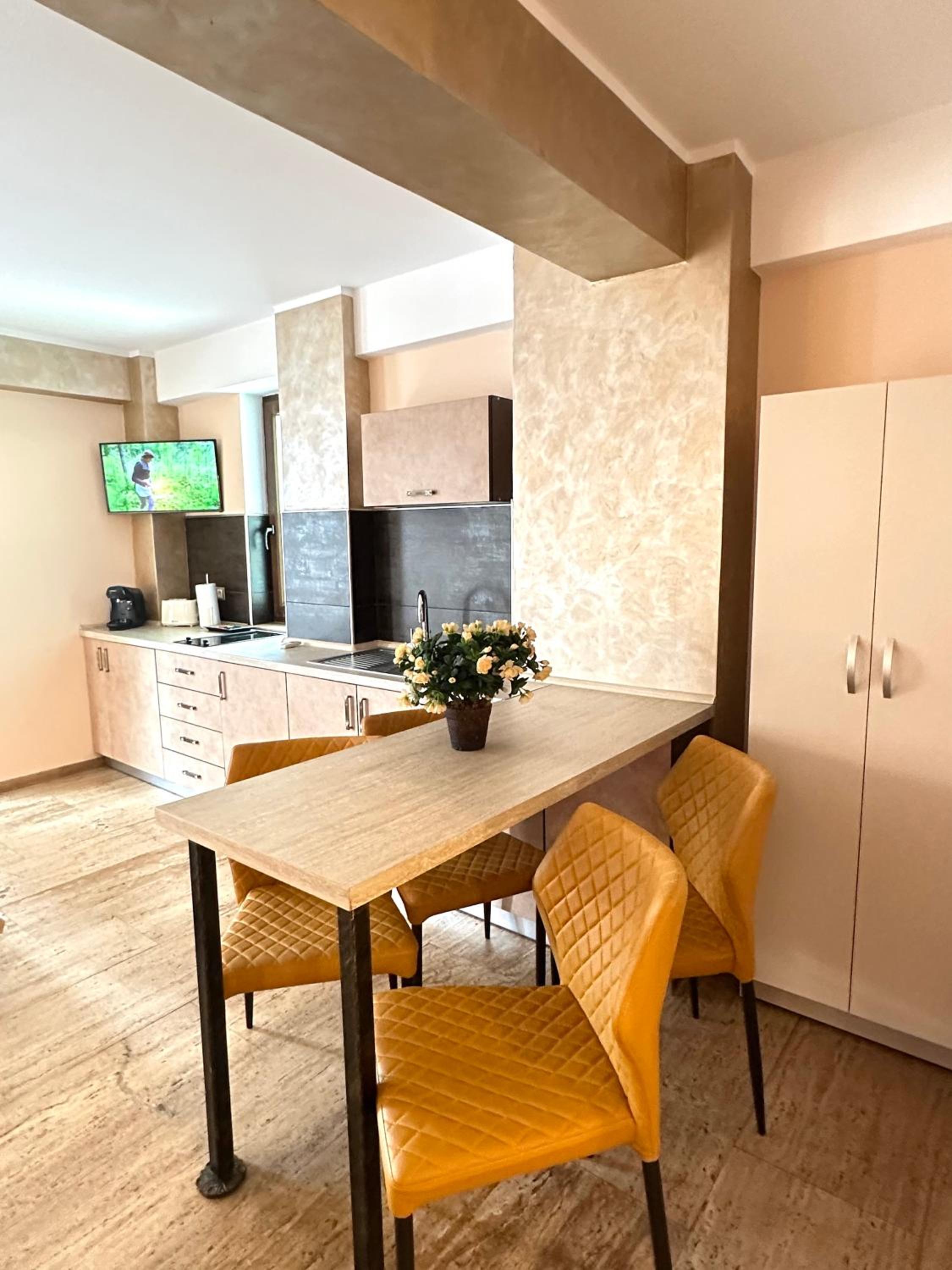 Indulge in our modern self-catering units at Style Residence, each equipped with a flat-screen TV, dining area, and kitchenette for your convenience.